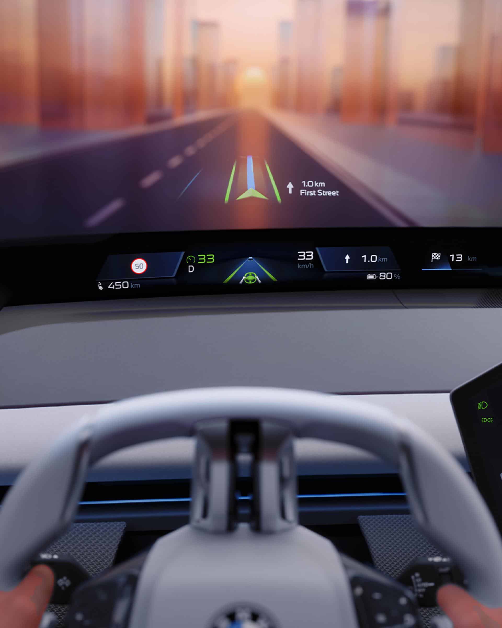 As the adjacent images show, cars with iDrive X will not be limited to the central screen. An upper-mounted projection stretching from pillar to pillar will be standard, and a 3D head-up display will also be offered in the driver’s line of sight. Despite the obvious focus on screens, not all controls will be integrated. Accessing some functions will be done through the usual stalks and haptic buttons/switches.