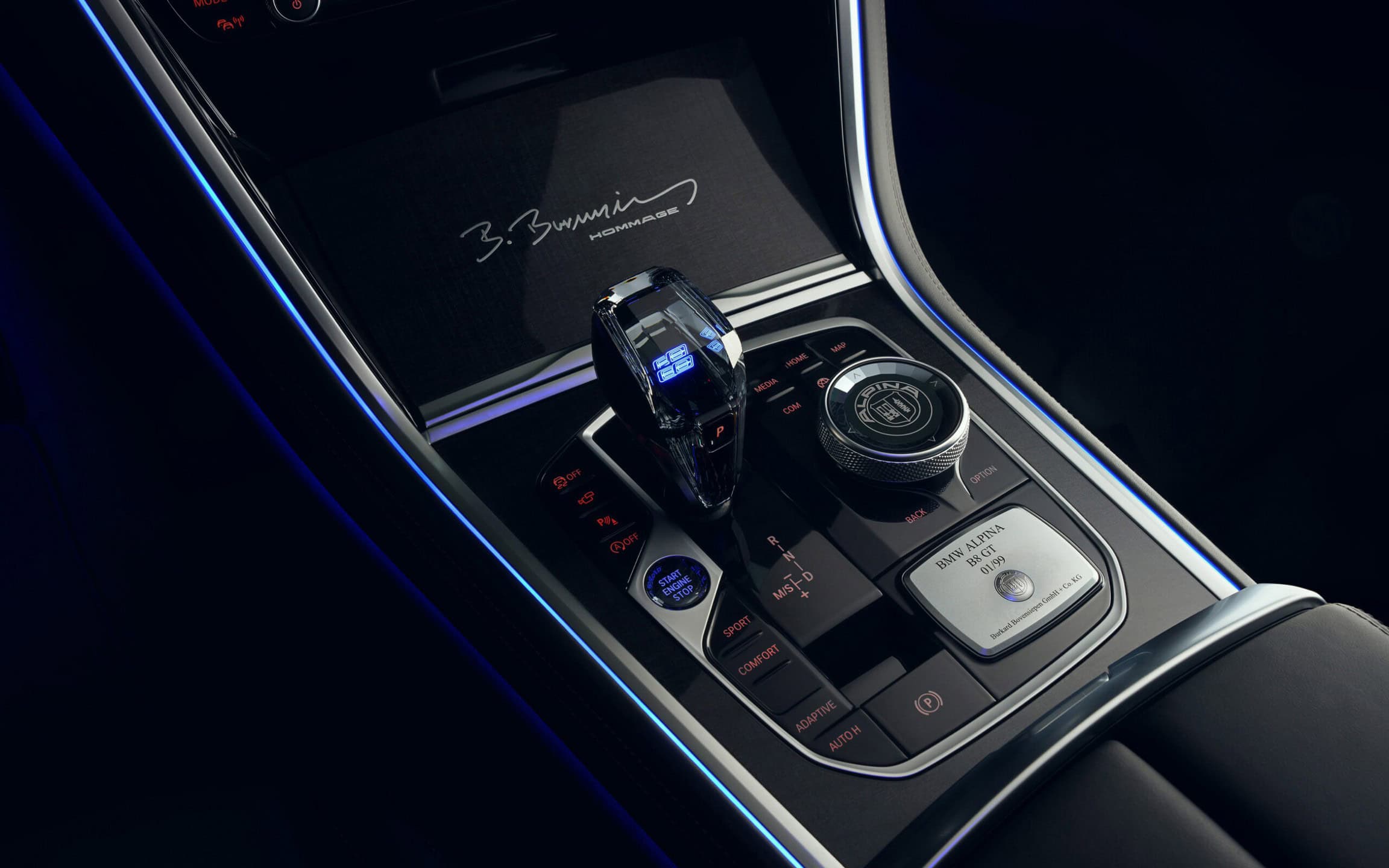 Inside, leather covers nearly all surfaces. There’s even leather piping for the floor mats and the cargo mat. To sweeten the pot, ALPINA wraps the headliner in Alcantara and mounts aluminum shift paddles. Speaking of which, the eight-speed automatic transmission gets a software update to handle the additional torque.