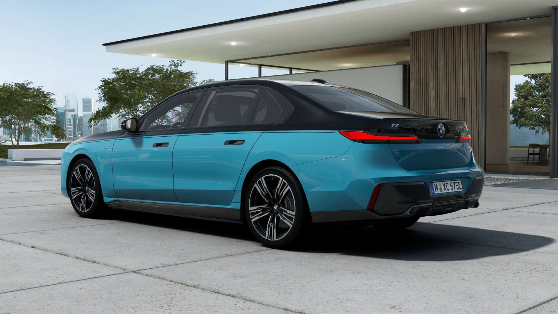 If you’re a firm believer that only Rolls-Royce models are worthy of a two-tone paint job, you’re not going to like this 7 Series. The owner of a fully electric luxury sedan picked up his shiny new i7 straight from Munich. How? By opting for the BMW Welt delivery. The zero-emission luxobarge has a striking finish by featuring an Individual Borusan Turkish Blue paint (P9E) with Sapphire Black (475).