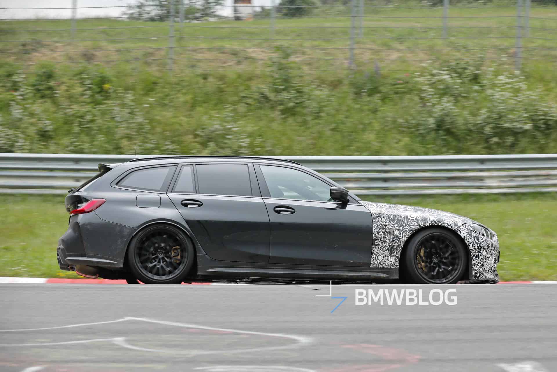 Images taken at the NĂĽrburgring in Germany show the hotter, long-roof M3 wearing considerable camouflage. The disguise starts at the front and ends at the C-pillars, suggesting major changes are planned. However, BMW is unlikely to make substantial tweaks. The biggest changes will occur at the front, where the wagon should inherit the meaner look of the M3 CS Sedan and M4 CS Coupe.