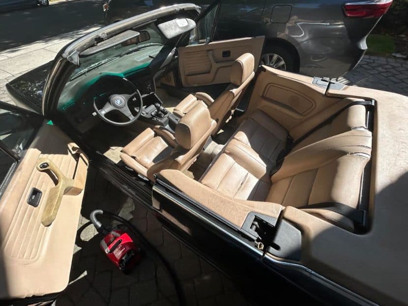 “I’ve got to say, it’s quite something that I passed by a few times and looked at this car, and now we’re sitting here,” I shared with C. He nodded, “I firmly believe you just happened to be in the right place, at the right time.” I privately smiled wider. We both climbed out of the E30, and I revisited the deliciously-uncomplicated engine compartment, checking once again to ensure nothing had burned, leaked, or detached itself during our attack on time, public roads, and their protectant speed laws. I turned the car off while C went in his mom’s house to check on her and give me all the time I needed, so I proceeded to reexamine every single panel, button, and stitch of the luxurious interior cabin’s leather-, plastic-, and carpet-covered surfaces; pressed gently on the very-impressively-for-the-’80s kevlar-esque fabric convertible top and tugged forcefully at the fortified-feeling structural frame; and mixed a beat on the authentically-mechanical doors that were oh-so-satisfying to open with metallic clunks and close with titanic clanks.