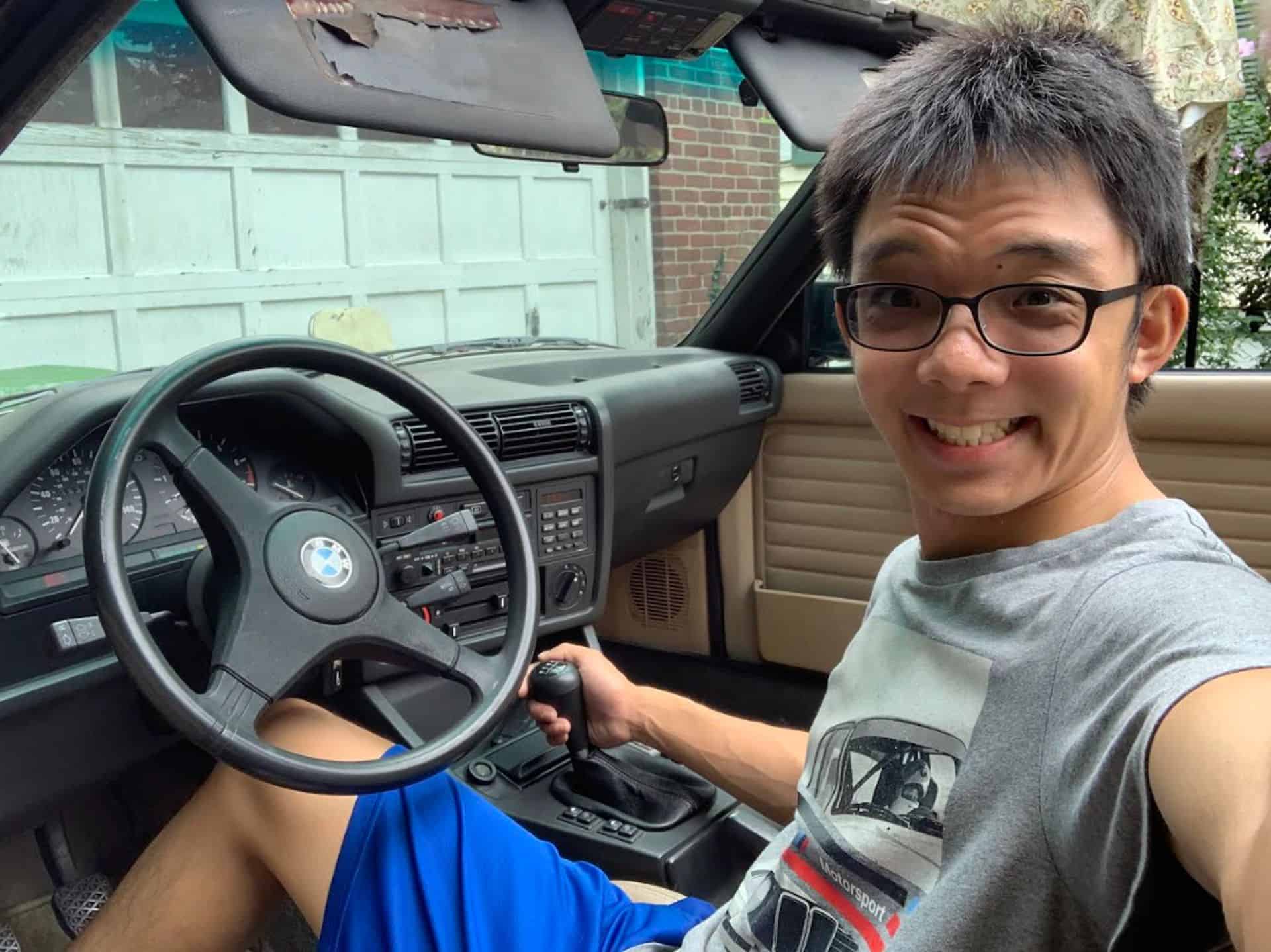 The tranquil takeoff of the six-cylinder 325i was, I hereby daresay, lightyears silkier than either inline-four 318is cared for by my uncles, and I say that proudly, having grown up spoiled golden, chauffeured in the pricelessly aureate E30 standard of BMWs created a millennium before I was. Back on Earth, I’d elected to keep the roof up so I could focus on the ride, instead of keeping face and a civil tongue, and so as to not reveal my cards as a wisely prospective buyer. In the passenger seat, I thus wasn’t sitting idly by, and closed both eyes to open my ears. I straddled the transmission tunnel with my my stethoscope palms, and applied my every sense to detect each vibration of air and solid, cross-referencing the data with my (German-)muscle(-car) memory (oh yeah I sure said it) of each row-row-row-your-own E30s and 2002tii of my uncles’, and the youngest’s E92 335is and E28. No strange vibrations, unusual knocks, or screeching… shifts aren’t rubbery but rightfully smooth as should be; nothing is polluting my nostrils, so I can freely snort the addictive ‘80s bison leather. And boy oh boy that aroma! Identical to my uncle’s M5 in sight and smell! “How about that new-car scent, huh?” I smirked at C, who returned my impressed countenance. “Nothin’ new’s made like this today, that’s for sure,” he remarked.