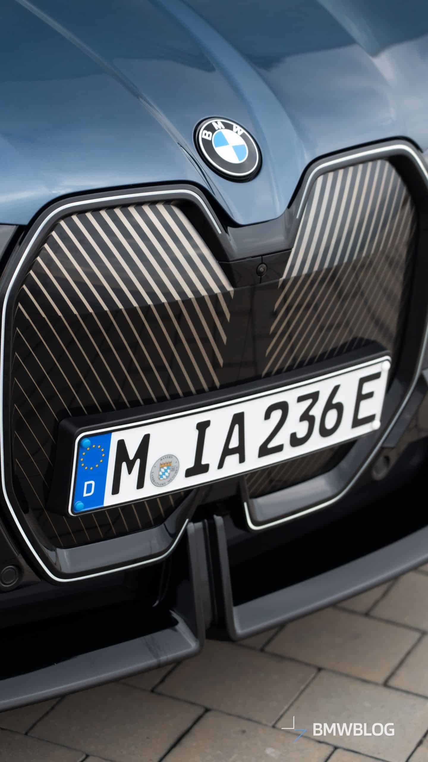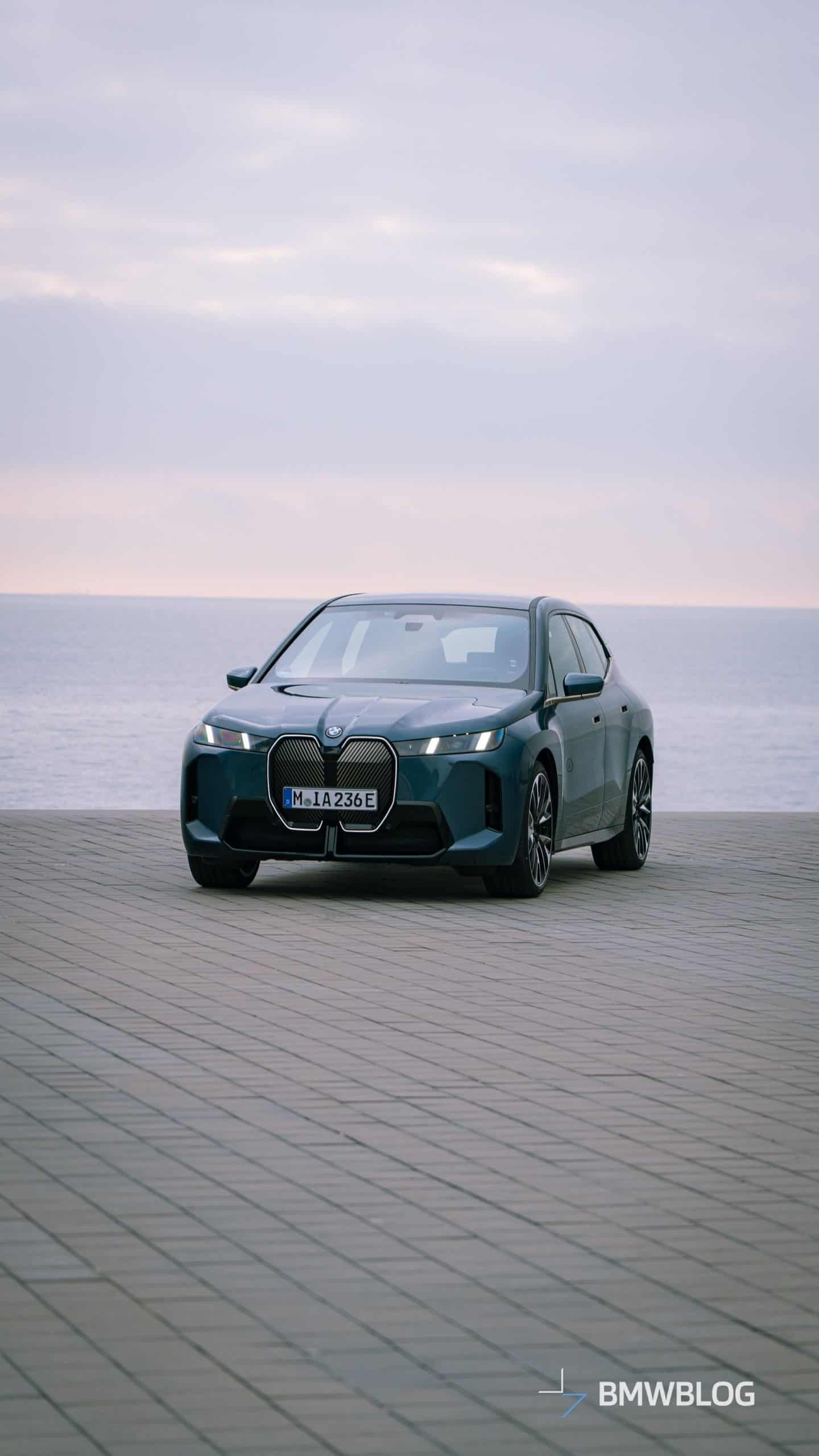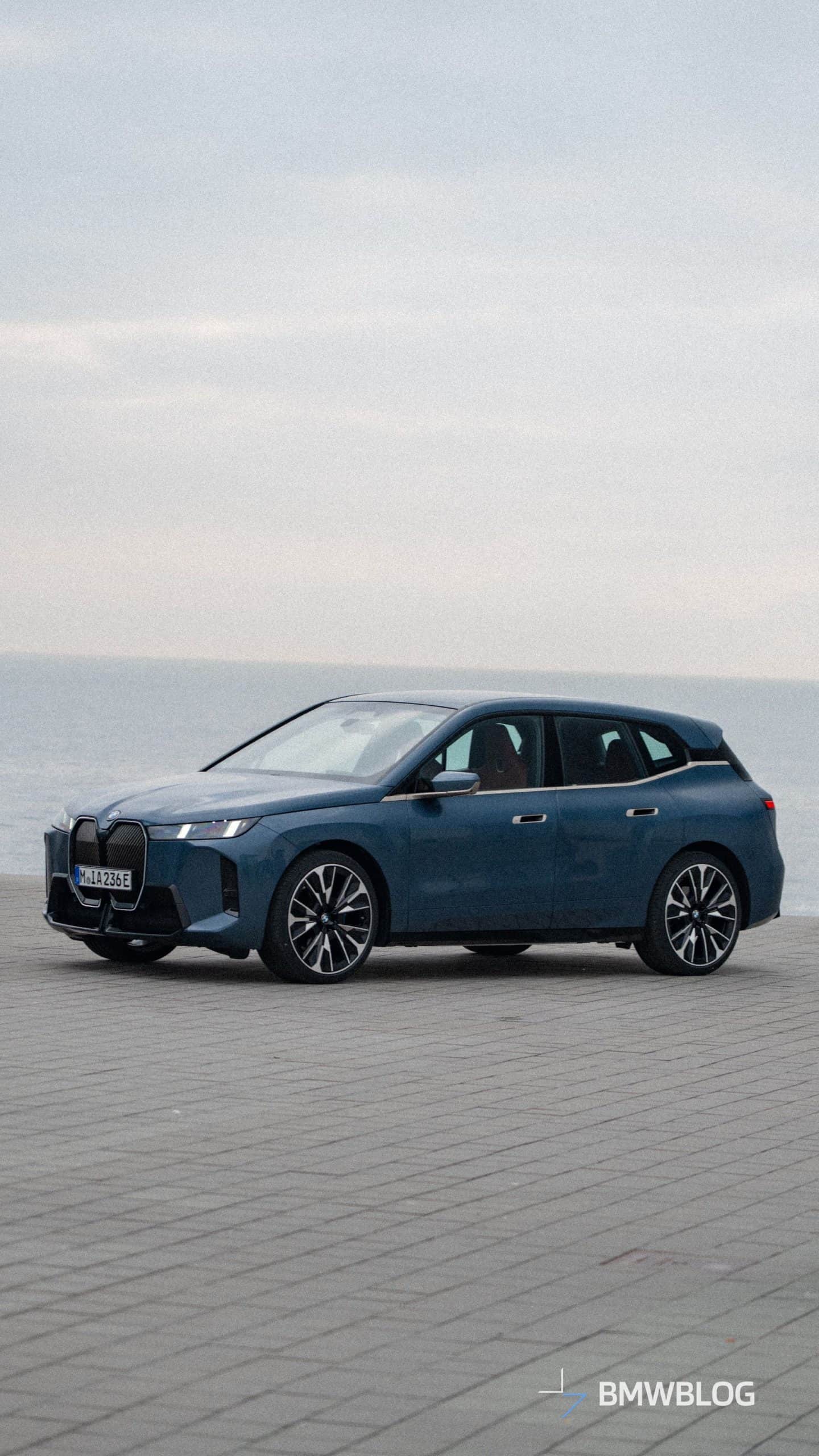 Come to think of it, this is not really a base model since BMW configured the car with a few options. By far the most noticeable is the M Sport Package – a first for the iX. Even this lesser flavor of the big electric SUV gets the more aggressive bumpers of the hot M70. However, it lacks the M Performance model’s distinctive kidney grille pattern with horizontal slats and the M logo.
