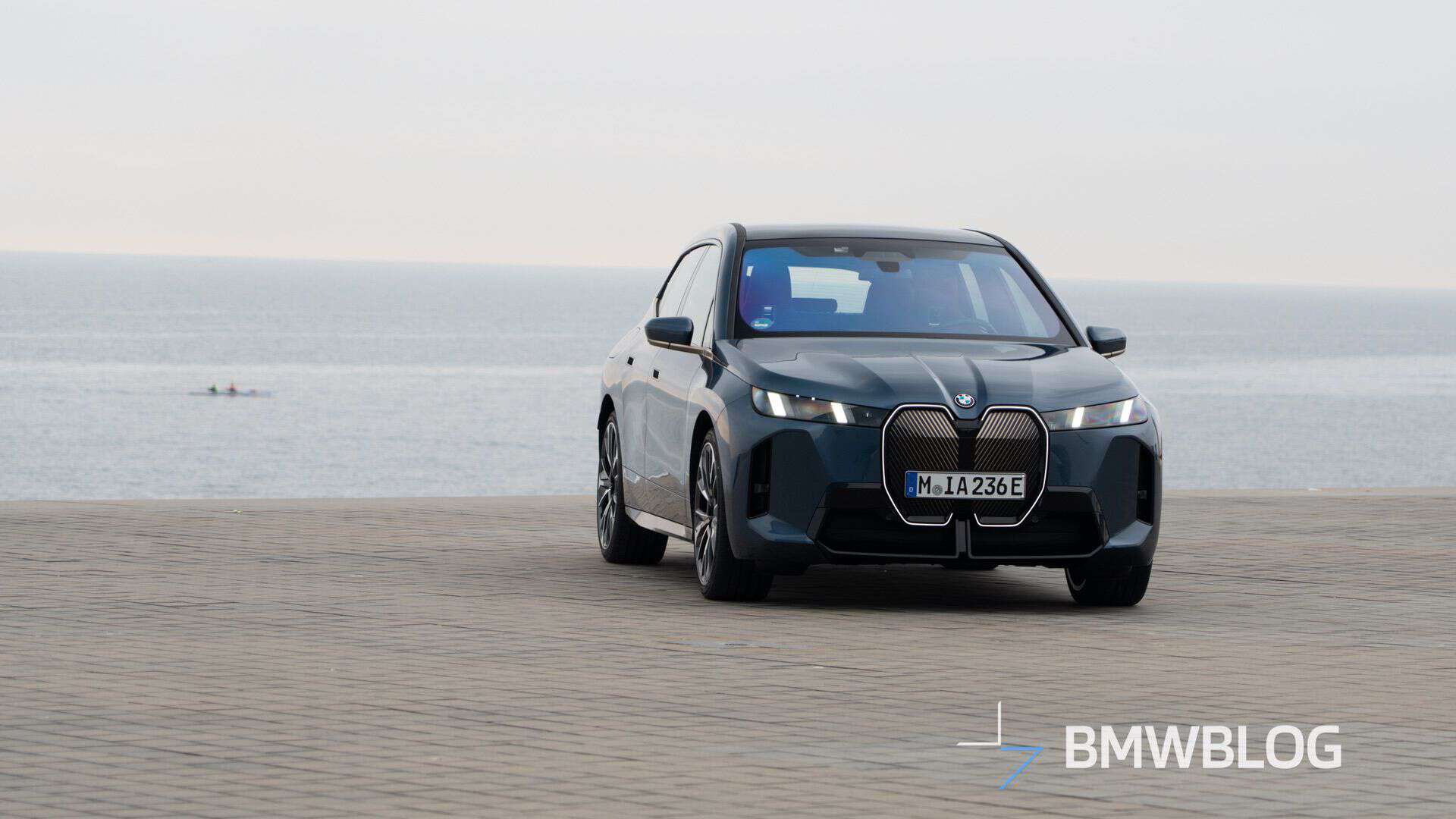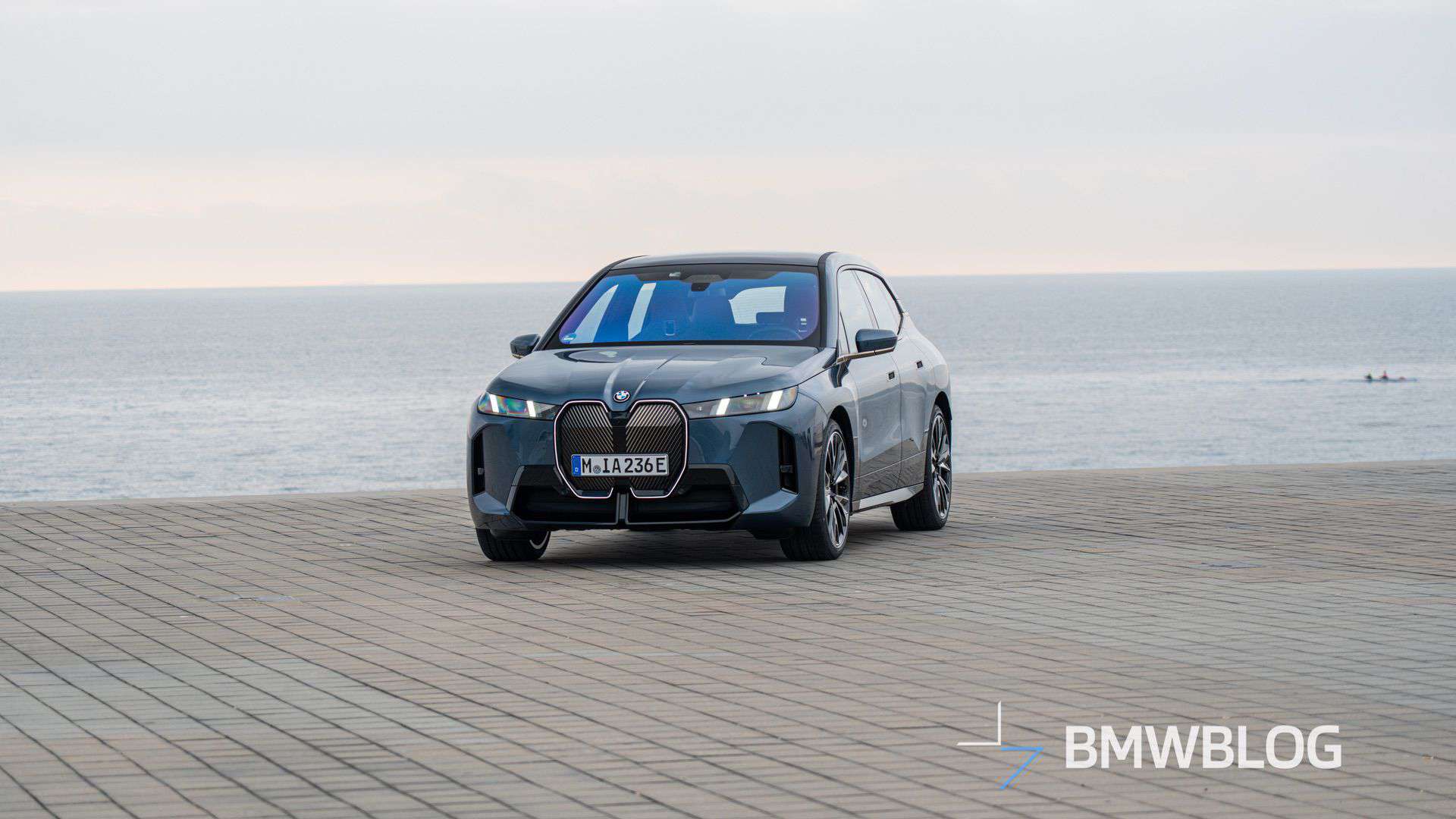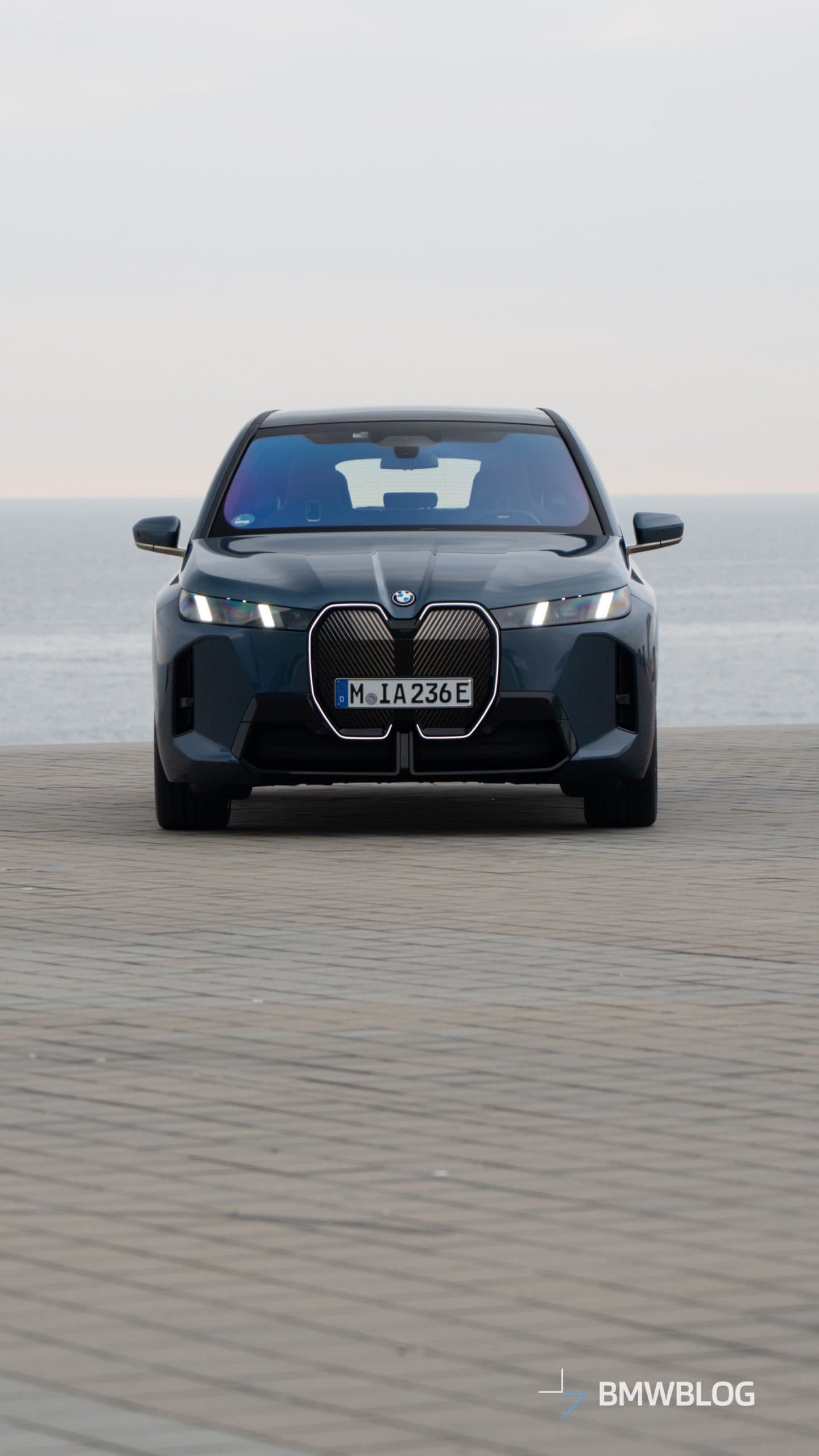Come to think of it, this is not really a base model since BMW configured the car with a few options. By far the most noticeable is the M Sport Package – a first for the iX. Even this lesser flavor of the big electric SUV gets the more aggressive bumpers of the hot M70. However, it lacks the M Performance model’s distinctive kidney grille pattern with horizontal slats and the M logo.