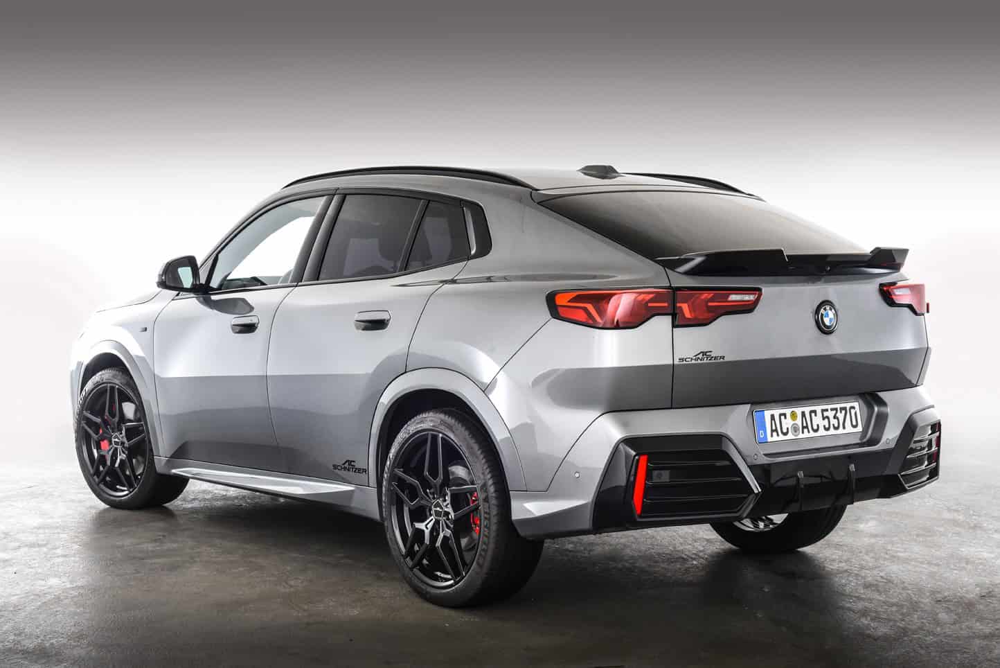 While this X2 has the M Sport Package, it’s not the hotter M35i. AC Schnitzer gave the crossover-coupe mashup a meaner attitude by installing a custom front spoiler lip. You can have it in the same color as the rest of the body or with this black finish to accompany BMW’s own Shadowline exterior treatment. The swoopy SUV also has new wheels, adopting the tuner’s 20-inch set with a black finish. Alternatively, you can opt for a bi-color look or anthracite.
