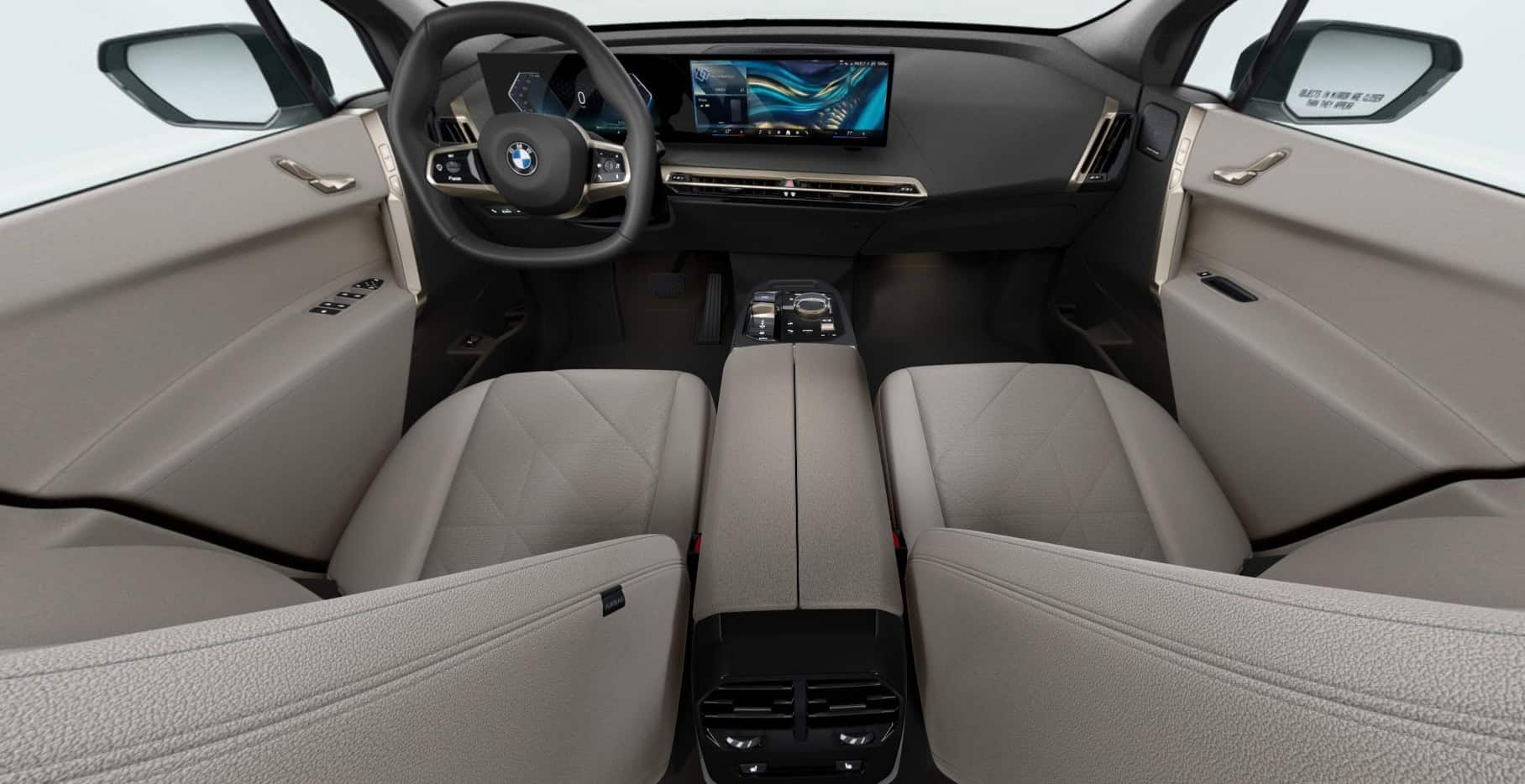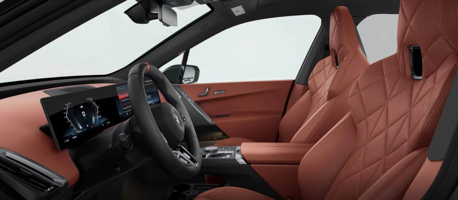Stepping inside, the perforated leather in either Amido or Castanea Chestnut is a $2,500 upgrade. Since the iX M70 sits at the top of the range, it has nearly all the goodies included as standard equipment. For example, the air suspension and rear-wheel steering come out of the box. There are only two options: the $2,550 Driving Assistance Professional Package and the $1,000 Executive Package. The former forces you to get the latter, which adds soft-close doors and fancy glass controls.