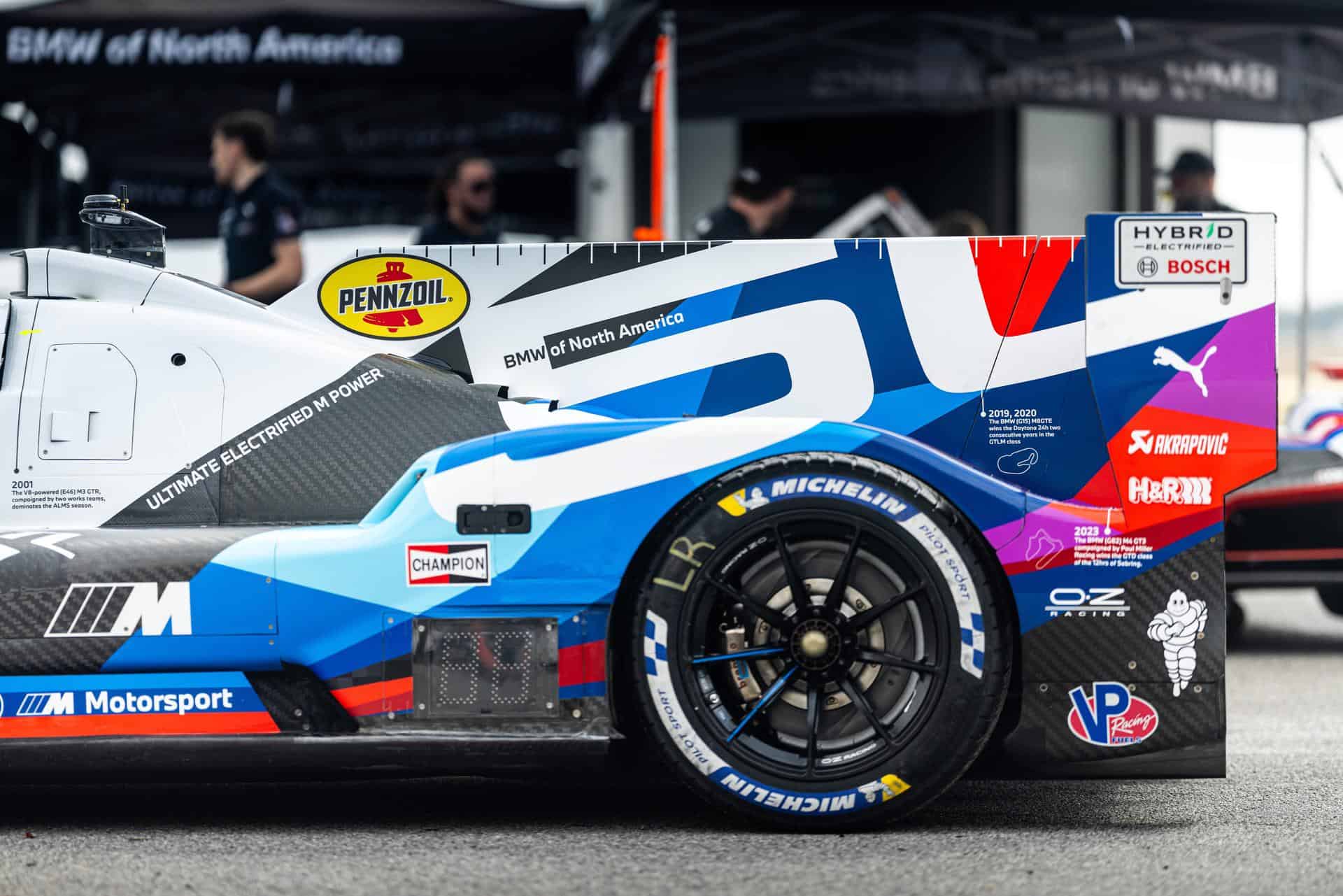 The No. 25 BMW M Hybrid V8, fielded by BMW M Team RLL, will take to the track adorned with a striking commemorative livery. A bold “50” is prominently displayed on the car, while the front end features the outline of the Sebring circuit in the iconic BMW Motorsport colors. Scattered across the livery are references to BMW’s greatest North American racing triumphs,