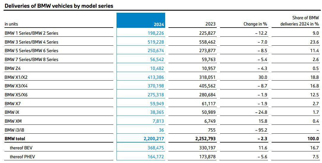 When BMW announced it had sold 2.2 million cars last year, it didn’t break down the performance of each model. Now, the detailed numbers are in, so let’s take a closer look. Every year, we complain about how two model series are combined, and it’s the same story for 2024. Once again, the 1 Series and 2 Series are together, as are the X1 and X2, along with the other model series of larger cars.