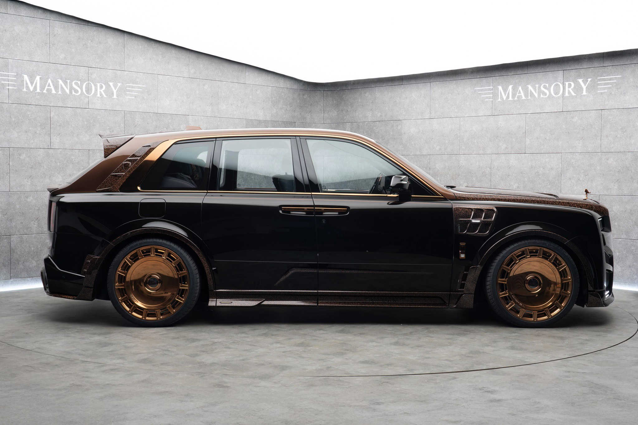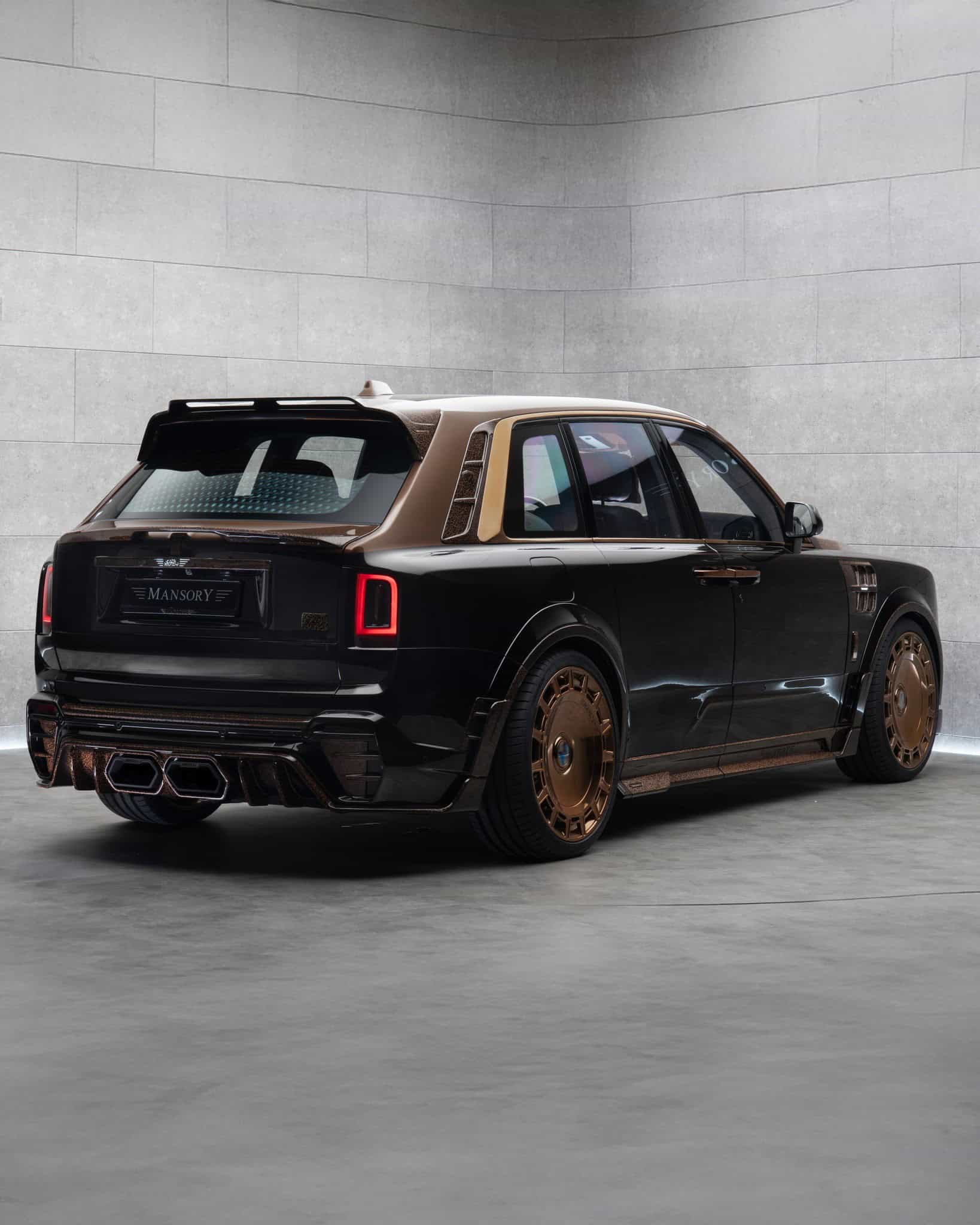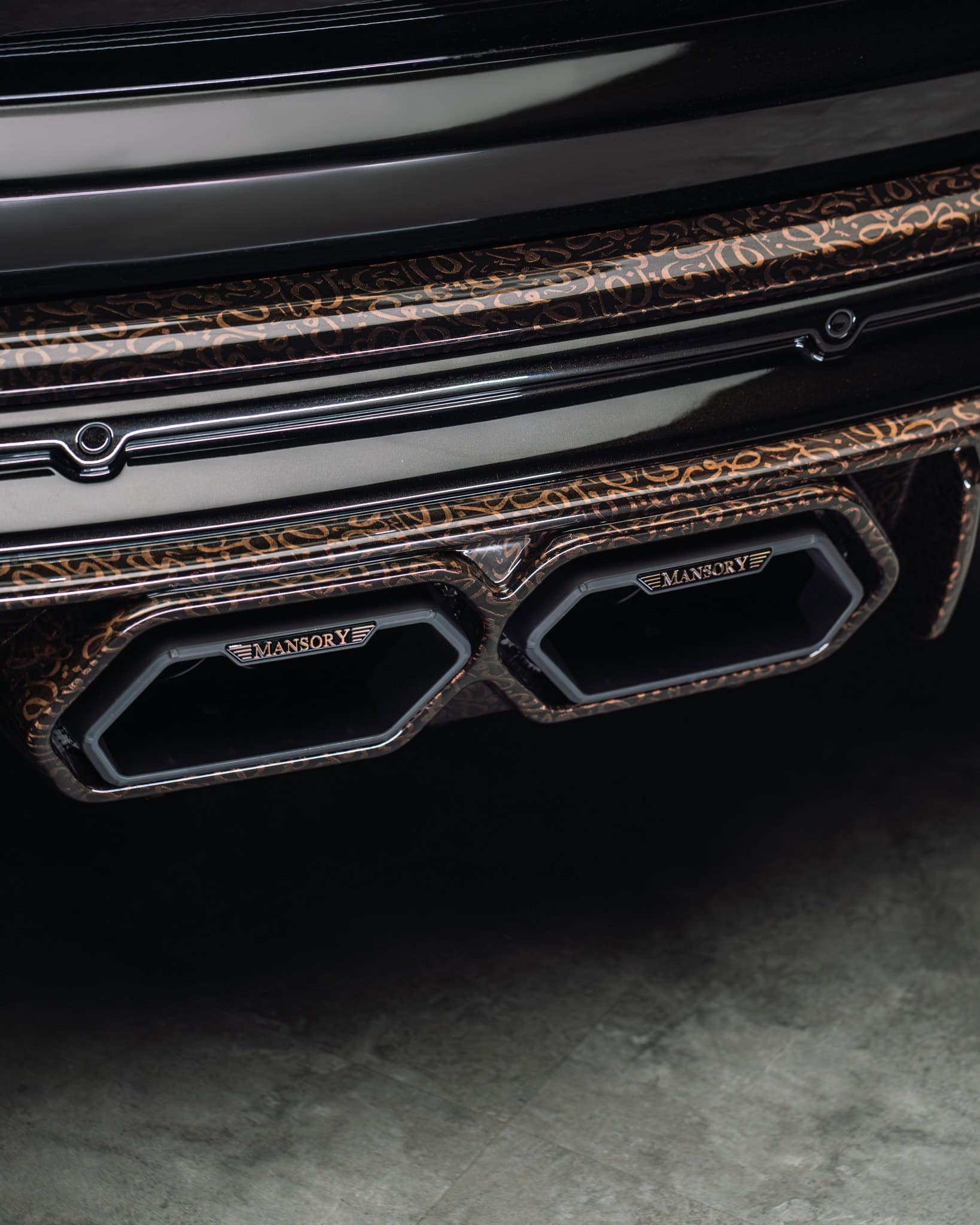 Because everything Mansory does is pure excess, the Cullinan now sits on huge 24-inch wheels wrapped in 295/30 R24 tires. The abundance of body add-ons includes not one but two rear spoilers. Quad exhausts can be replaced with a pair of center-exit hexagonal tips that wouldn’t look out of place on a Lamborghini.