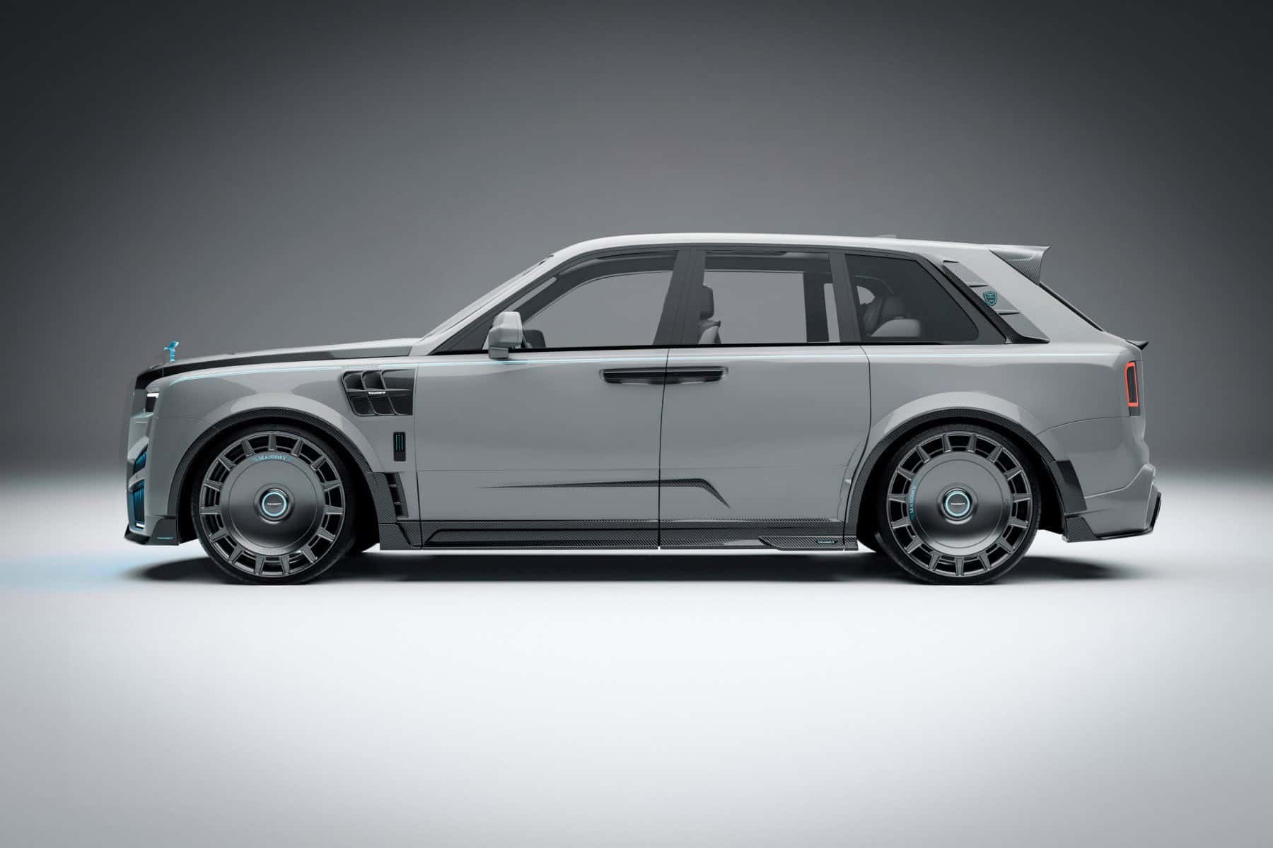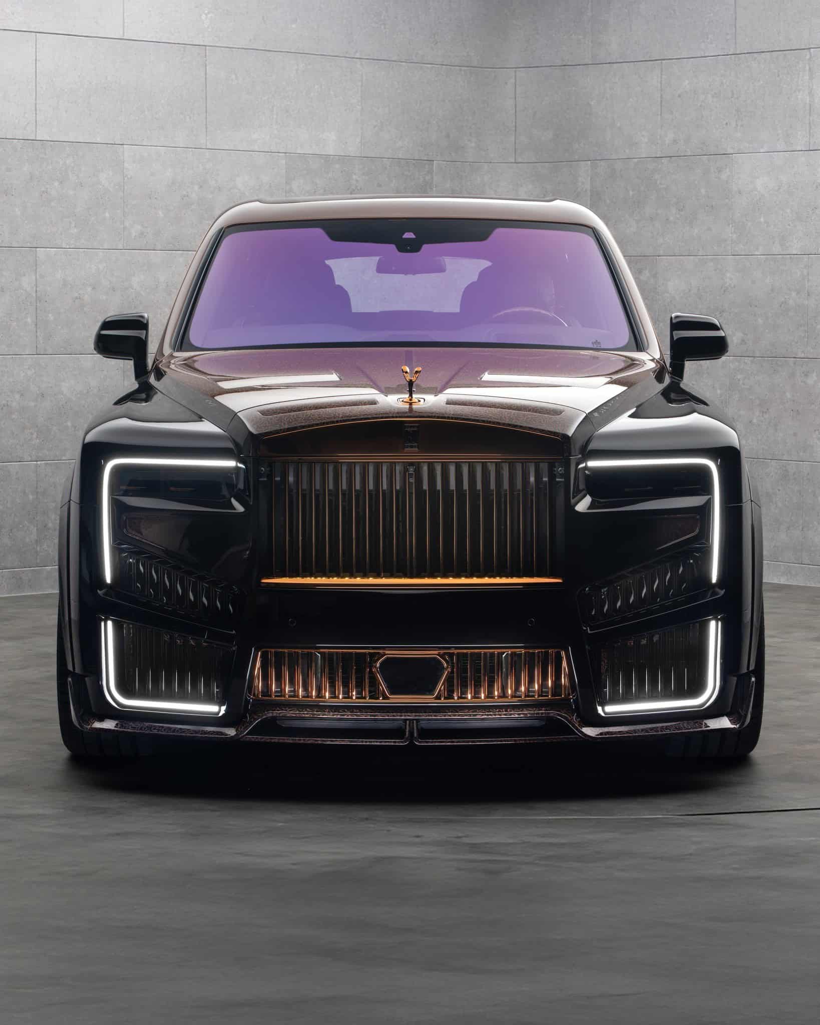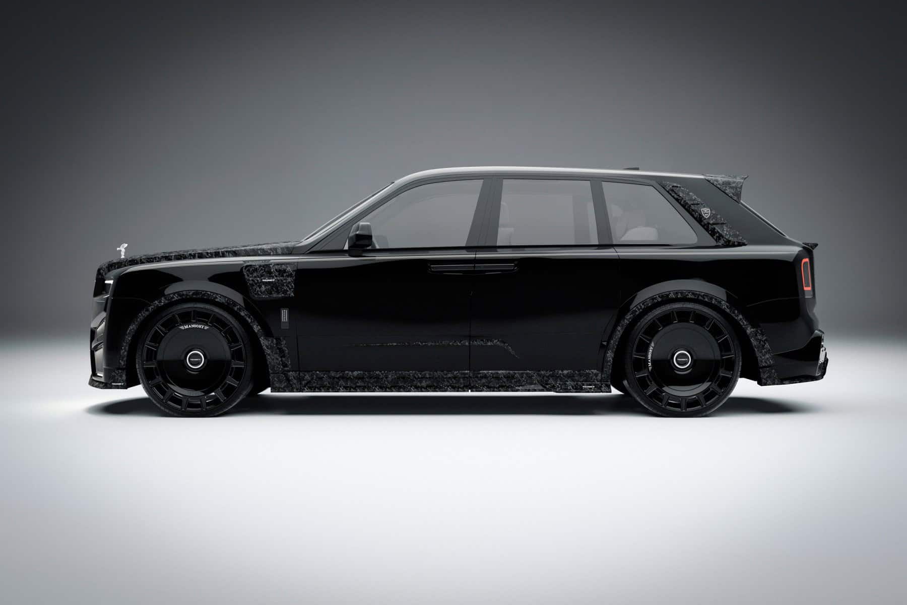 Mansory’s wild take on the Cullinan features a comprehensive carbon fiber body kit. The tuner dared to tweak the imposing Pantheon Grille and copied the new look to the huge air intakes, which light up as well. The newly added L-shaped daytime running lights are hard to miss, creating two mirrored “C” letters. It must look absolutely frightening in a rearview mirror.