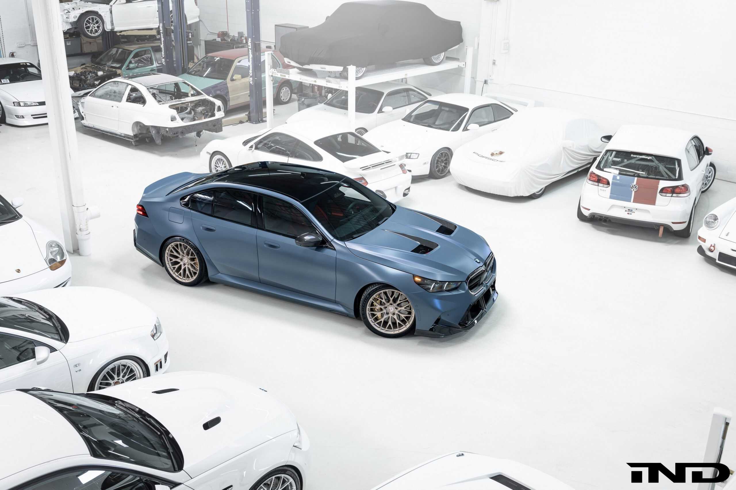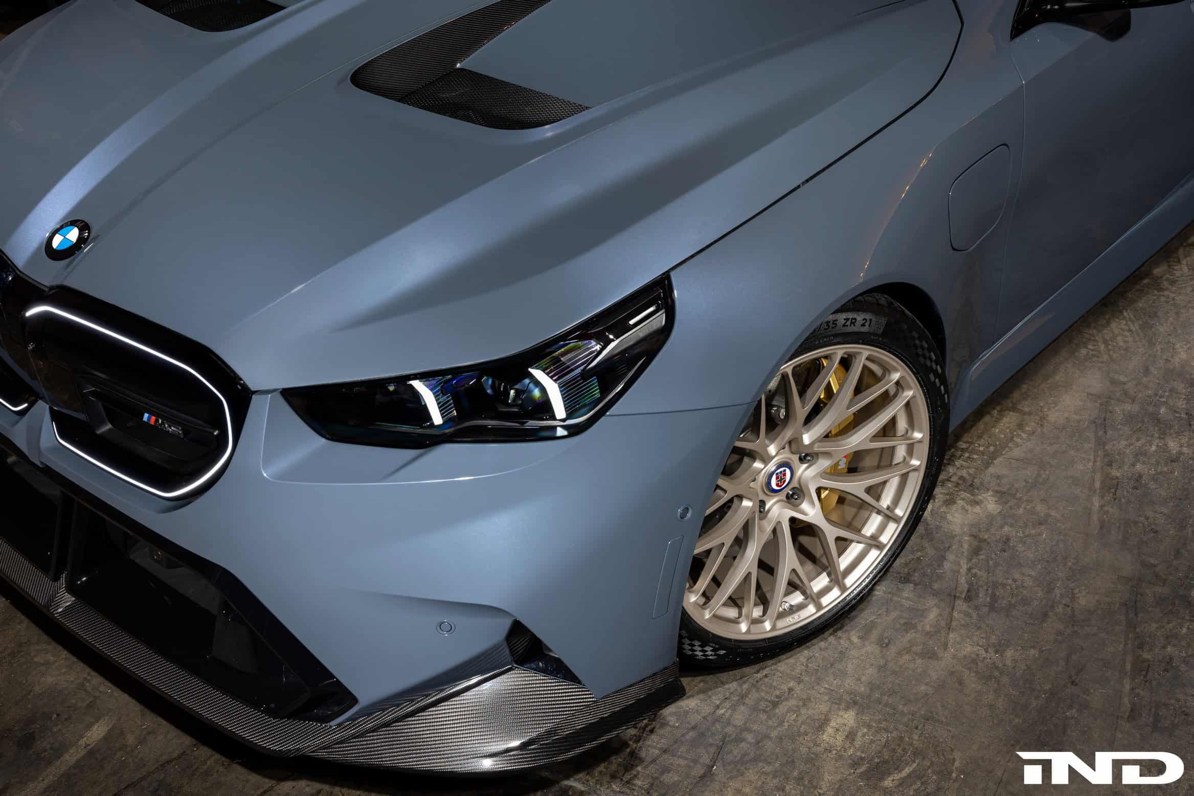 Whenever an M car is launched, tuners are eager to get their hands on it and explore possible change. BMW kicked off deliveries of the M5 several months ago, opening the floodgates to custom G90 builds. IND Distribution is showing its take on the seventh-generation super sedan, shown here in Storm Bay Metallic. The Bavarian missle has received matte paint protection film for a special effect.