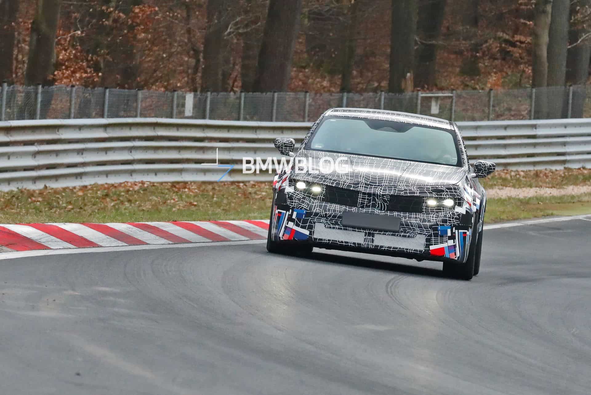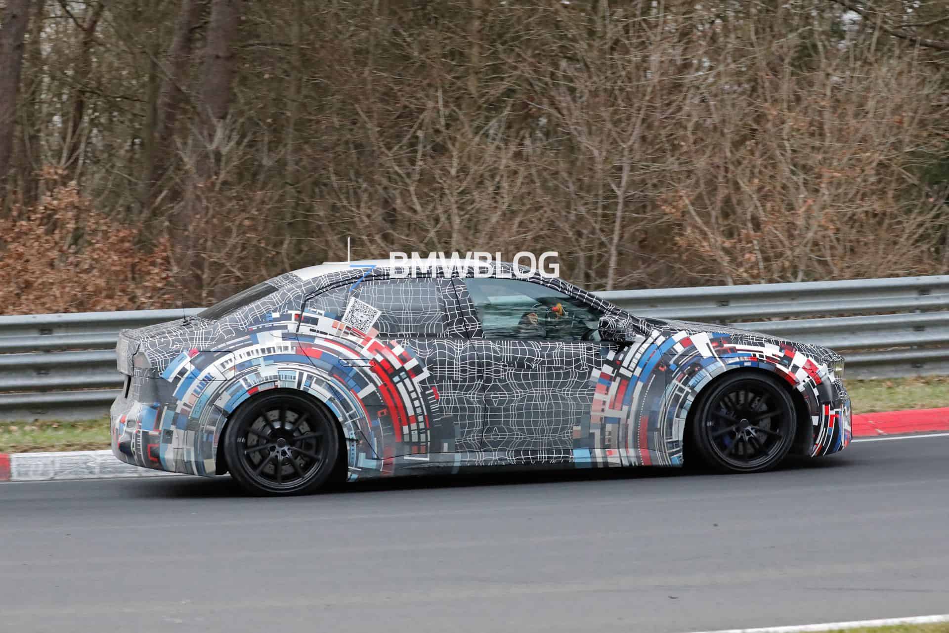 Since the electric M3 is still in its early stages, the prototype caught at the Nordschleife doesn’t have all the production bits in place. Although it appears to have the final body panels, the lights are temporary. The shape, size, and location of the headlights and taillights are unlikely to change since that would require modifications to the bodywork. However, BMW will modify the inner graphics at both ends.
