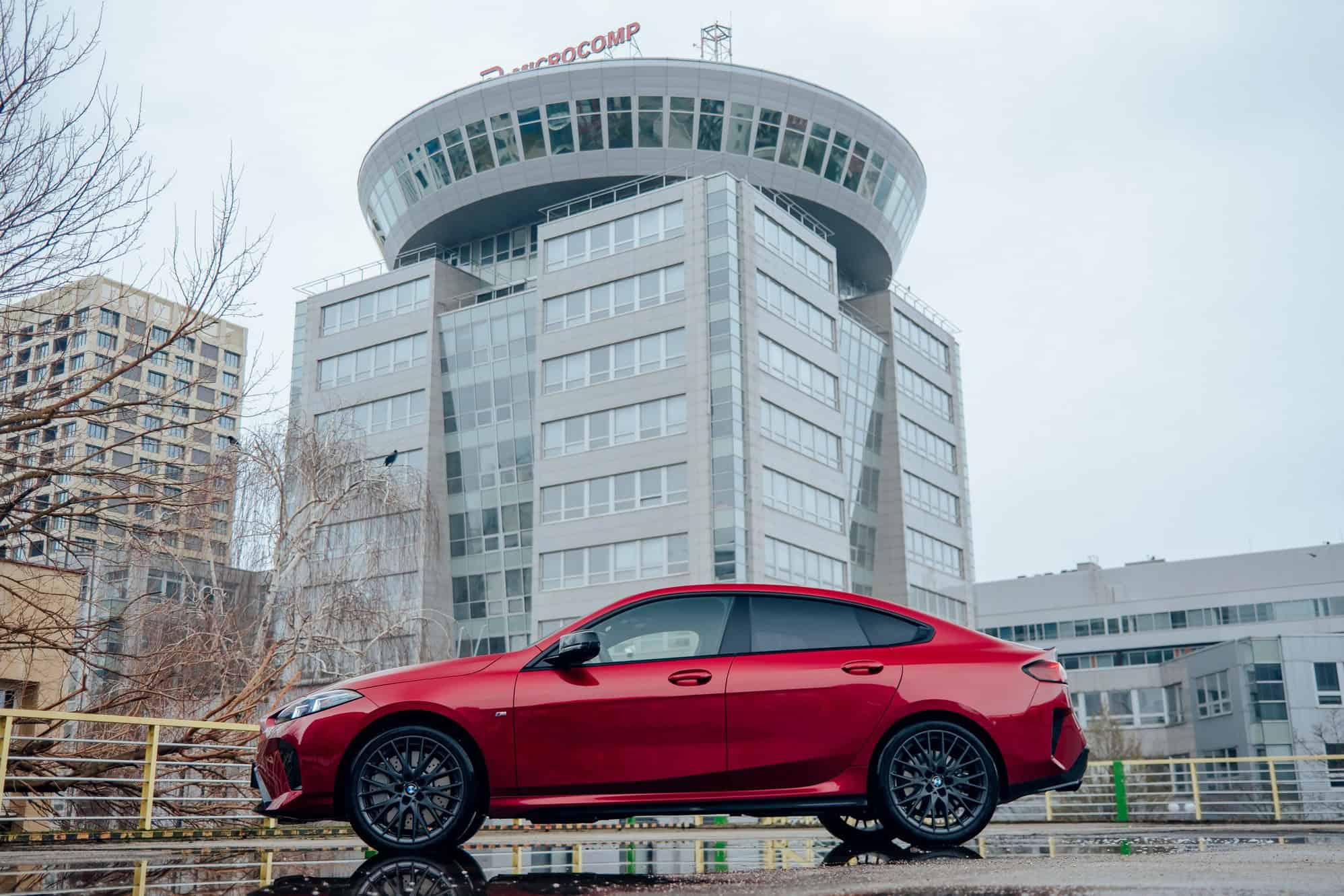 New images from Slovakia show the “F74” in the range-topping M235 Gran Coupe flavor. Typical for a press car, it has plenty of extra goodies. These vary from an optional Fire Red paint to the larger 19-inch 1085 M forged wheels. The brake calipers usually come in either red or blue, but this car has the optional M Compound brakes with grey calipers.