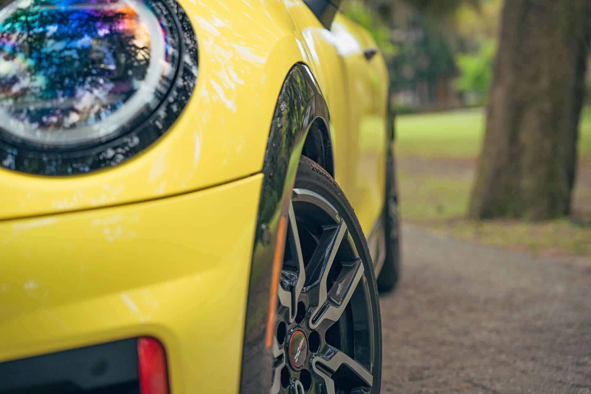 Tire width has been bumped up to 215/40 R18 from 205, which combined with the wider track, translates to noticeably more grip. In fact, the level of grip was genuinely impressive. Equipped with Continental ExtremeContact DWS summer tires, the JCW maintained remarkable composure—even under aggressive steering inputs. You could hear the tires working hard, but they never lost traction, delivering confident handling without sacrificing control. Turn-in feels more confident, and mid-corner balance is composed.