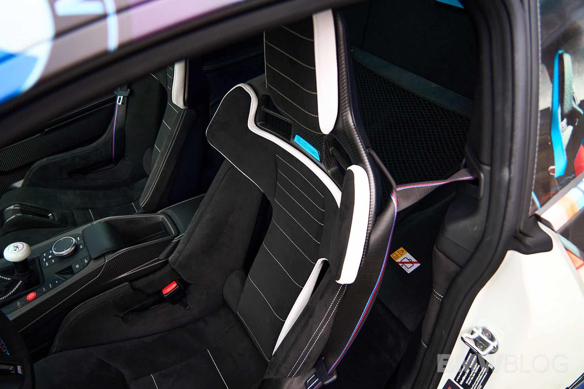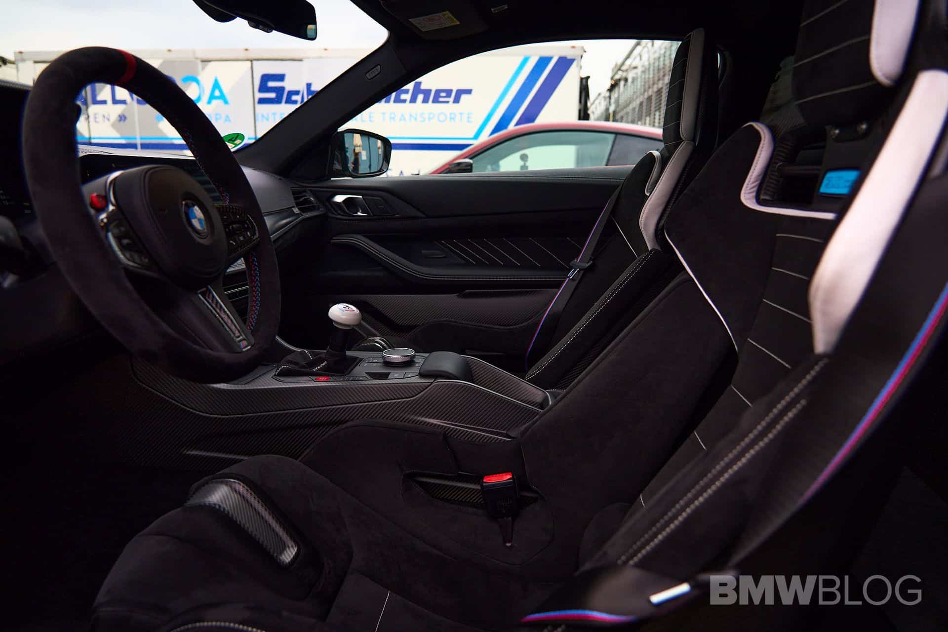 BMW finished this 3.0 CSL, like all examples, in Alpine White with retro-flavored M stripes. It features flashy gold centerlock forged wheels and a kidney grille design we’d love to see on mainstream M models. Although it’s not as spectacular as the one-off 2015 3.0 CSL Hommage R, the retro cues do make it far more special than a standard G82.