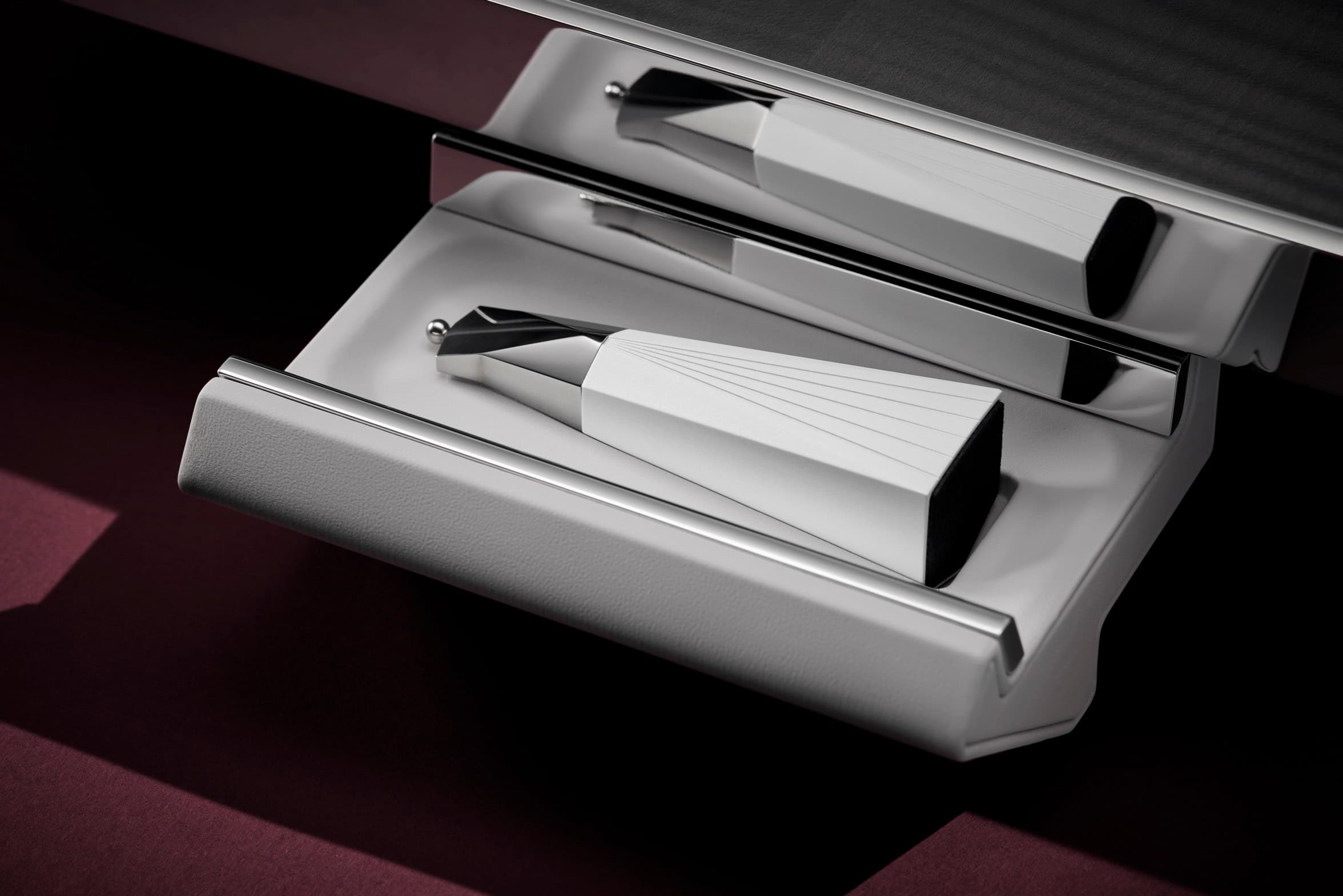 The chessboard features an aluminum grid with laser-cut veneer squares, and every grid is meticulously applied by hand. Each piece is magnetically held in place, and Rolls-Royce claims to have tested six different types of magnets before selecting the very best. Polished aluminum borders add to the high-end look, while drawers on both sides of the board offer hidden storage, each containing an extra queen for pawn promotions.