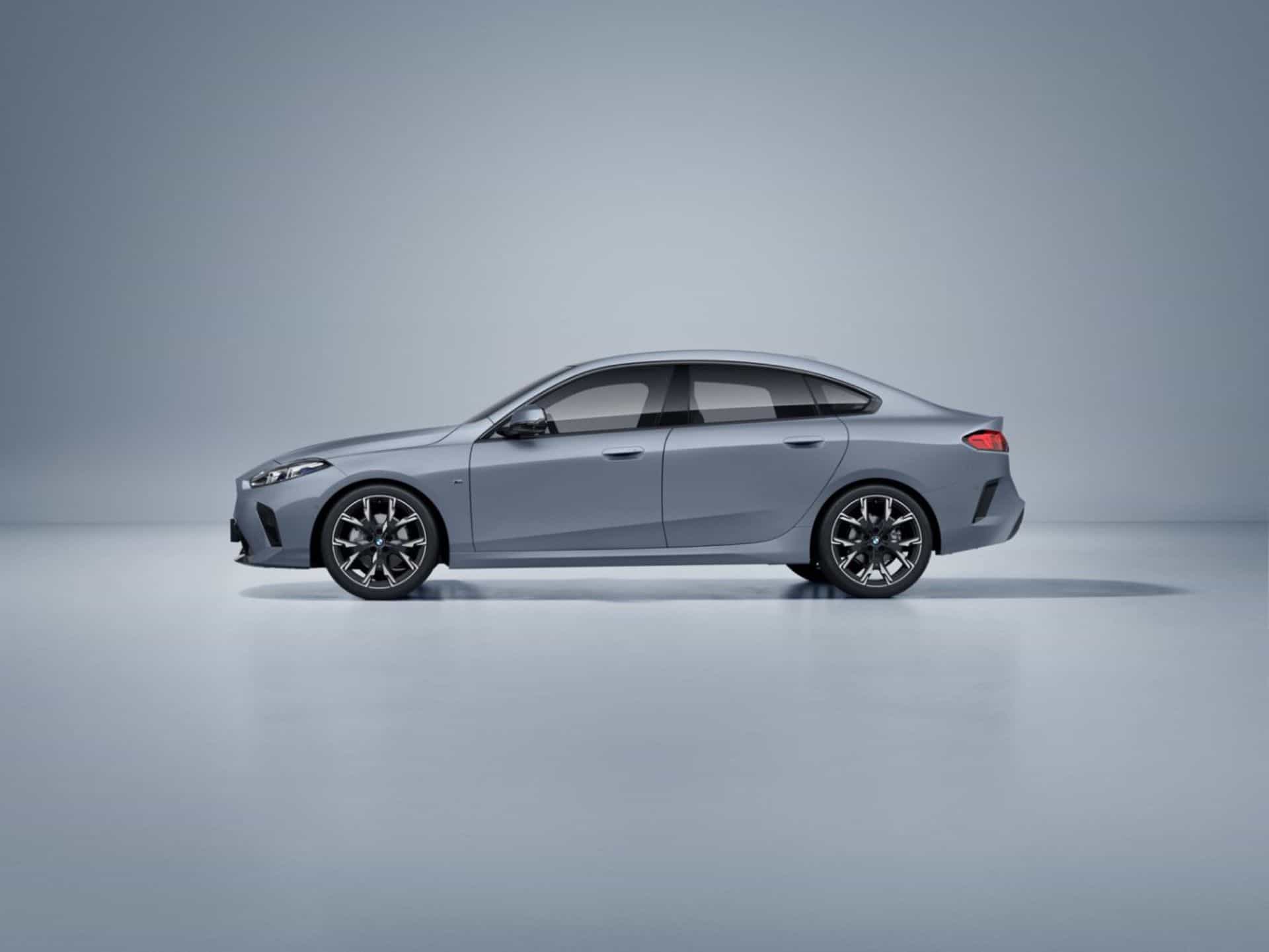 BMW is showing off the M235L in Brooklyn Grey, sitting on the larger 19-inch bi-color 977 M wheels. Inside, rear seat photos highlight just how much legroom is packed into what is still technically BMW’s smallest sedan. BMW says it re-angled the rear bench and beefed up the cushioning for better comfort. Other cabin highlights include discreet ambient lighting, two-tone upholstery, and a panoramic sunroof with electric shade.