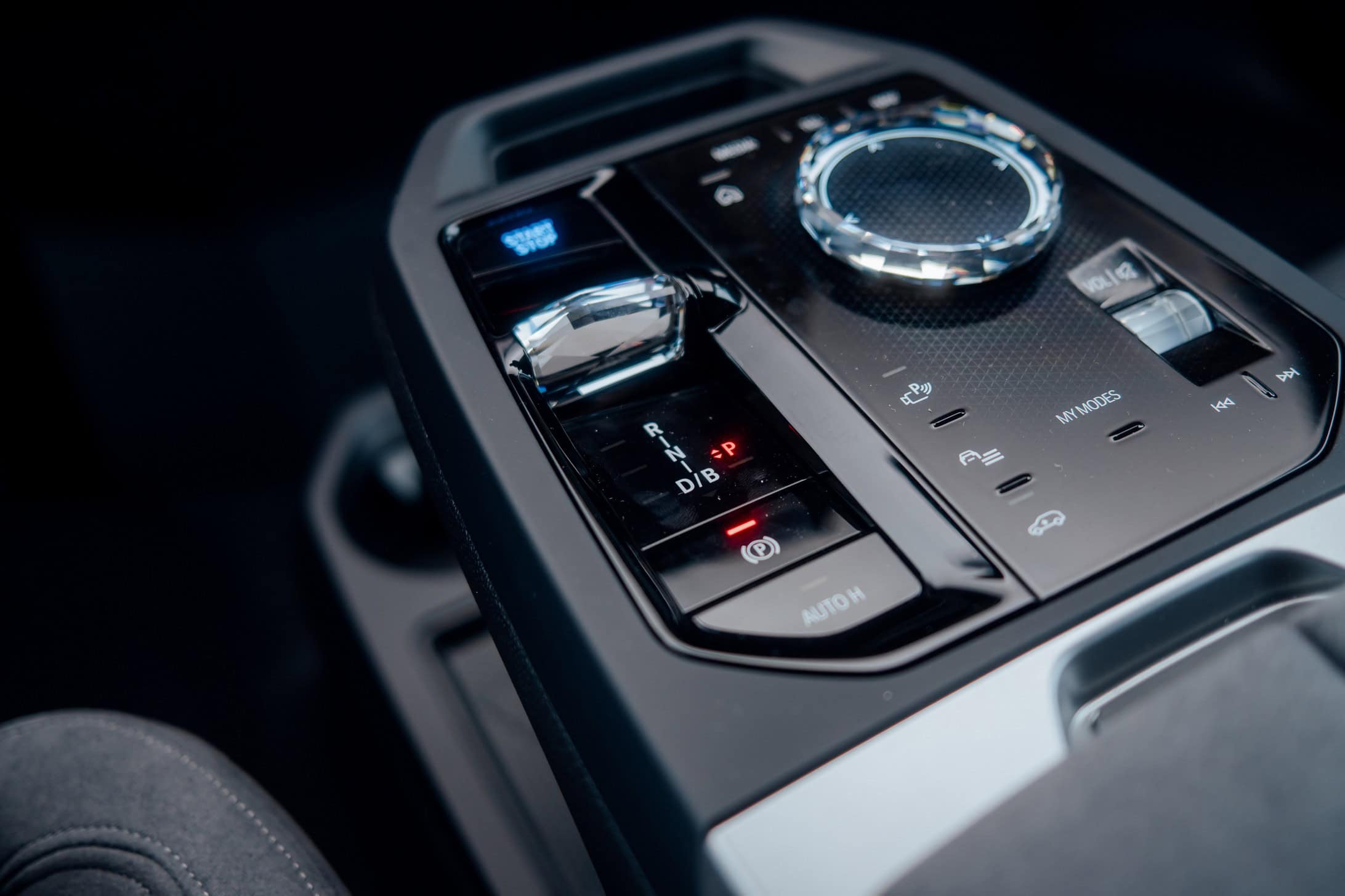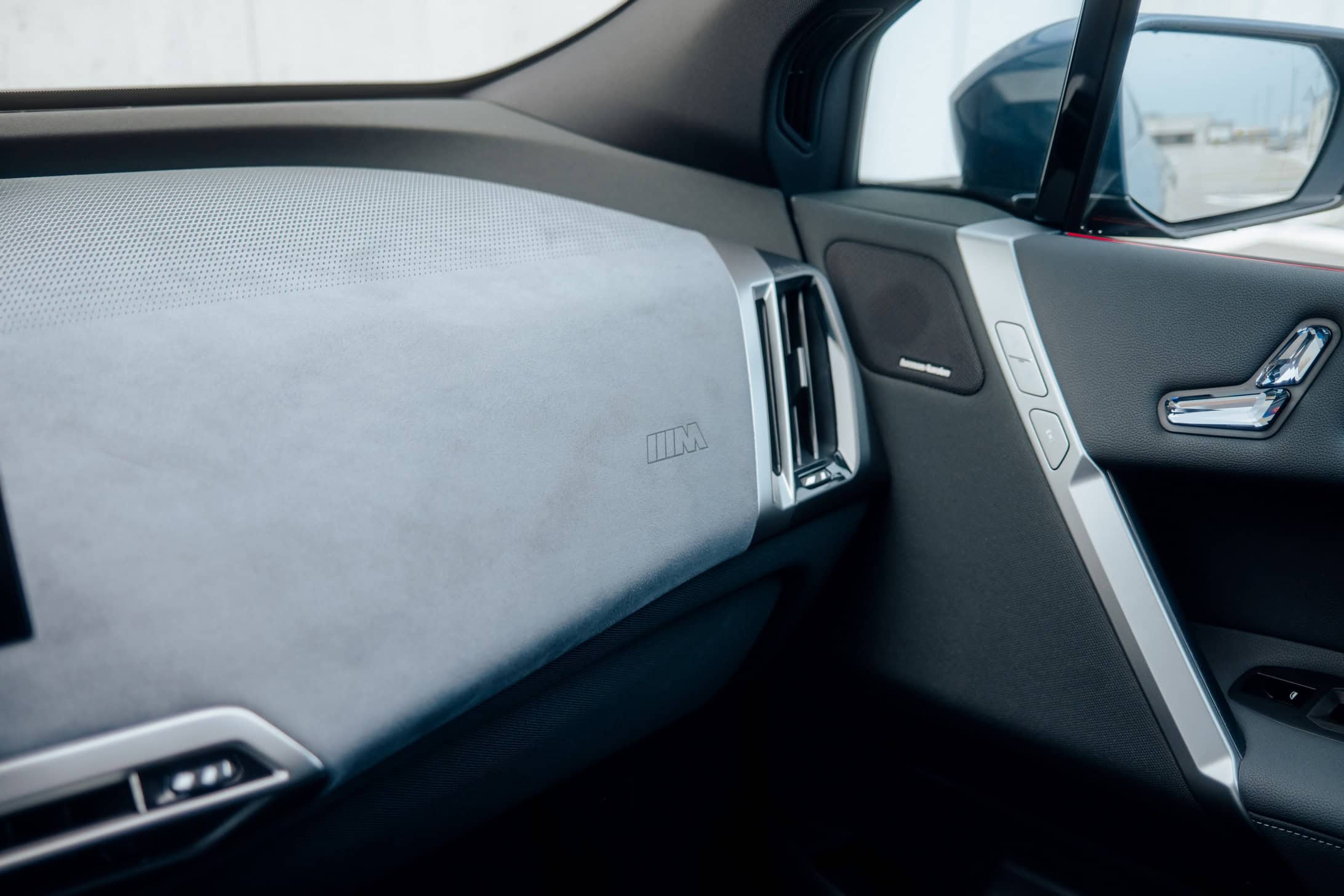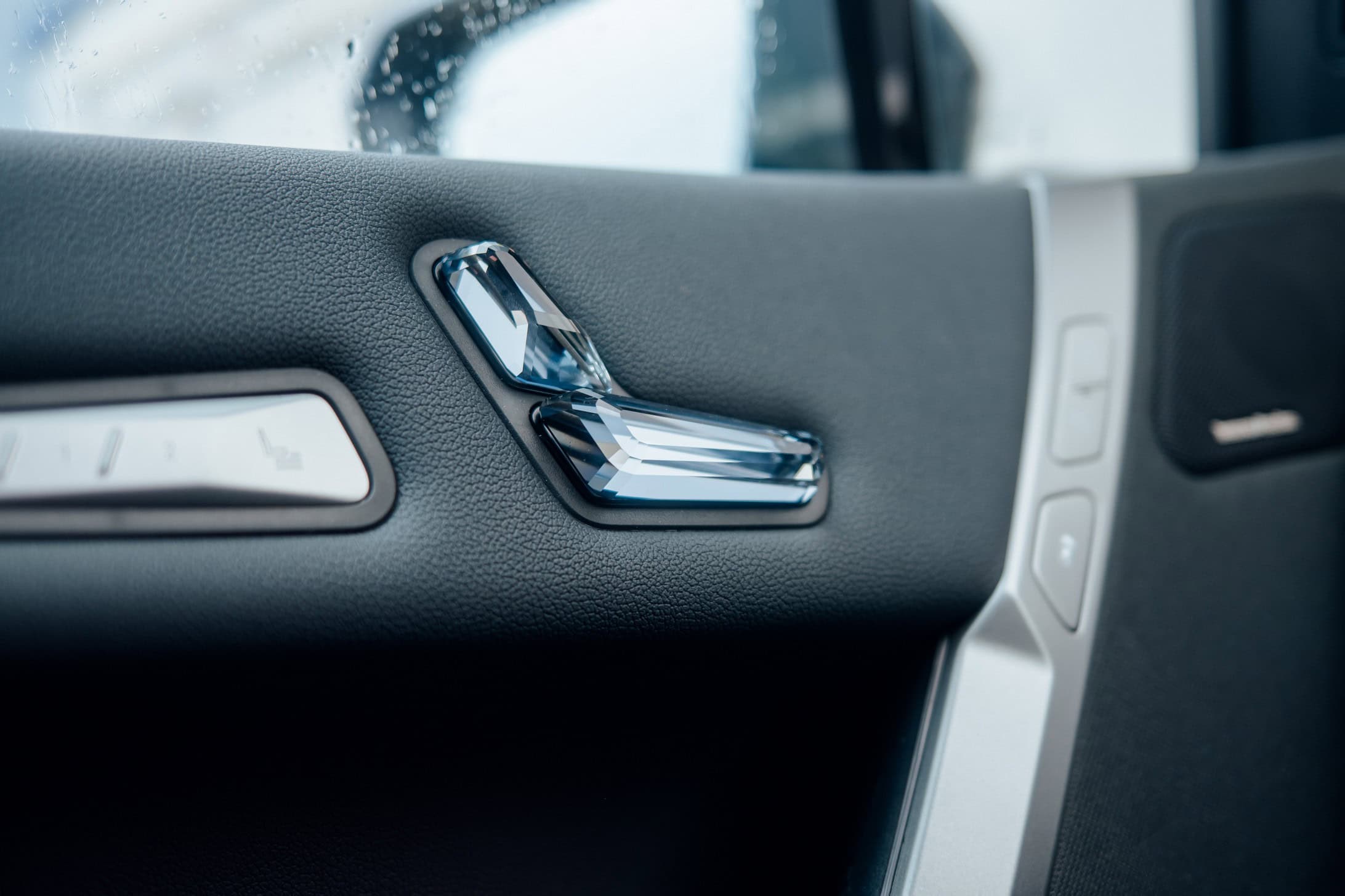 The iX xDrive45 appears here with the optional M Sport Package, a first for the model. BMW has also given the electric luxobarge one of the new colors introduced with the Life Cycle Impulse: Arctic Race Blue. It pairs nicely with the 22-inch wheels, unless you’re feeling adventurous enough to opt for the fancier 23-inch set. The kidney grille’s illuminated contour is standard on the M Performance model but available at extra cost on lower trims such as this one.