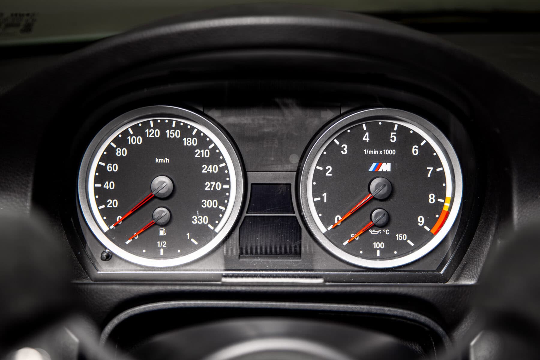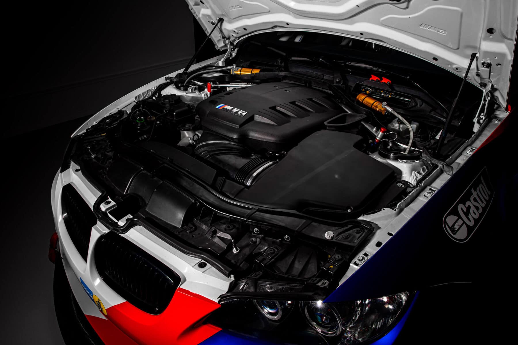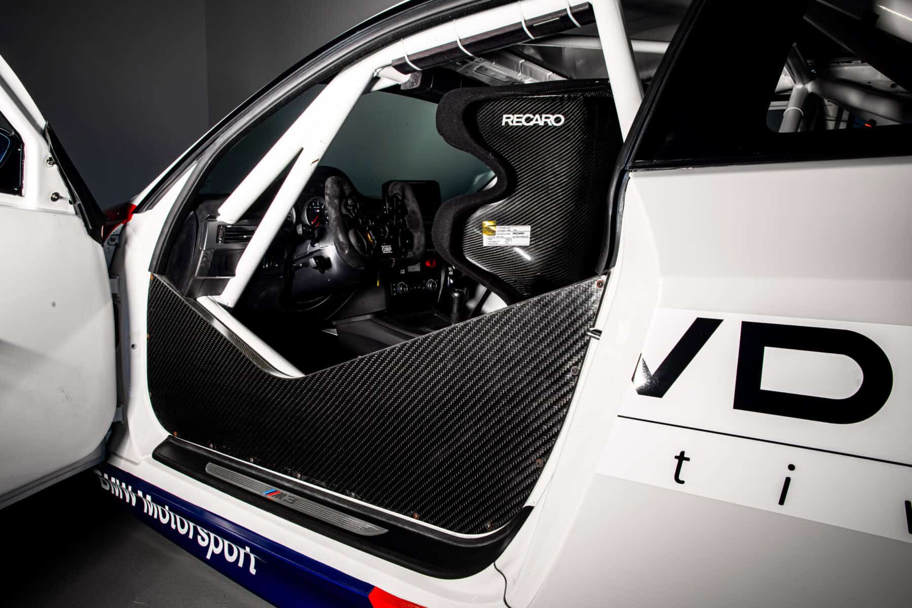 BMW also fitted adjustable shocks, BBS wheels, and Makrolon side and rear windows to reduce weight. The welded roll cage and quick-release steering wheel are hard to miss. Other special features include an air jack system and a Recaro racing seat with a head and neck support (HANS) device.