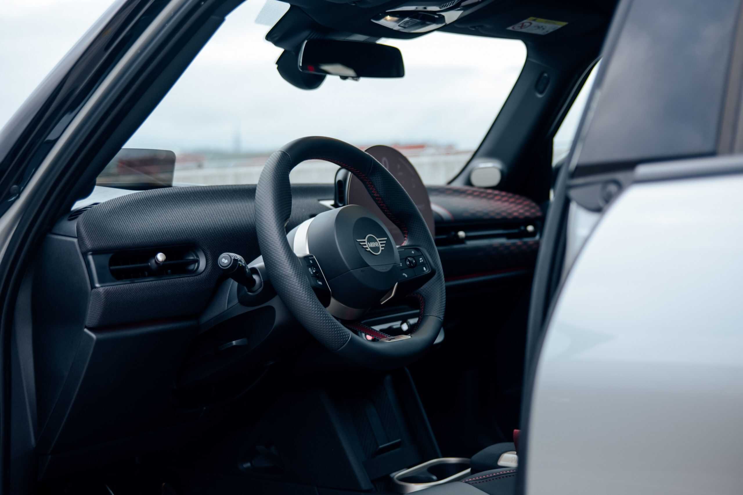It’s a stylish little car with no direct rivals, as other sporty hatchbacks tend to be larger. MINI also stands apart from the competition in terms of interior design. The cabin centers around a 9.4-inch circular OLED display, though several physical controls remain below the infotainment screen. In JCW Trim, the Cooper S features a predominantly black interior accented with red highlights.