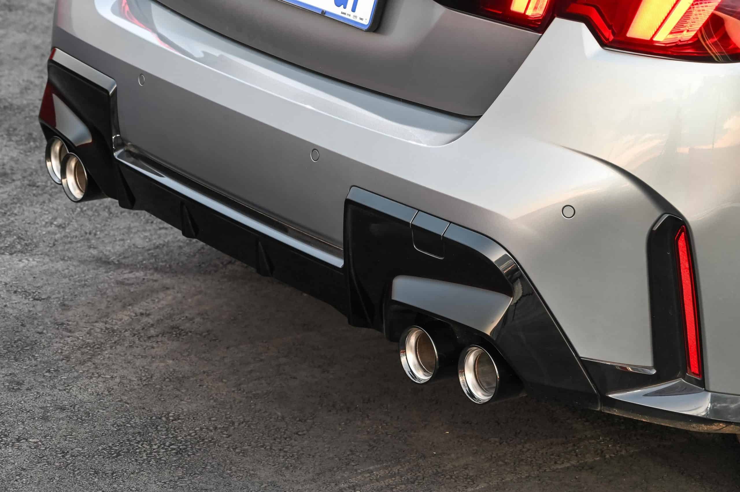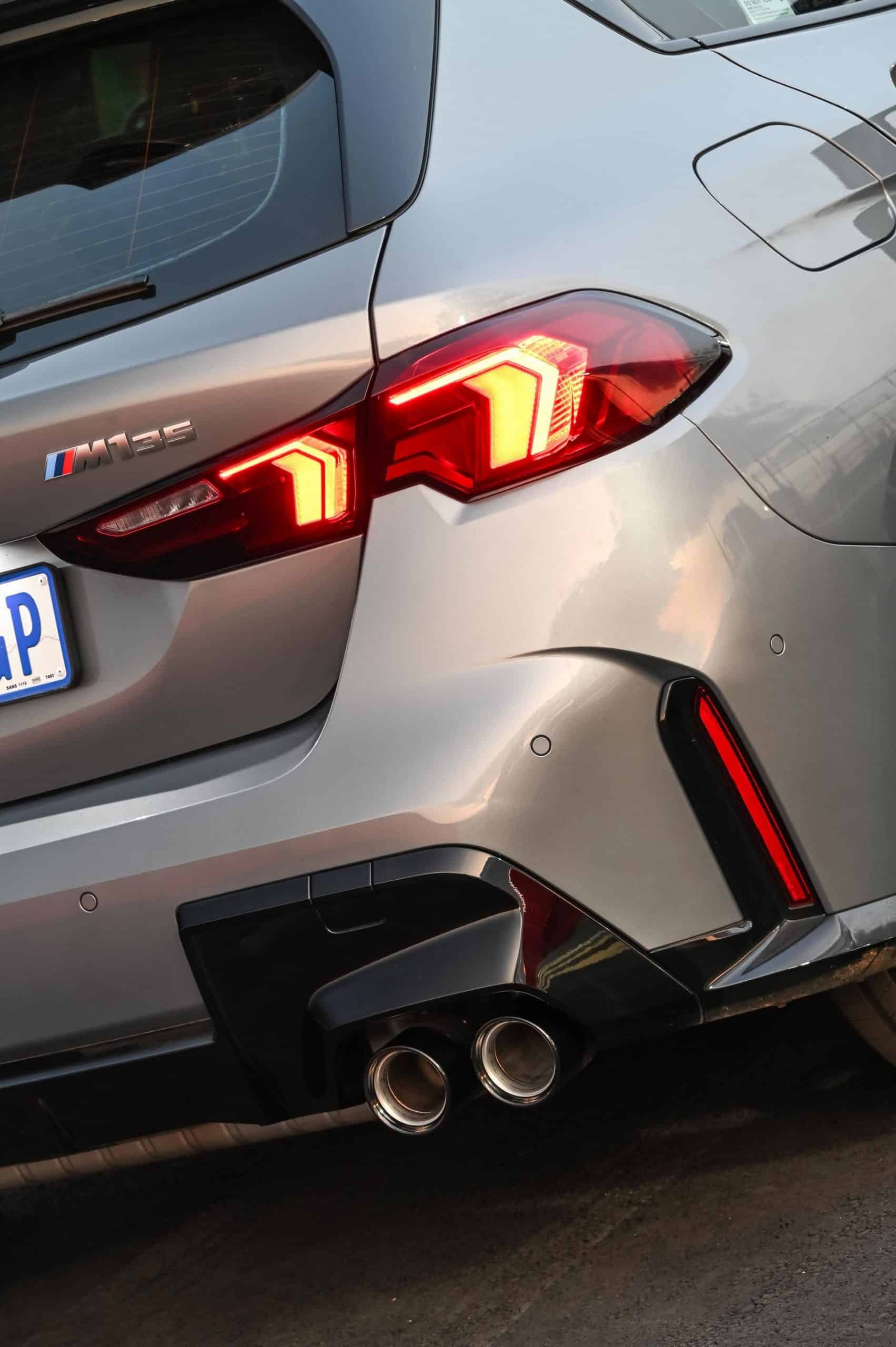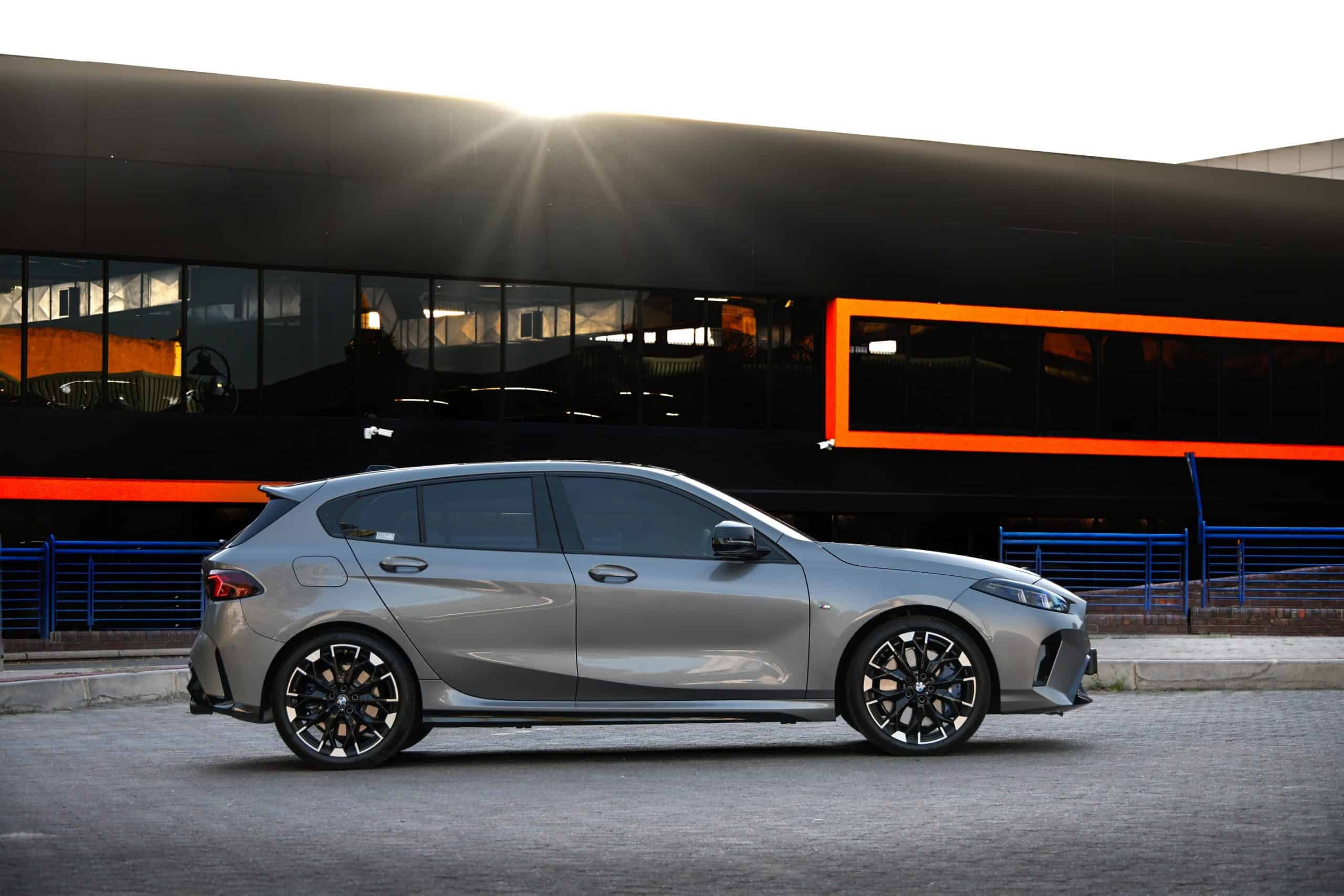 The right-hand-drive 1er shows off its Skyscraper Grey paint, one of several colors offered in South Africa. Those willing to splurge on customization can opt for Individual hues like Storm Bay or the matte Frozen Portimao Blue. BMW installed the optional 19-inch wheels to upgrade the standard 18-inch set, consequently making the M135 look more substantial.