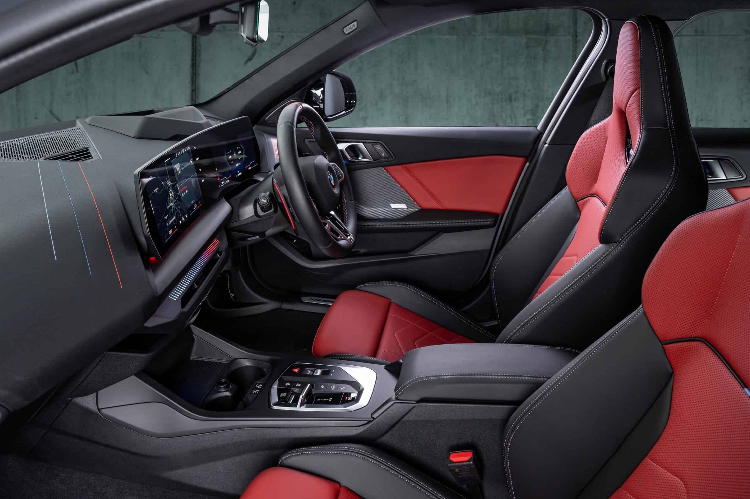 BMW wrapped the two-tone M Sport seats in perforated Veganza, a marketing term for artificial leather. These new images highlight how much the 1 Series and M135 have changed with the latest generation. The iDrive rotary knob and many physical controls on the center console are gone. The dashboard now appears perhaps a bit too decluttered, but in the smartphone era, maybe an all-screen layout is what younger buyers are after.