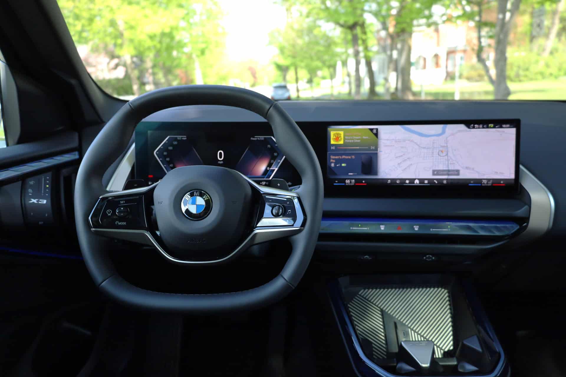 Of course, there are some casualties in BMW’s quest for maximizing tech features while minimizing touch points. Climate controls are now screen-controlled, and nobody that spent any amount of time in our loaner car loved that. The steering wheel buttons feel like a victim of accounting-led cuts; fewer buttons are now in charge of doing more than ever. No more “BC” button on the turn signal stalk; no more individual buttons for the radar cruise control. And in fact, buttons lead us to one of the bigger — maybe only — sticking points we have with the 2025 BMW X3.