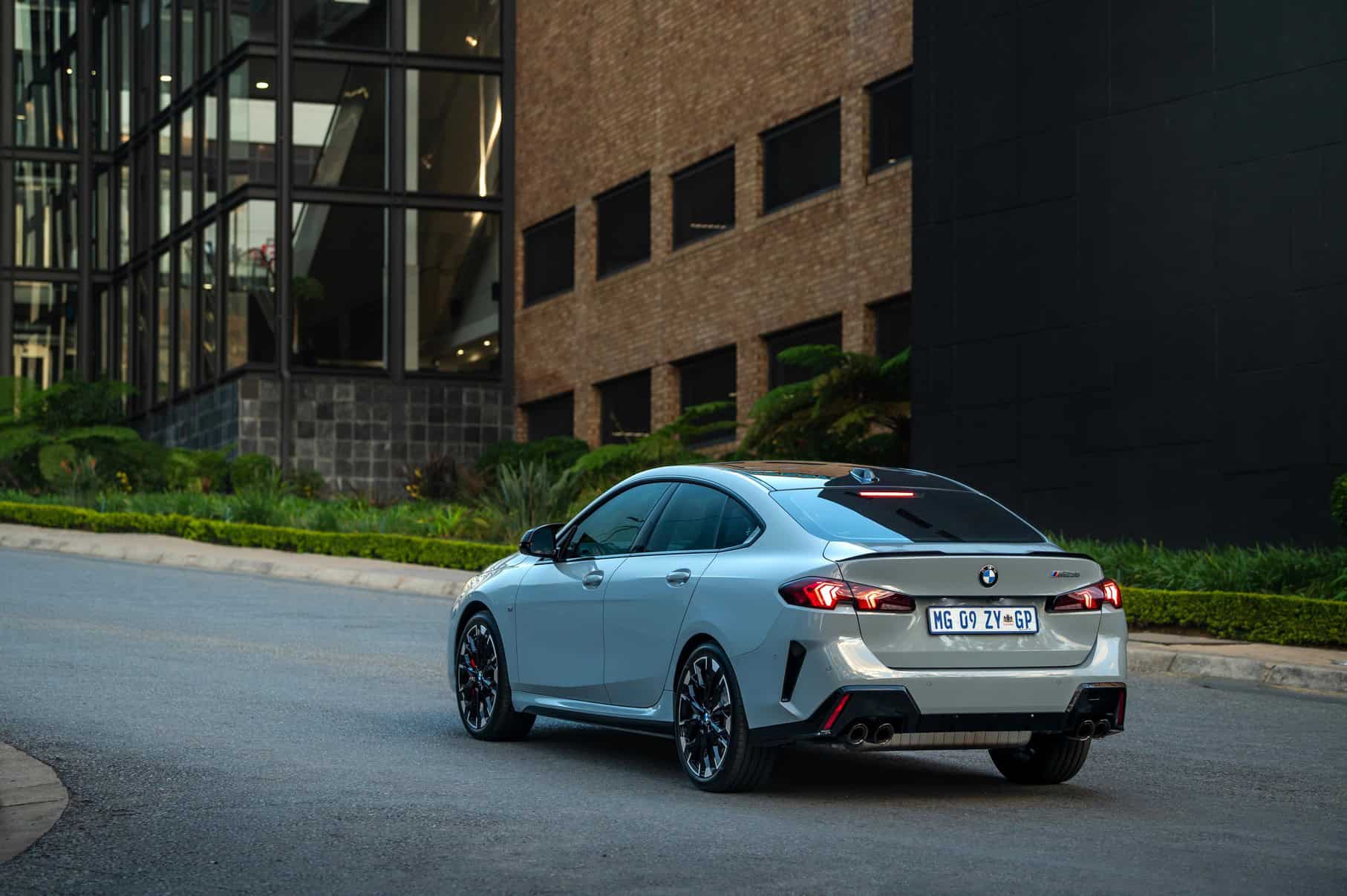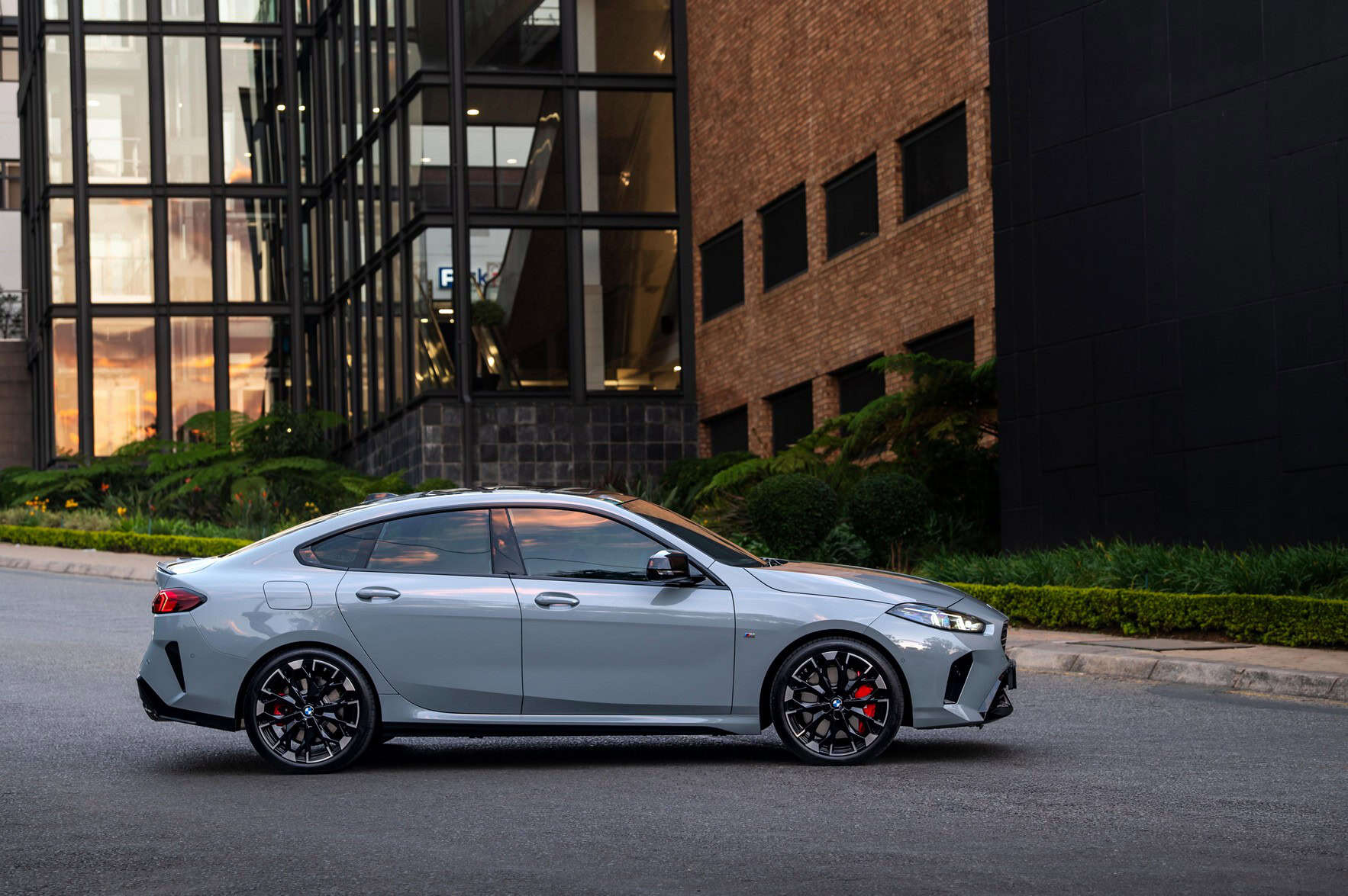 The M235 is one of the two gasoline-powered versions available in South Africa for the 2 Series Gran Coupe “F74.” BMW is showing off its M Performance sedan in Brooklyn Grey, equipped with optional 19-inch wheels. We also spot the M Sport Package Pro, featuring dark Shadowline accents and red brake calipers. Inside, the M Sport seats come with tri-color stitching on the seatbelts.