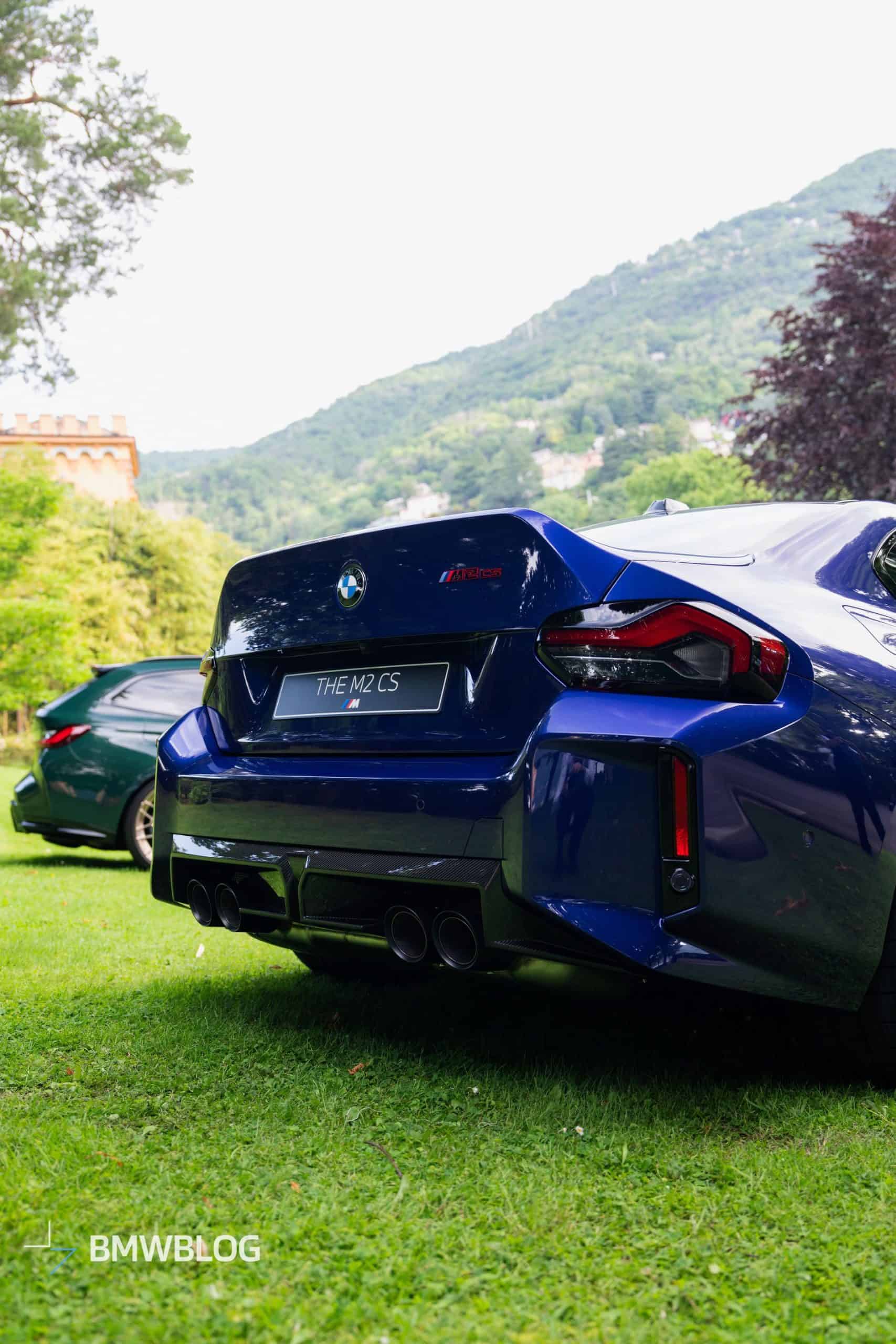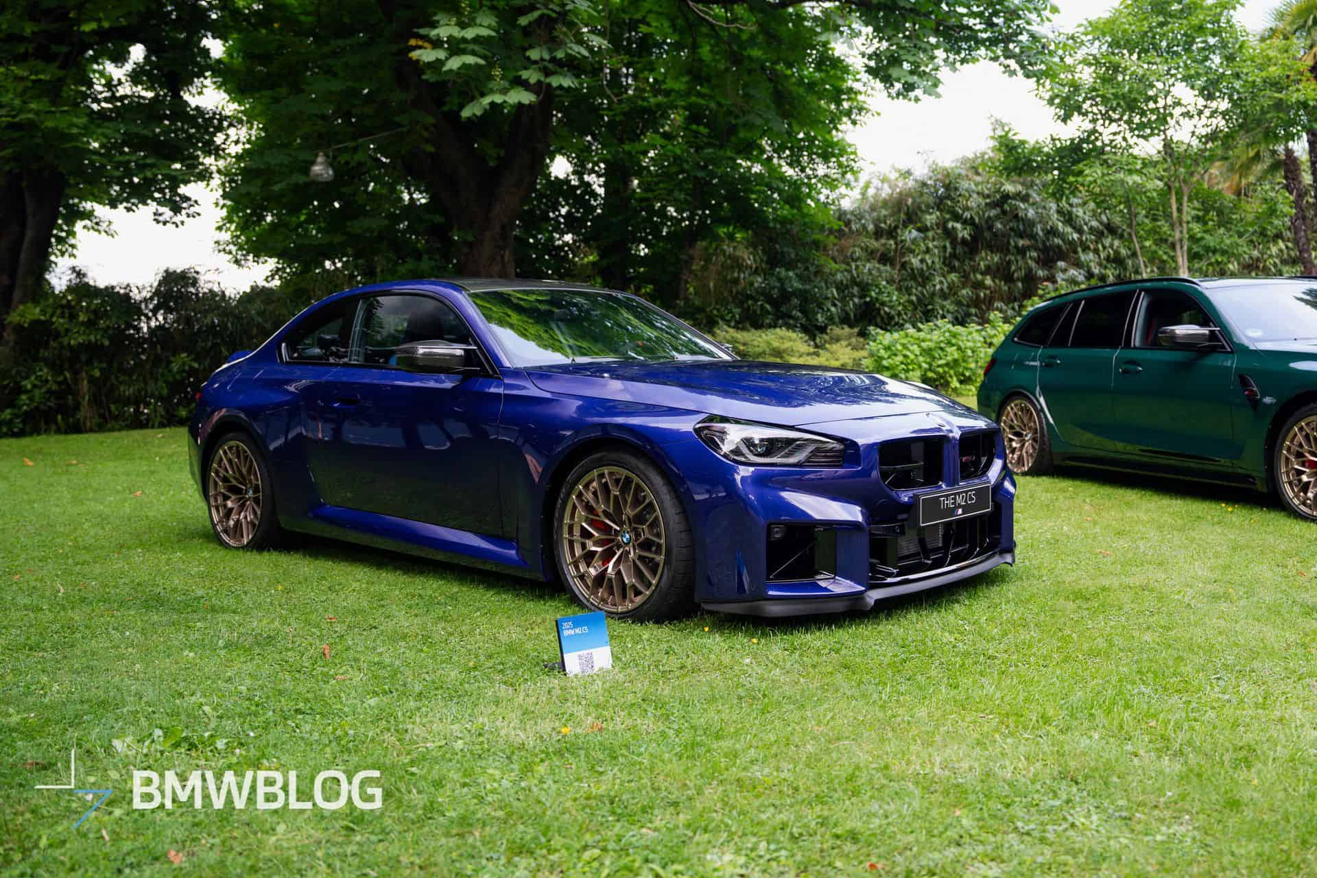As much as we like the new M2 CS in Brooklyn Grey, a limited-run BMW special edition deserves a special paint finish. Thankfully, the upgraded G87 comes with an optional Individual color. This weekend, we filmed the new Competition Sport in Velvet Blue at the Concorso d’Eleganza Villa d’Este. Like the other car in the press shots, it sat on matte Gold Bronze wheels.