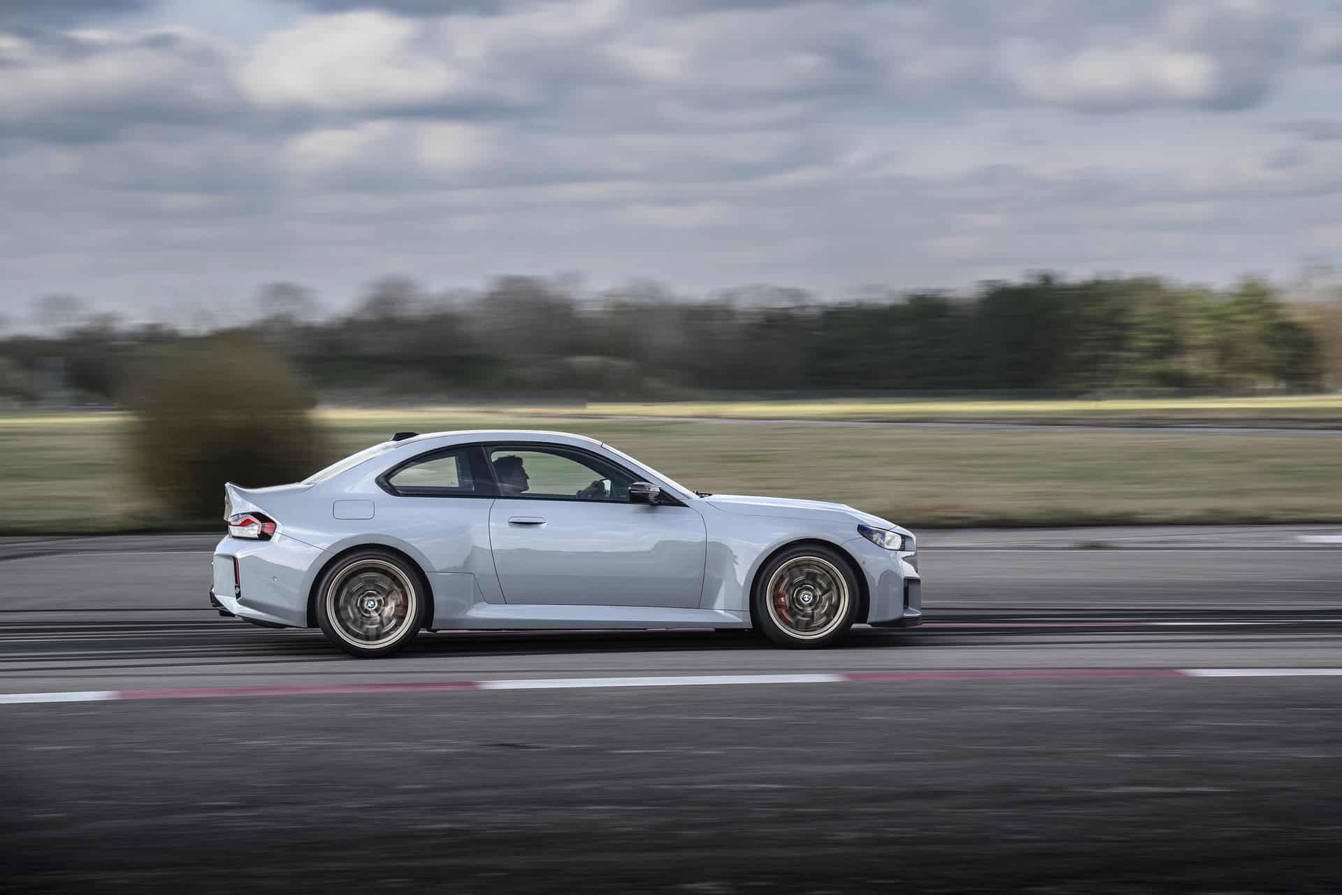 Adding power and shedding weight has reduced the 0-60 mph (96 km/h) sprint by two-tenths of a second to 3.7 seconds. In Europe, the M2 CS reaches 62 mph (100 km/h) in 3.8 seconds. Using the one-foot rollout method, it does the job in 3.5 seconds. Flat out, it reaches an electronically limited 188 mph (302 km/h), making it 11 mph (17 km/h) faster than the standard car.