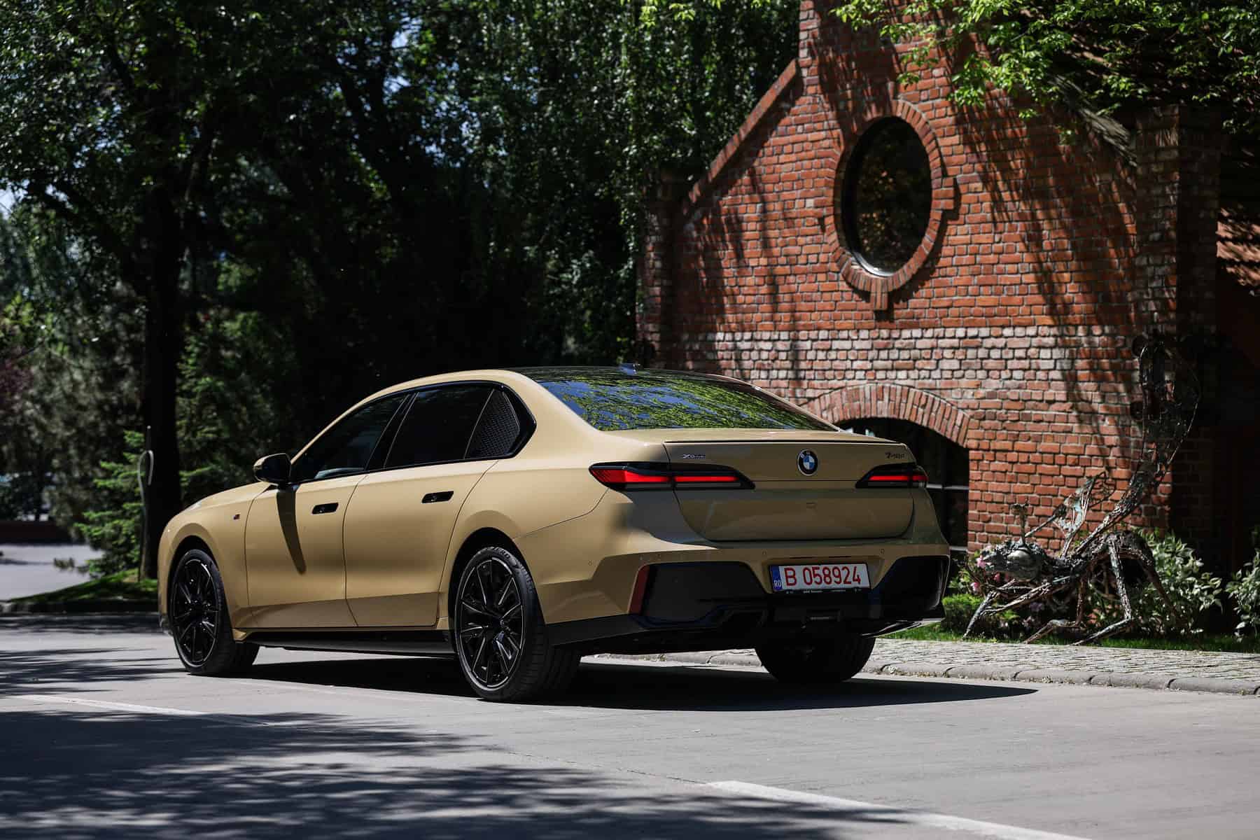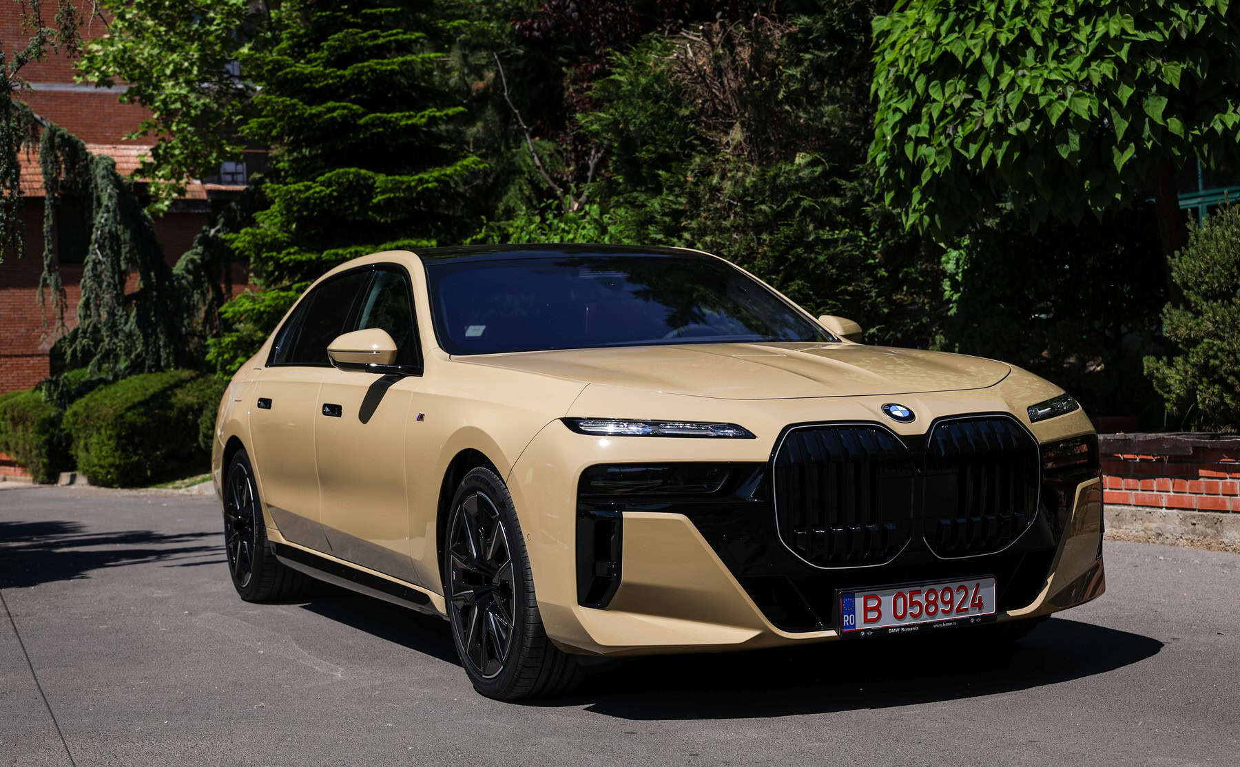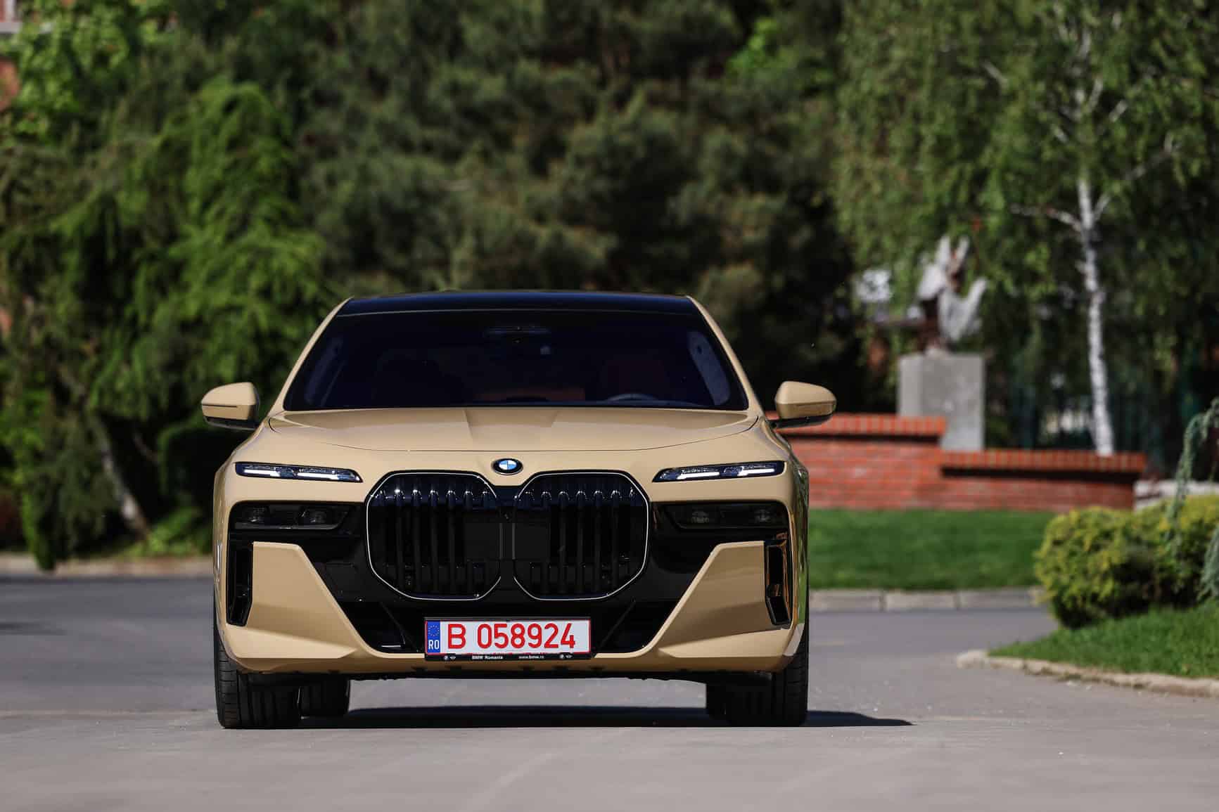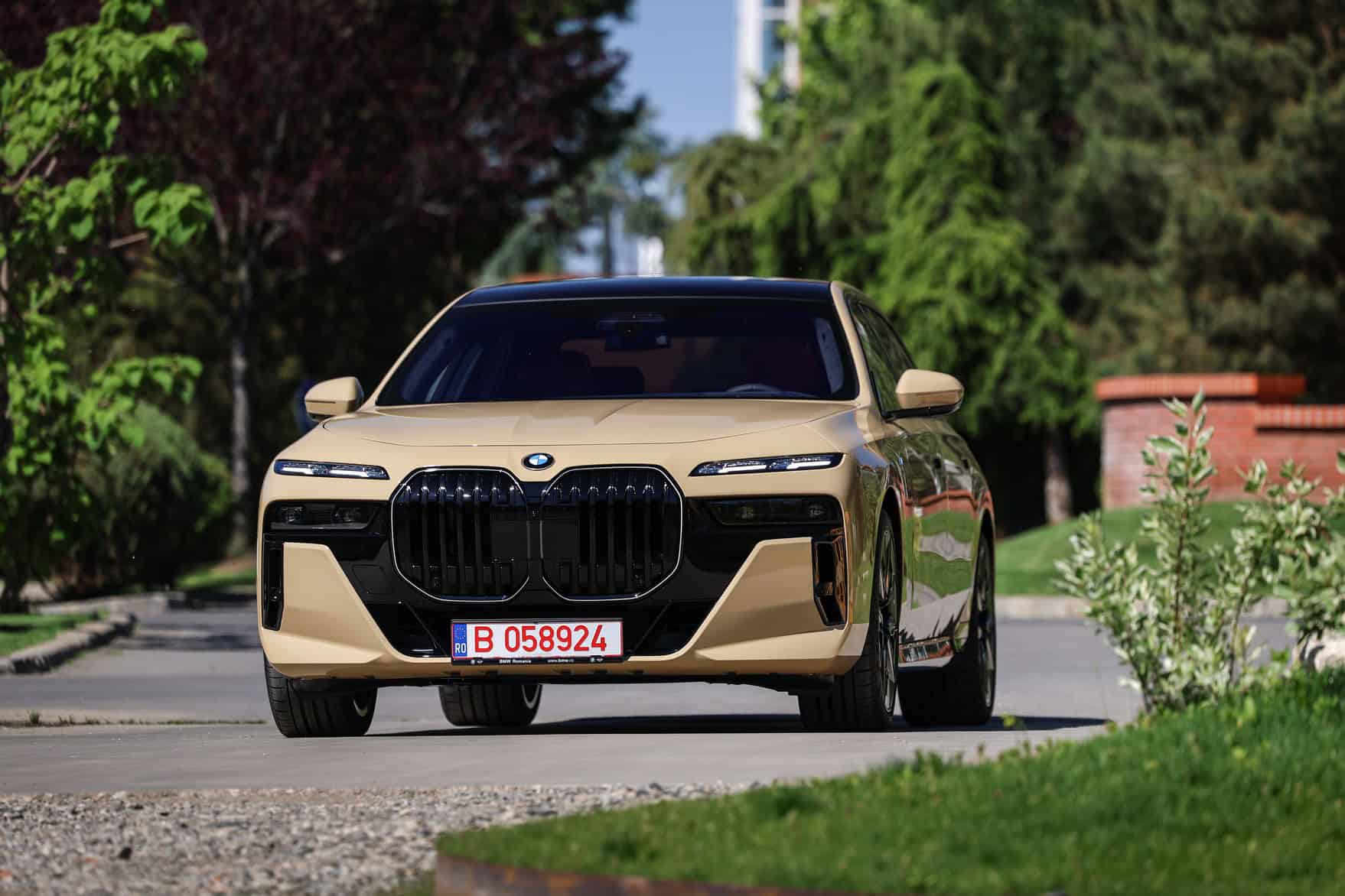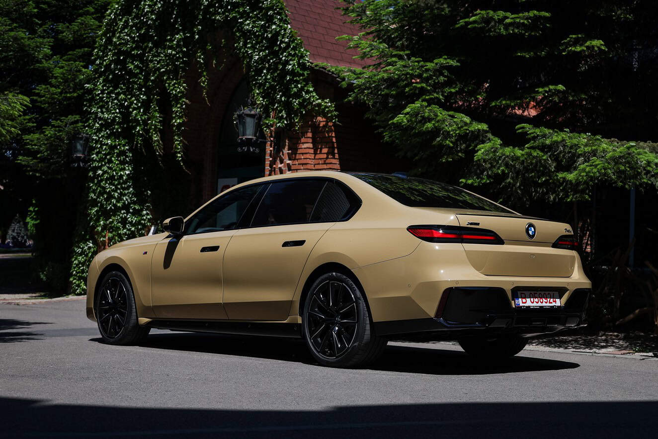 The beige/cream-like shade is contrasted by black body accents from the M Sport Pro Package, a €3,792 option in Romania. As for the wheels, the two-tone “909 M” set measures a stately 21 inches. It’s a lot to take in, but then again, even a standard 7 Series doesn’t exactly blend into the background.