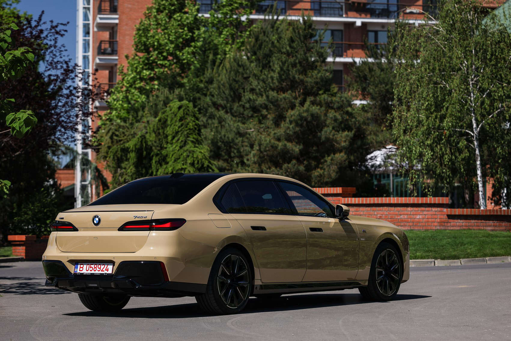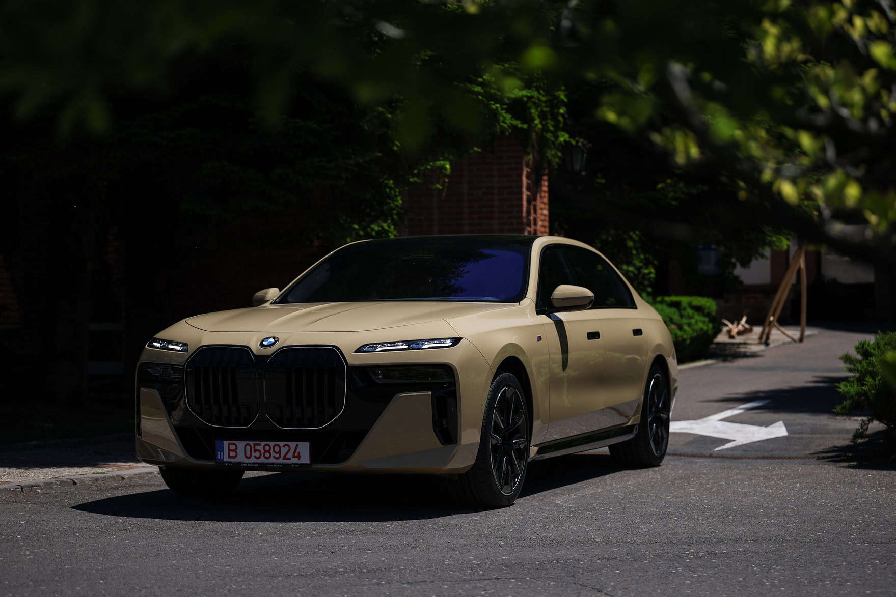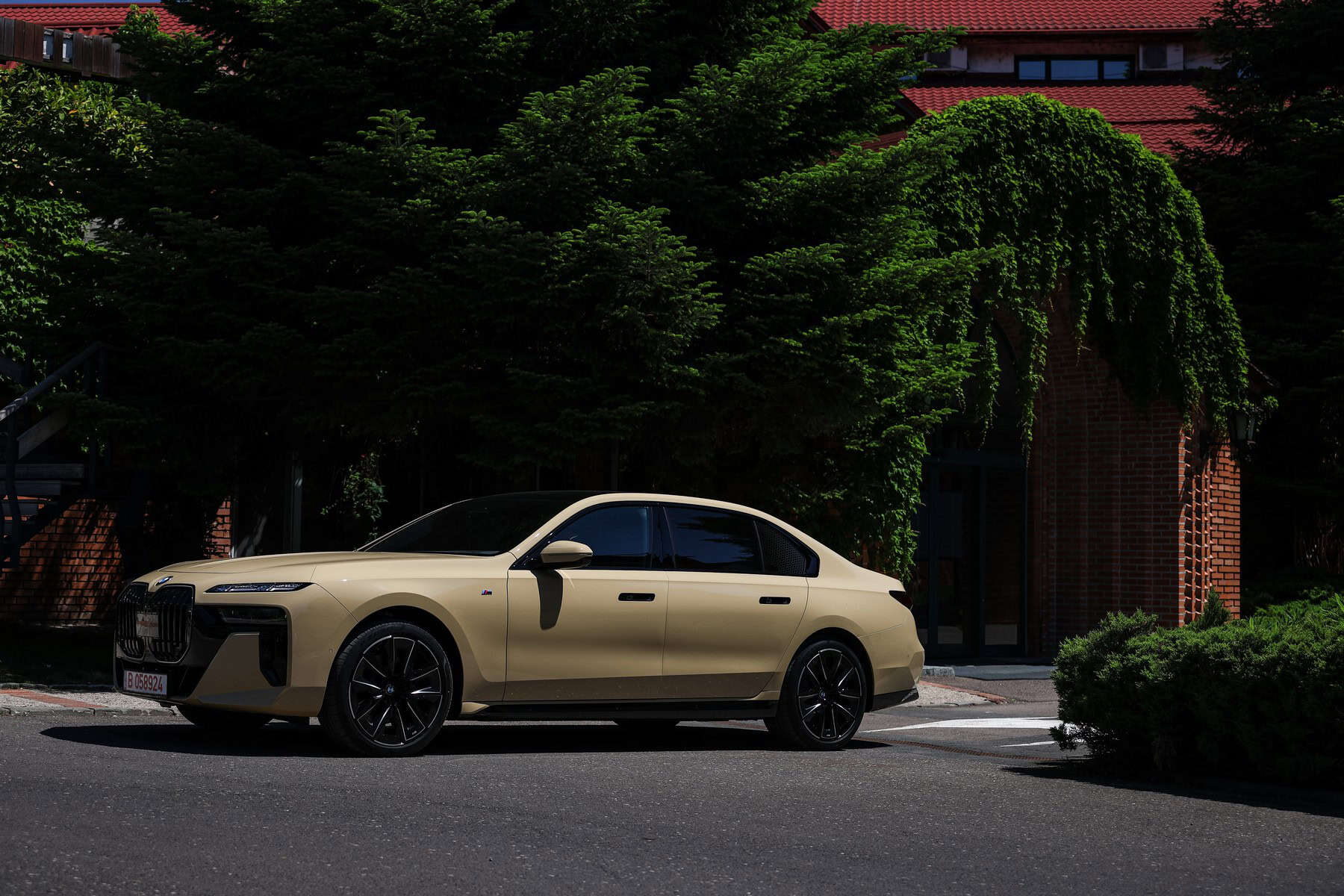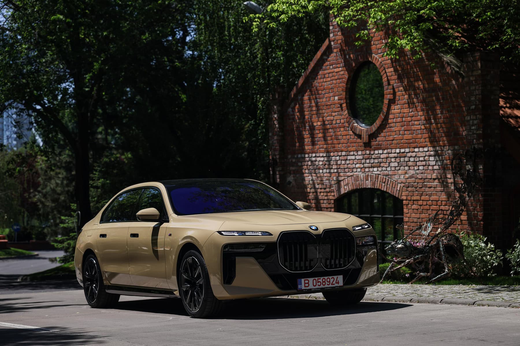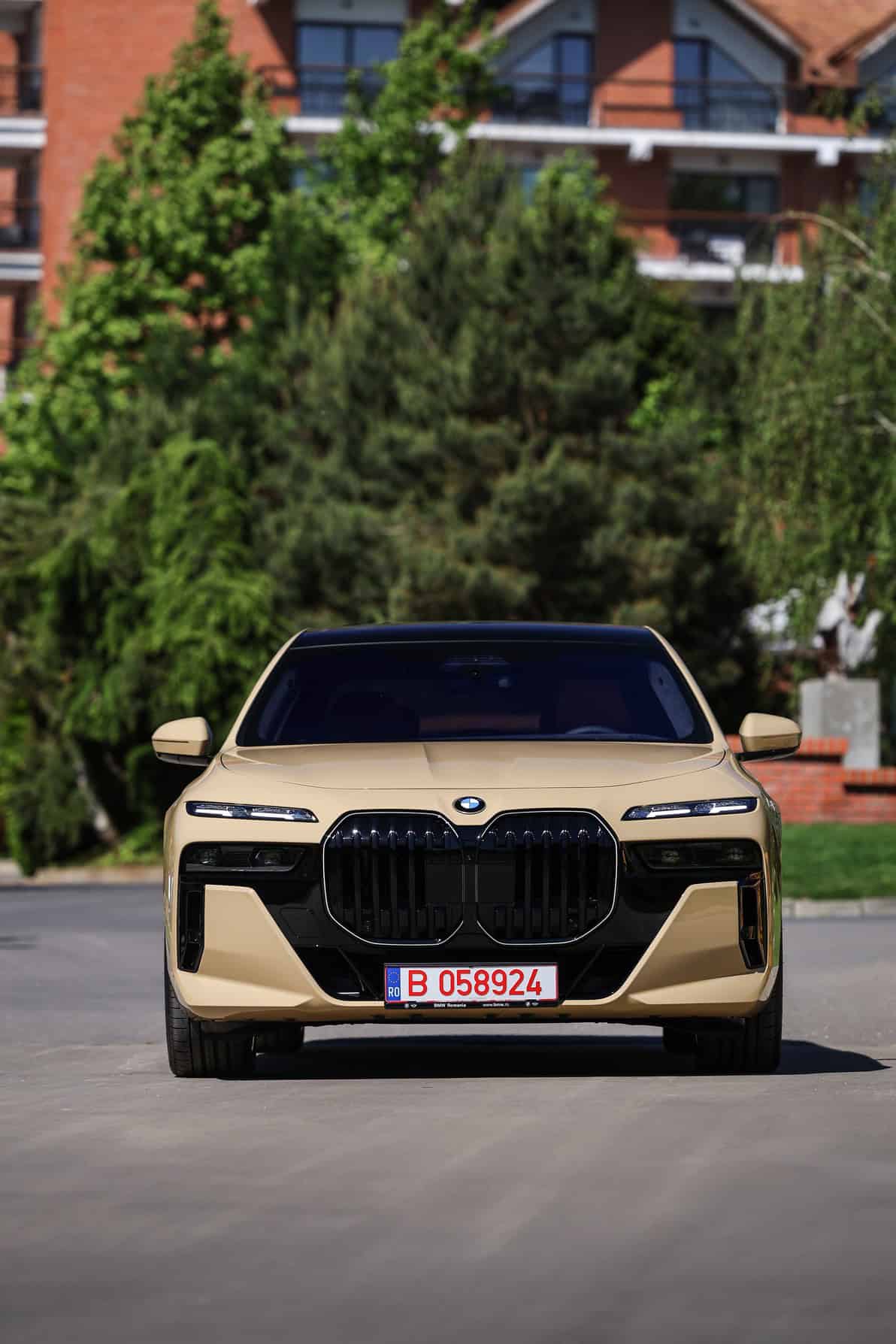 The beige/cream-like shade is contrasted by black body accents from the M Sport Pro Package, a €3,792 option in Romania. As for the wheels, the two-tone “909 M” set measures a stately 21 inches. It’s a lot to take in, but then again, even a standard 7 Series doesn’t exactly blend into the background.