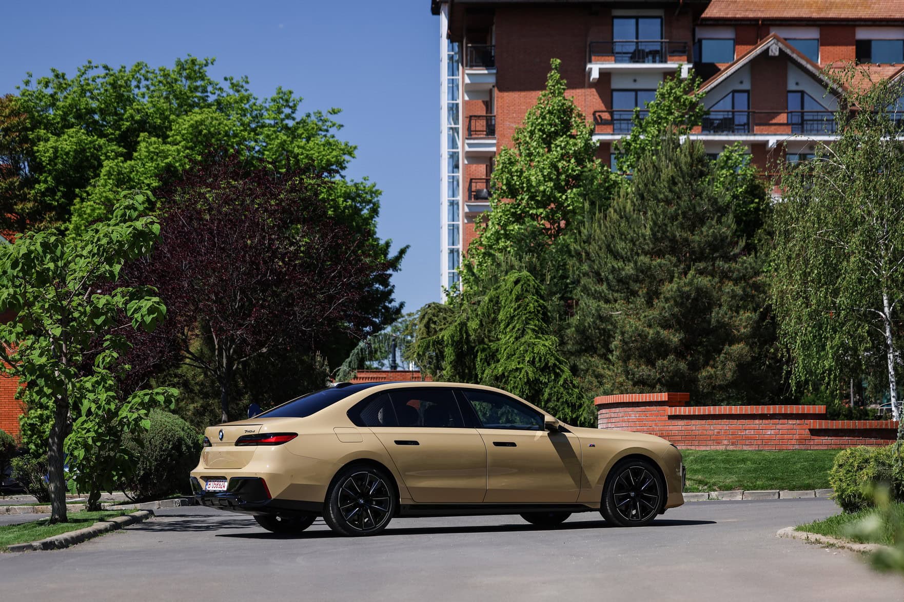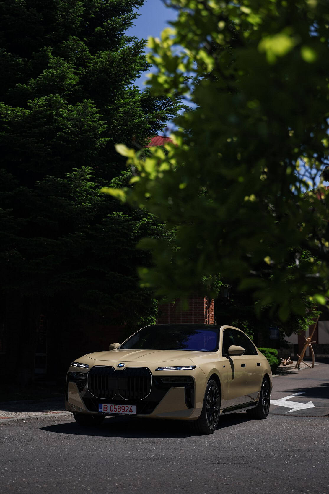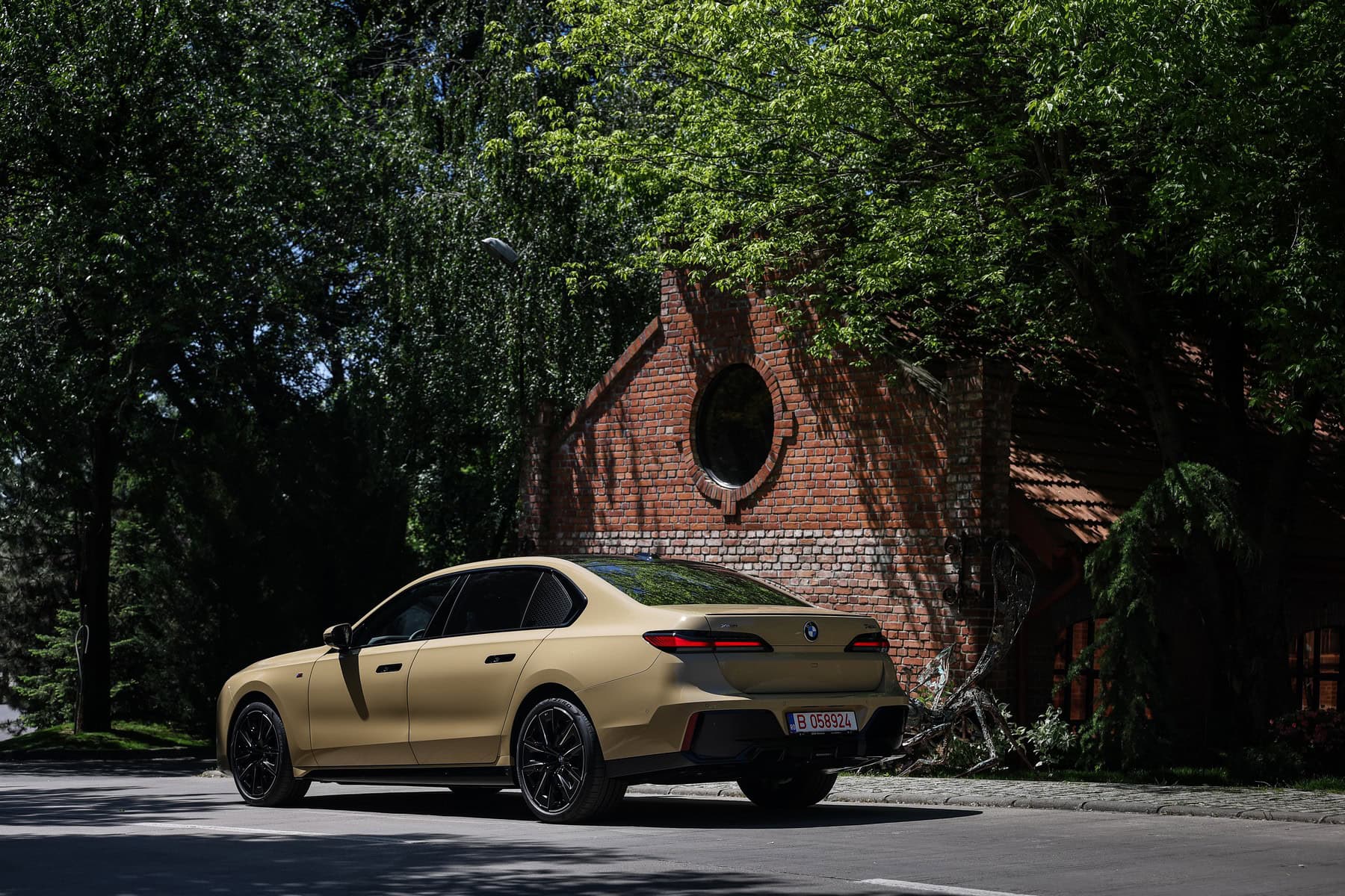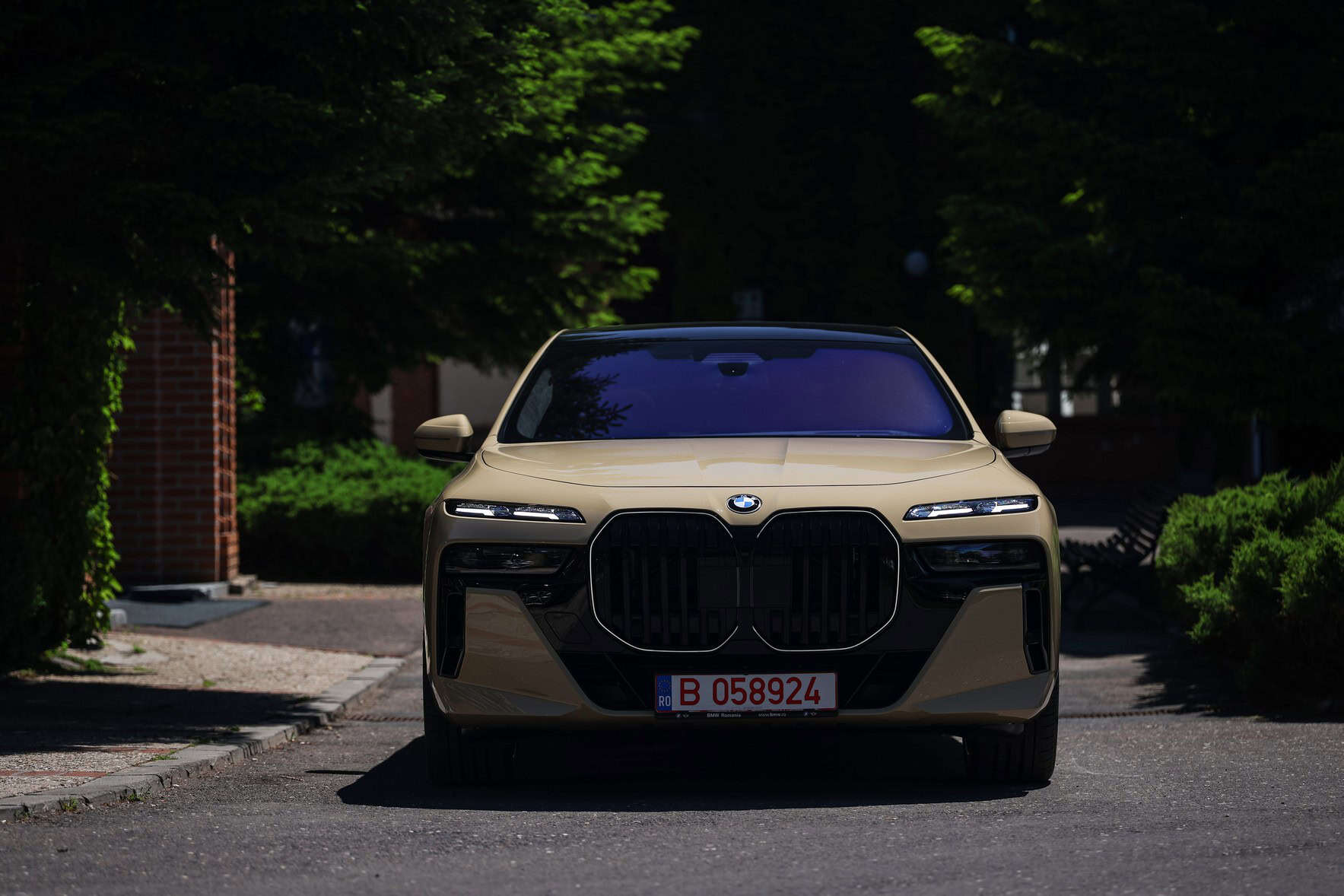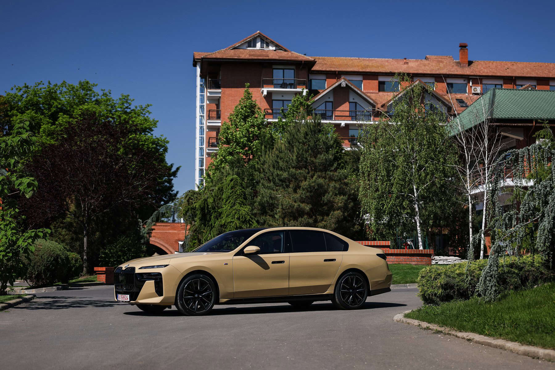 The beige/cream-like shade is contrasted by black body accents from the M Sport Pro Package, a €3,792 option in Romania. As for the wheels, the two-tone “909 M” set measures a stately 21 inches. It’s a lot to take in, but then again, even a standard 7 Series doesn’t exactly blend into the background.
