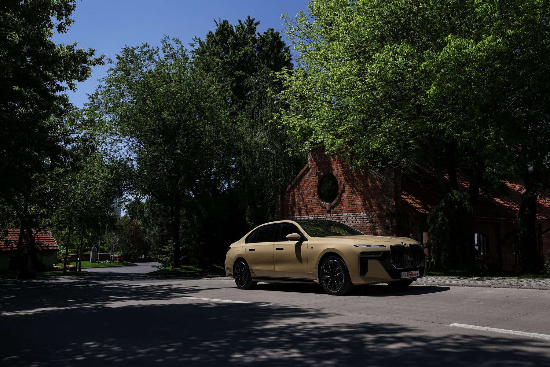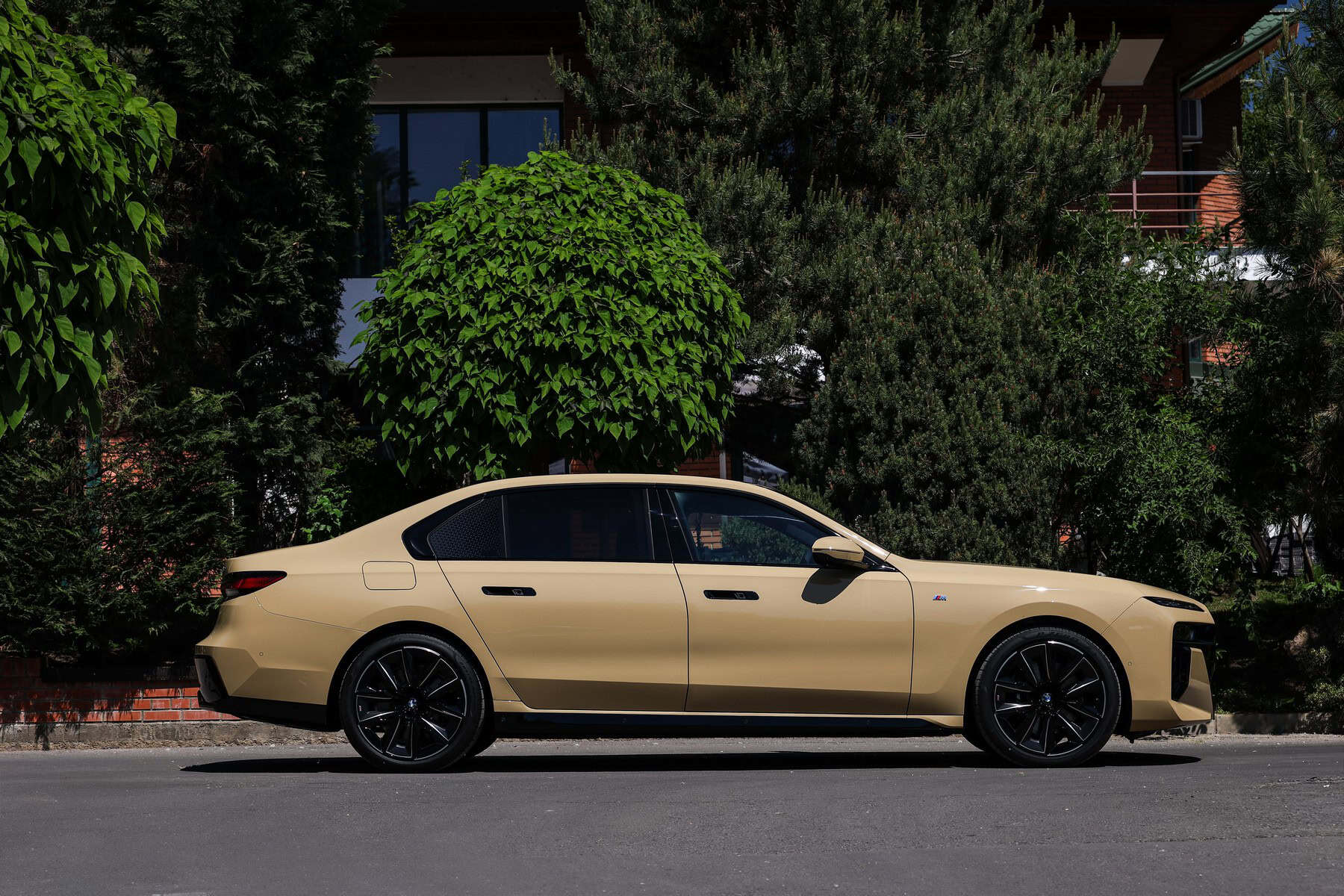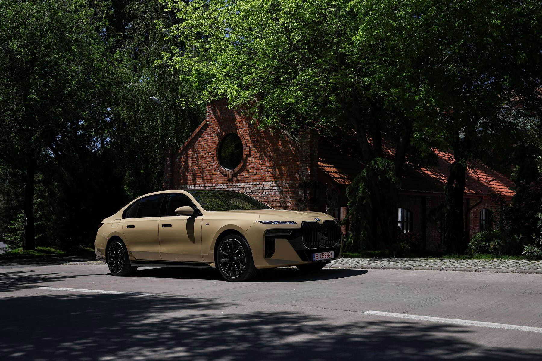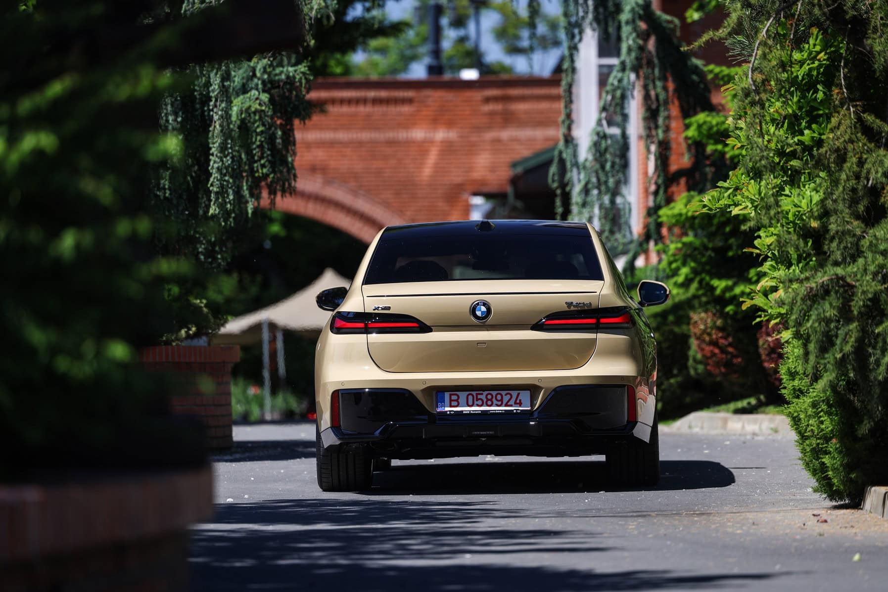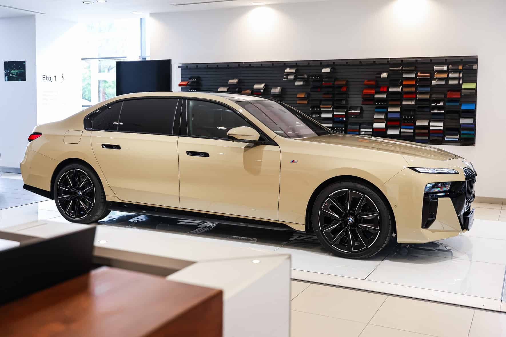 The beige/cream-like shade is contrasted by black body accents from the M Sport Pro Package, a €3,792 option in Romania. As for the wheels, the two-tone “909 M” set measures a stately 21 inches. It’s a lot to take in, but then again, even a standard 7 Series doesn’t exactly blend into the background.