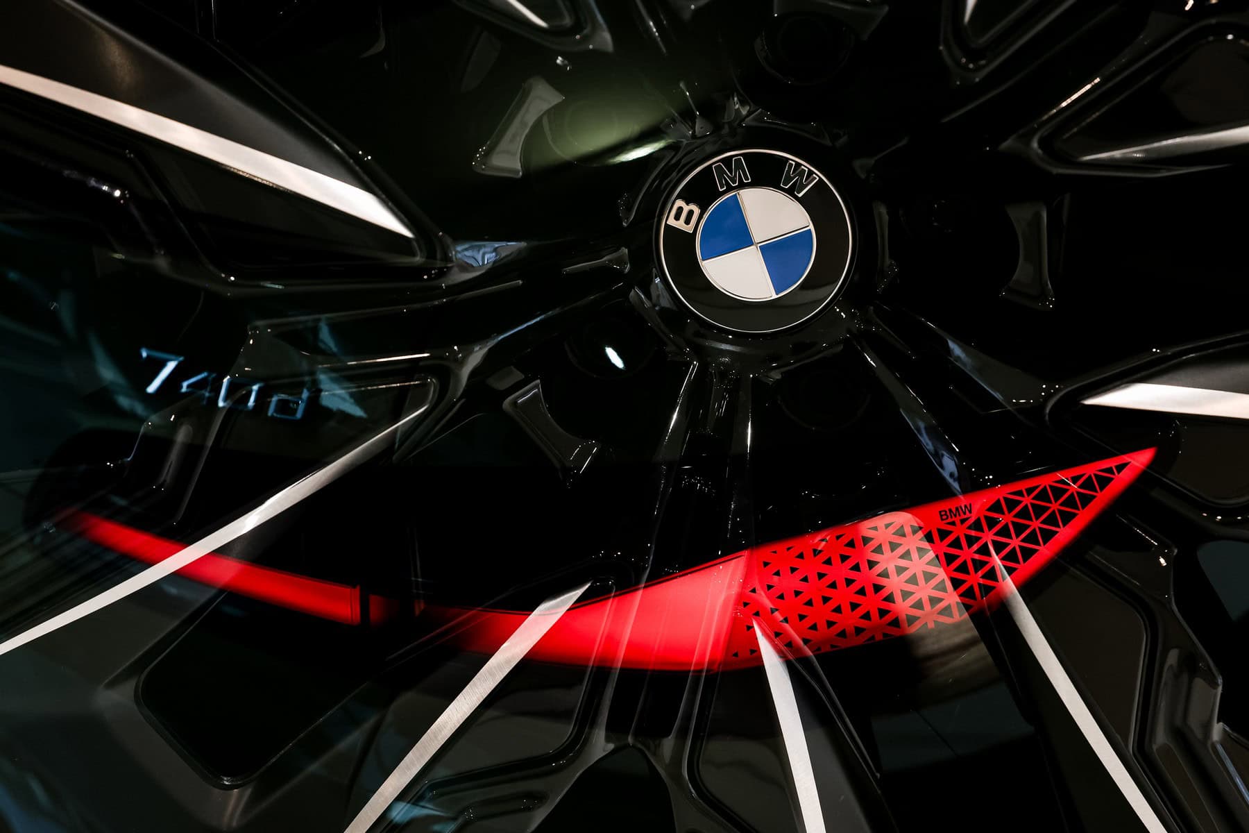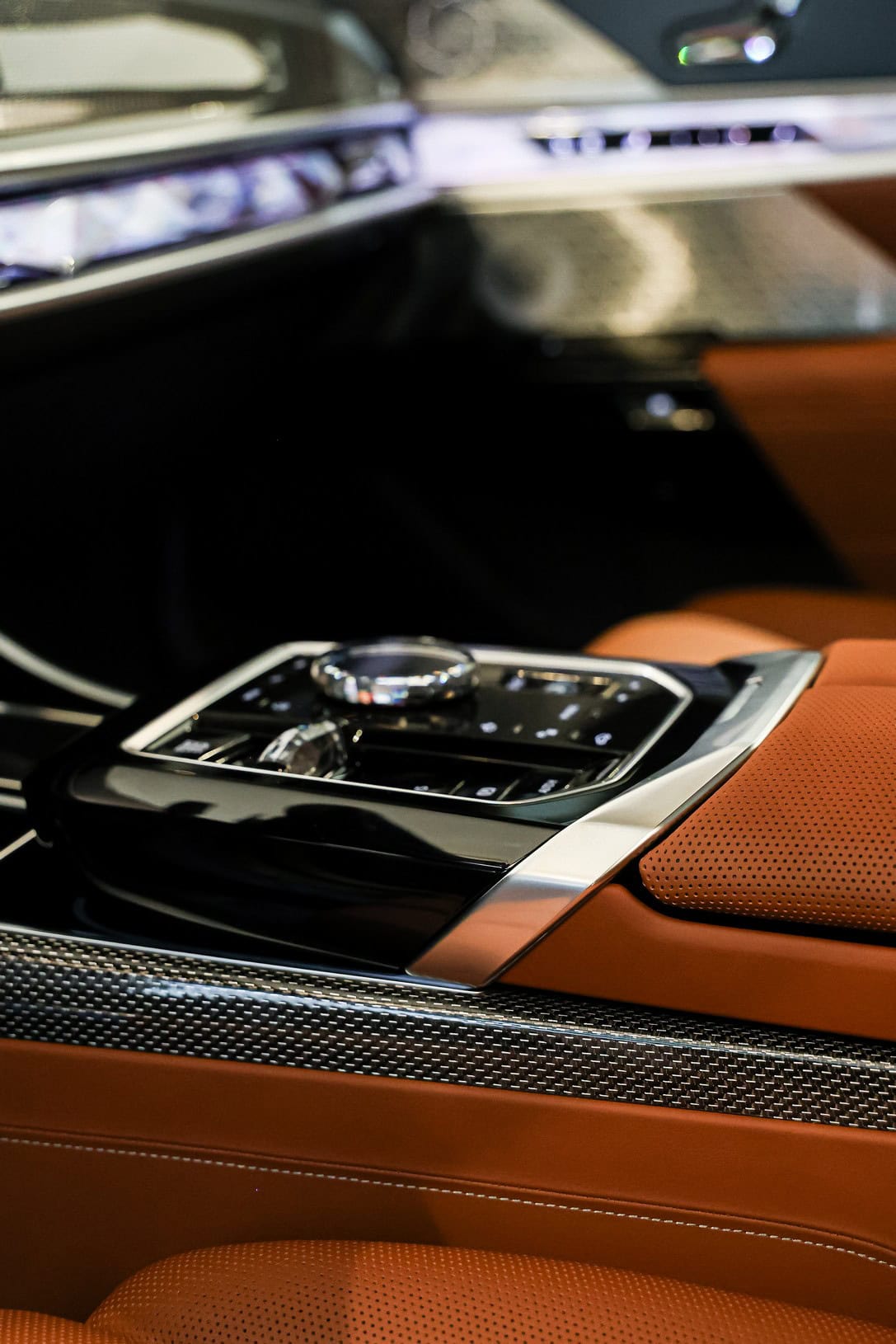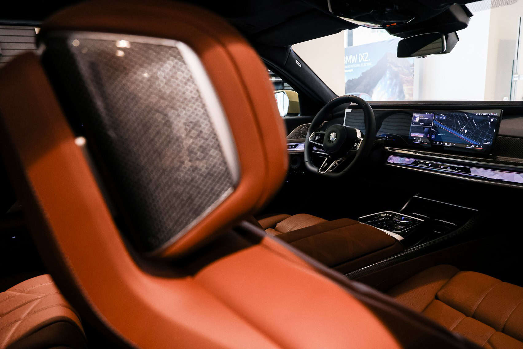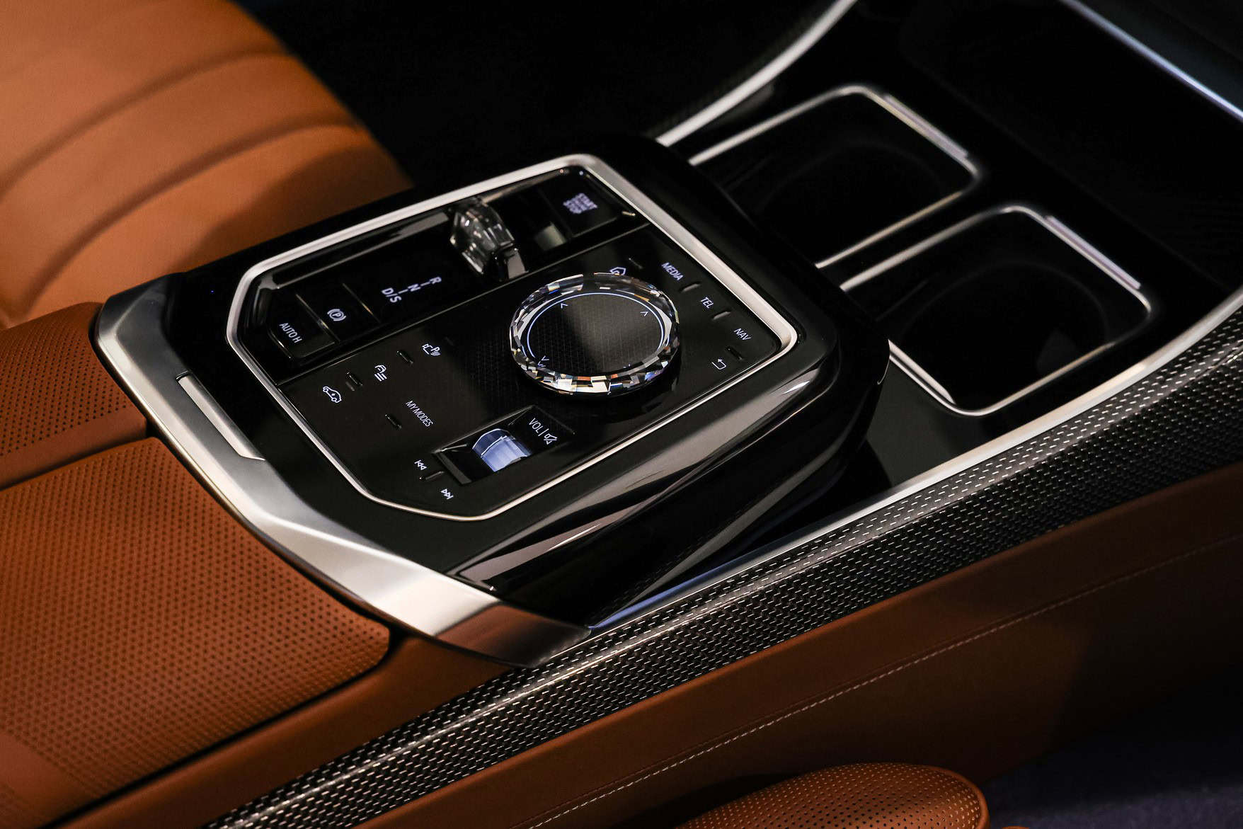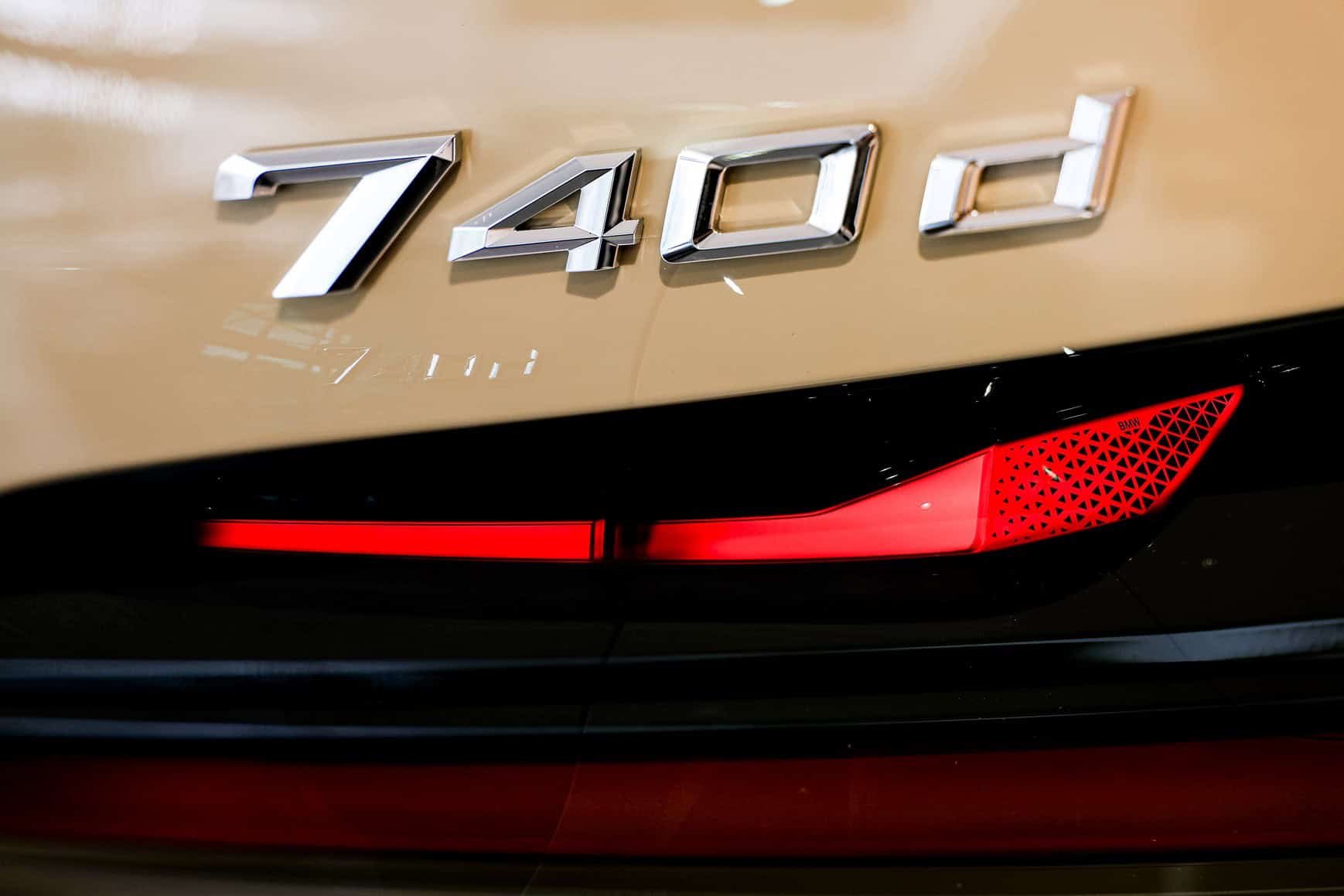 While BMW highlights the new paint job, the interior is also far from standard. This 740d is equipped with Tartufo Merino leather from the Individual catalog, paired with carbon fiber trim. It also features the CraftedClarity package, which is BMW’s marketing term for a crystal-like finish on elements such as the iDrive rotary knob and gear selector.