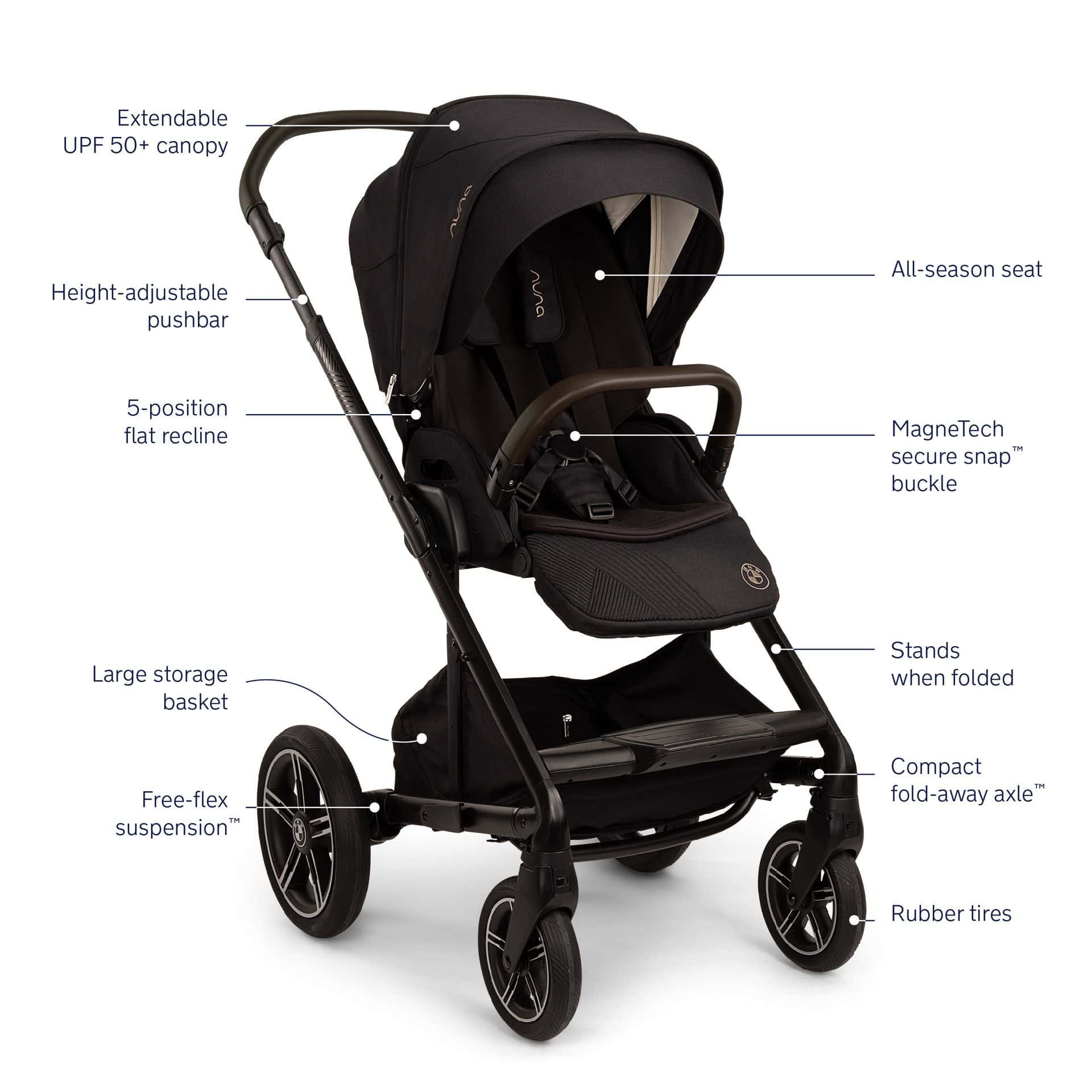 First impressions? It’s well-built. The stroller feels sturdy without being bulky, and the folding mechanism is satisfyingly smooth. The seat reclines fully flat, which is ideal for newborn naps on the go, and it converts between forward- and parent-facing setups without much fuss. Nuna’s magnetic buckle is clever and genuinely helpful when wrangling a squirming child.