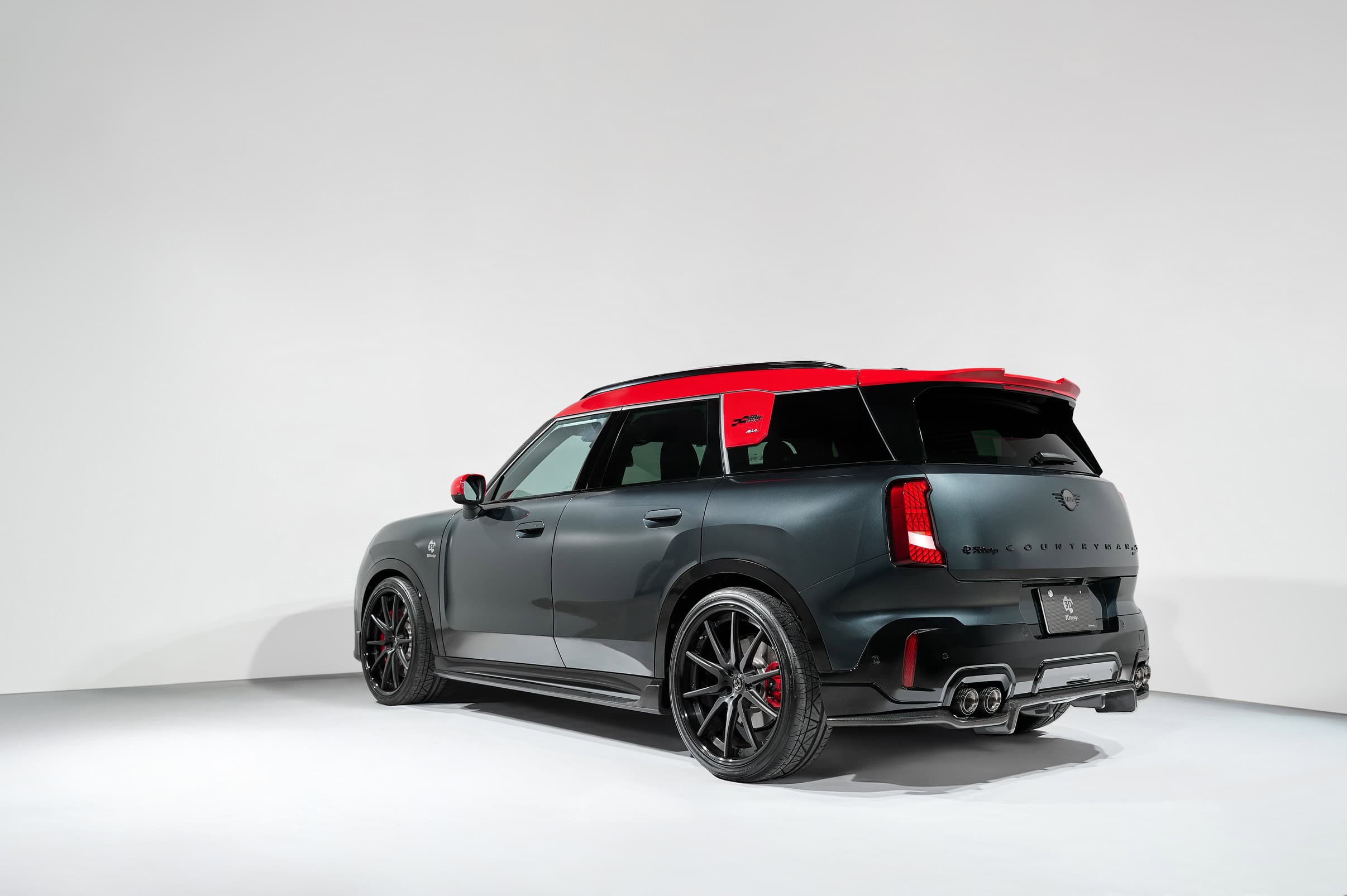Elsewhere, 3D Design has created a roof-edge spoiler made from polyurethane, extending beyond the OEM piece to heighten the sporty appearance. While MINI offers several 19- and 20-inch wheels, the JCW takes it a step further with a custom 21-inch set. Yes, those are 21-inch wheels on a MINI, and surprisingly, they don’t look overkill. Lowering springs have dropped the ride height by 25 millimeters (one inch), giving the Countryman the stance of an oversized hot hatch.