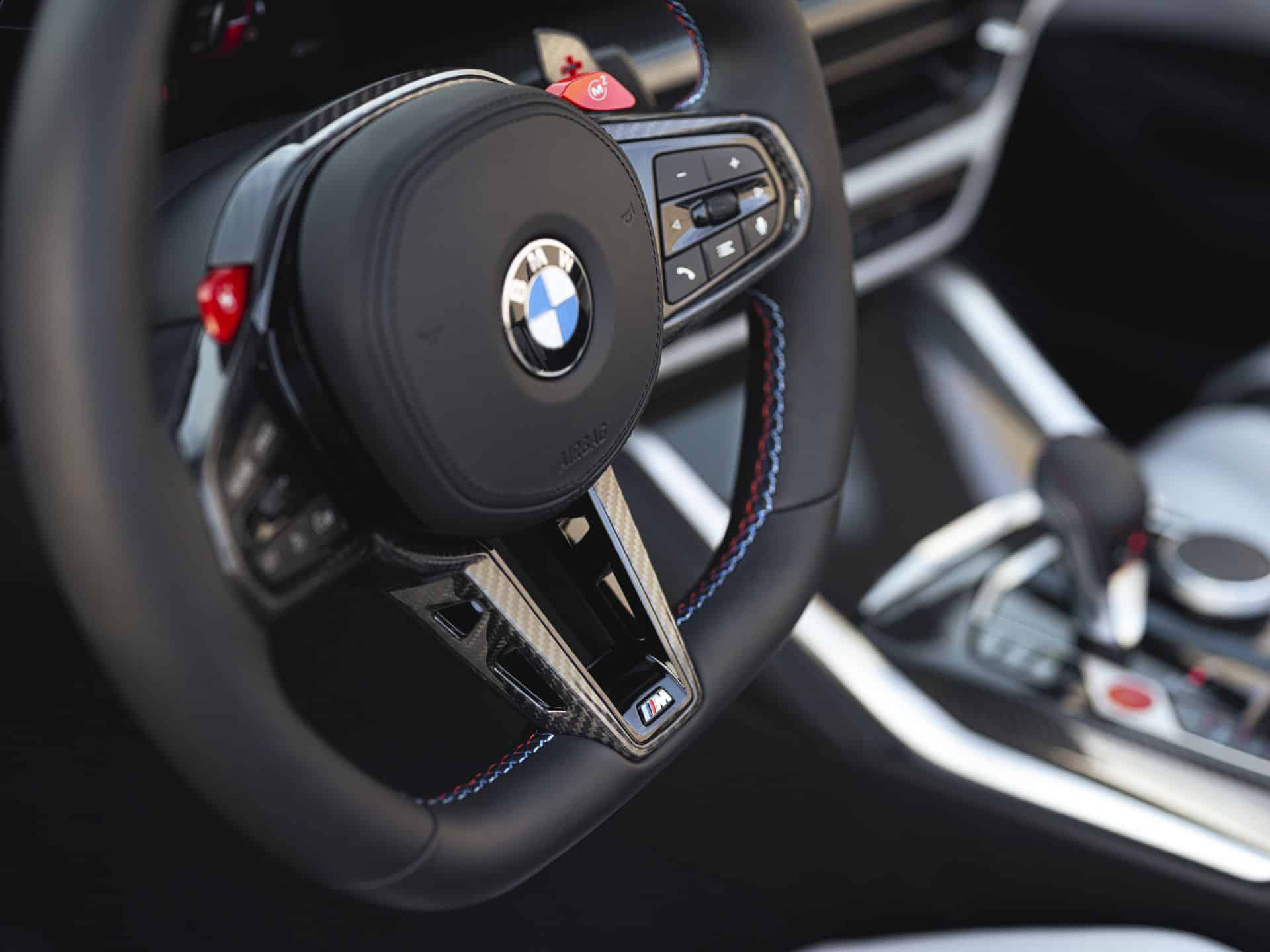 While BMW did bring some small changes to the BMW M4 last year, the car goes untouched for the newest model year. Bucket seats or regular sport chairs are available, although the former is a bit of a questionable choice if you’re daily driving the car. Sit it in them first, for our sake. Extended Merino leather comes standard, and Full leather adds $2,550 to the price tag for additional leather padding the lower dashboard and under the steering wheel. A moonroof remains a zero-cost option that replaces the standard carbon fiber roof.