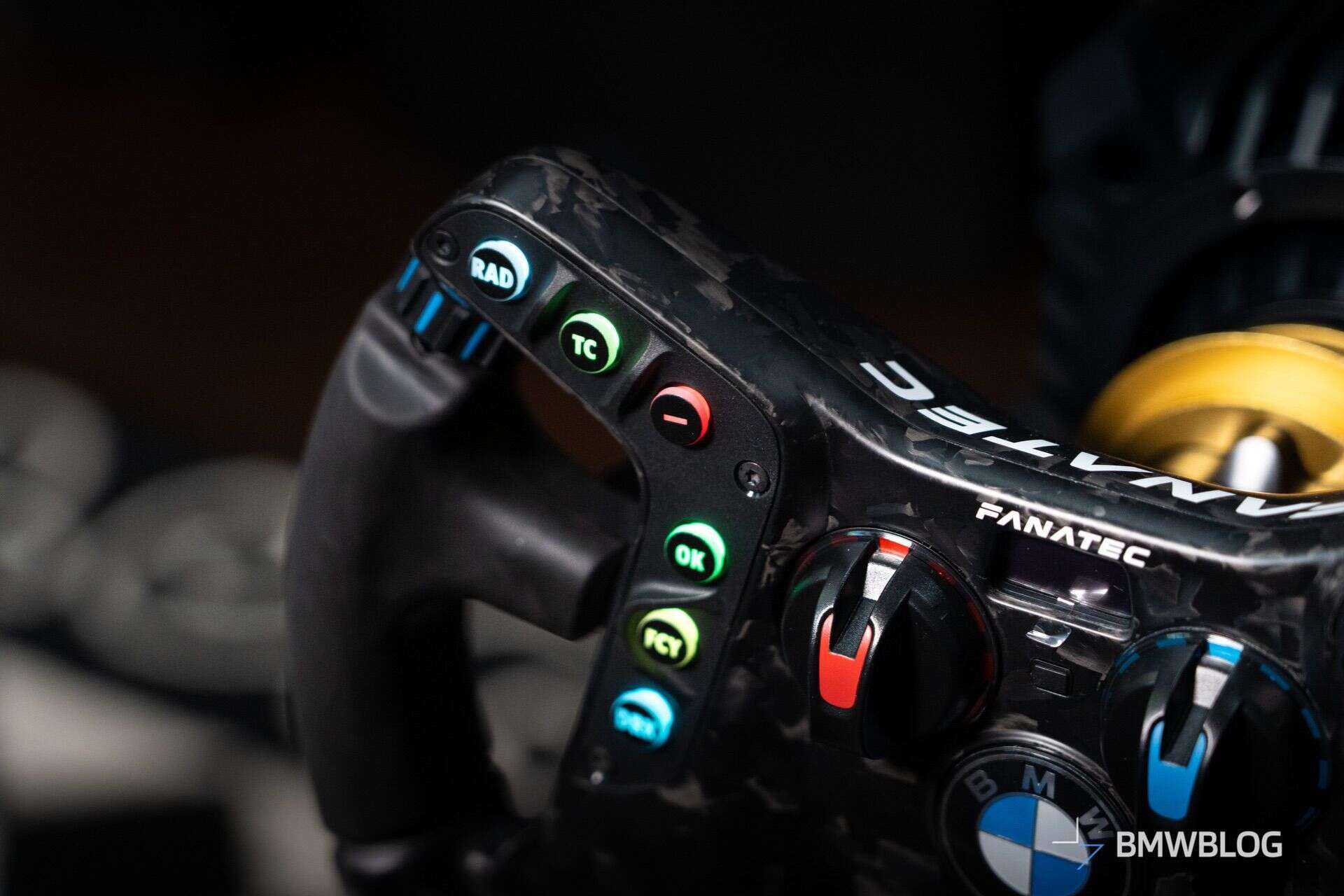 The Fanatec Podium BMW M4 GT3 wheel offers racecar-grade carbon build, multiple buttons and encoders, and magnetic paddles—bringing authenticity and pro‑level control to your man‑cave cockpit.