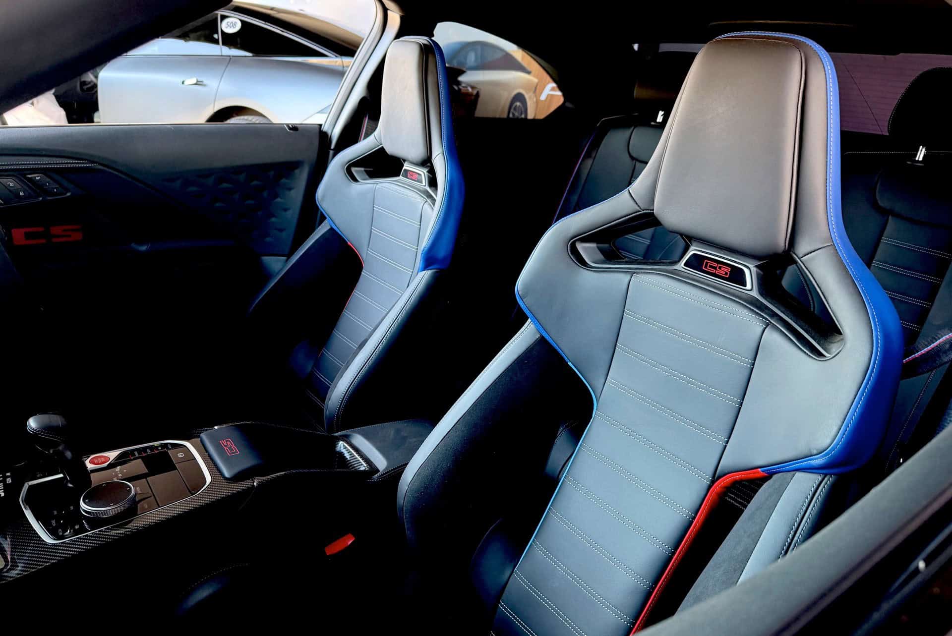 Although subtle, the more aggressive kidney grille is exclusive to the CS. The same applies to the redesigned front air intakes and the carbon fiber rear diffuser. The quad exhaust tips are available only in matte black. However, there’s a CS-specific M Performance silencer system with carbon and titanium tailpipe trims.