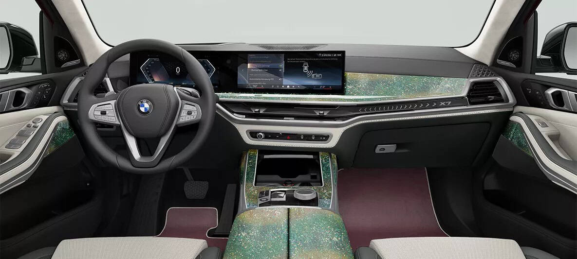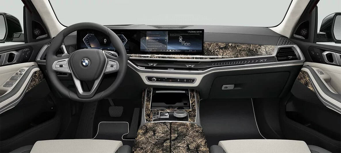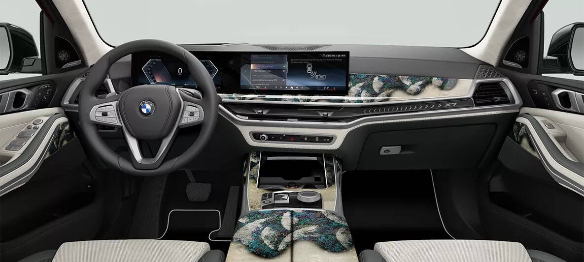 That extra fee offers more than just a dual-tone paint job. Echoing the Nishiki Lounge concept, this limited-run X7 comes with exclusive trim elements never before seen on a production BMW. Buyers can choose from 12 traditional patterns, each incorporating foil decoration across the dashboard, center console, and door panels.