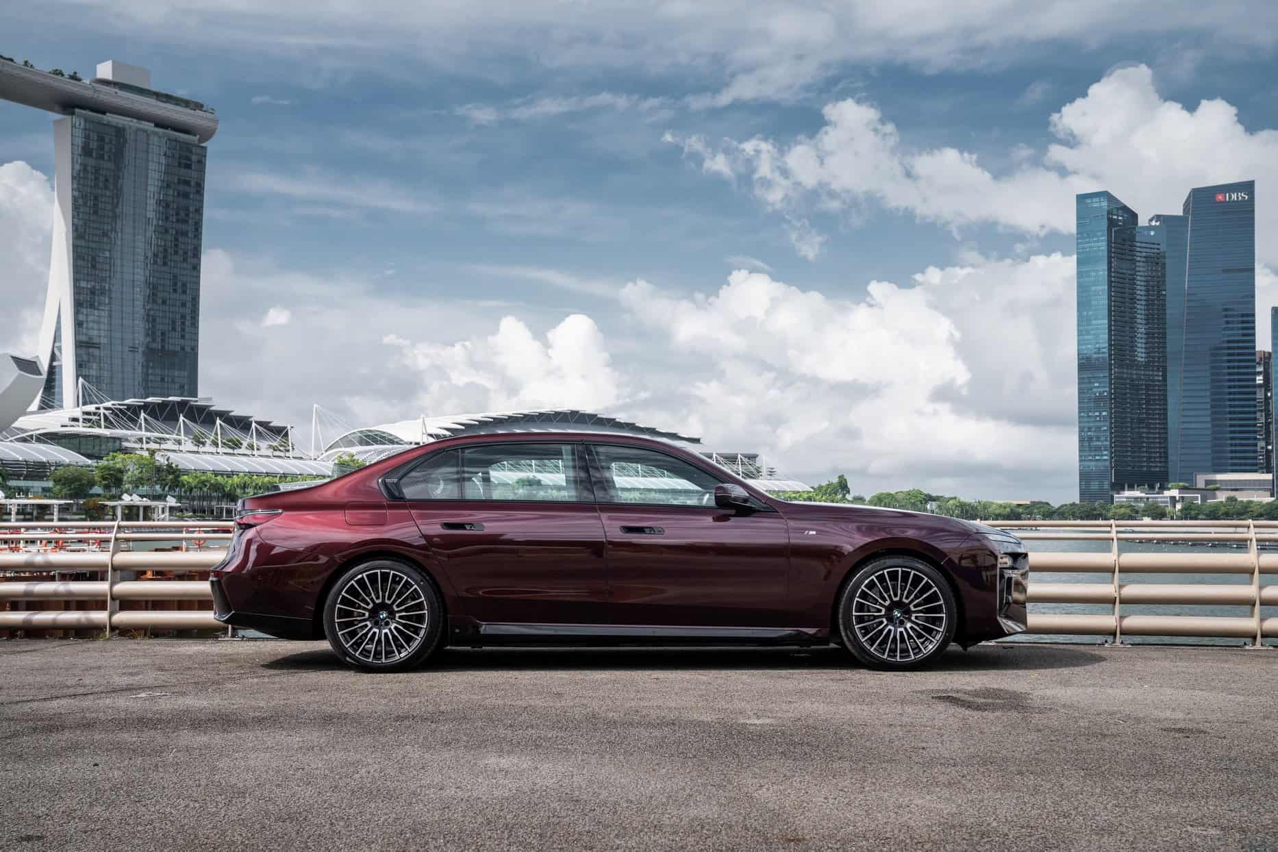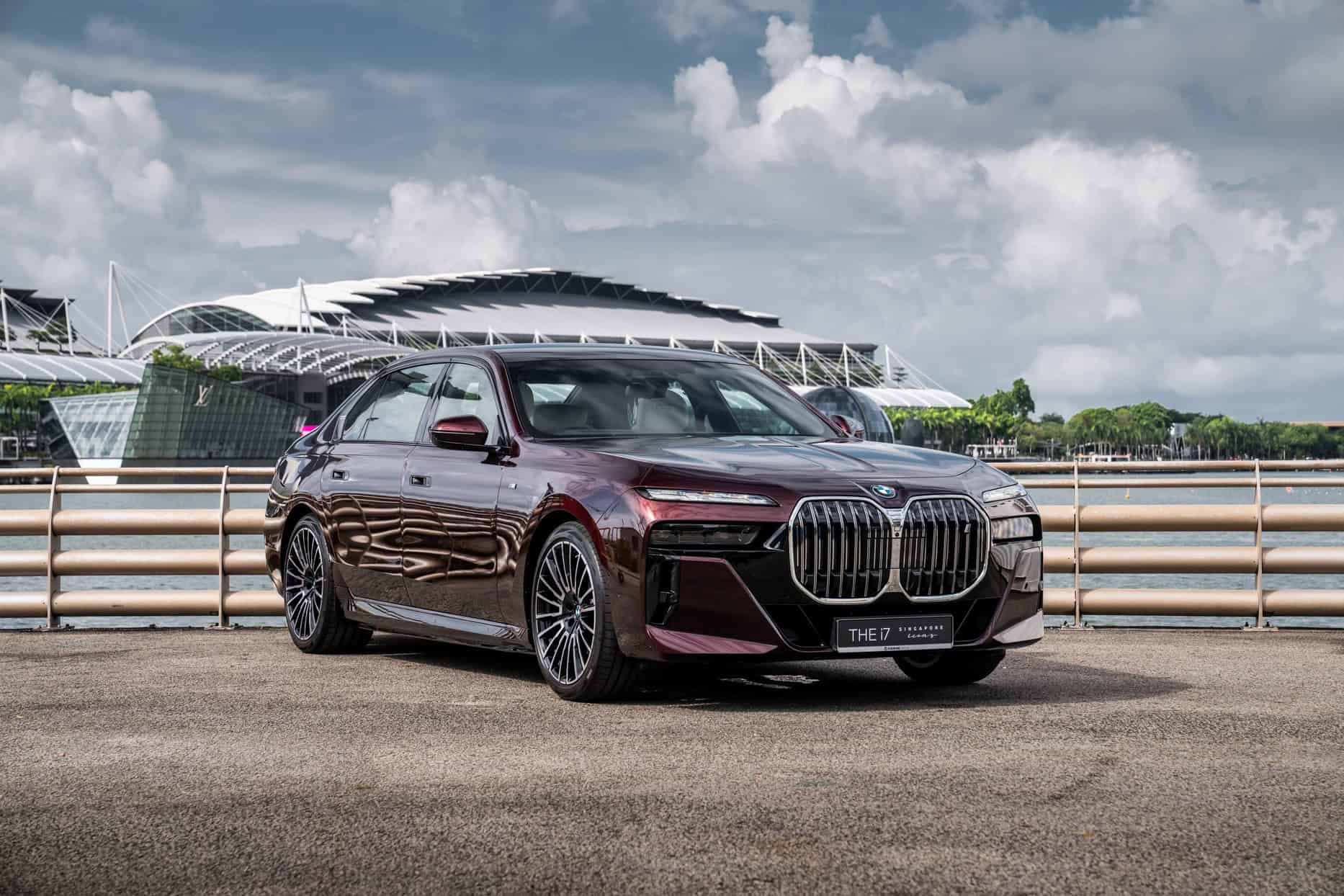 BMW Singapore recently teased us with a one-off 7 Series, and now it’s ready to show the special G70. Based on the fully electric i7 in rear-wheel-drive, single-motor form, this eDrive50 features an Individual paint finish. Borrowed from Rolls-Royce’s color palette, Madeira Red Metallic carries the internal codename “R20.” It has been available on BMWs for a while, but we’ve rarely seen it applied to an actual car.
