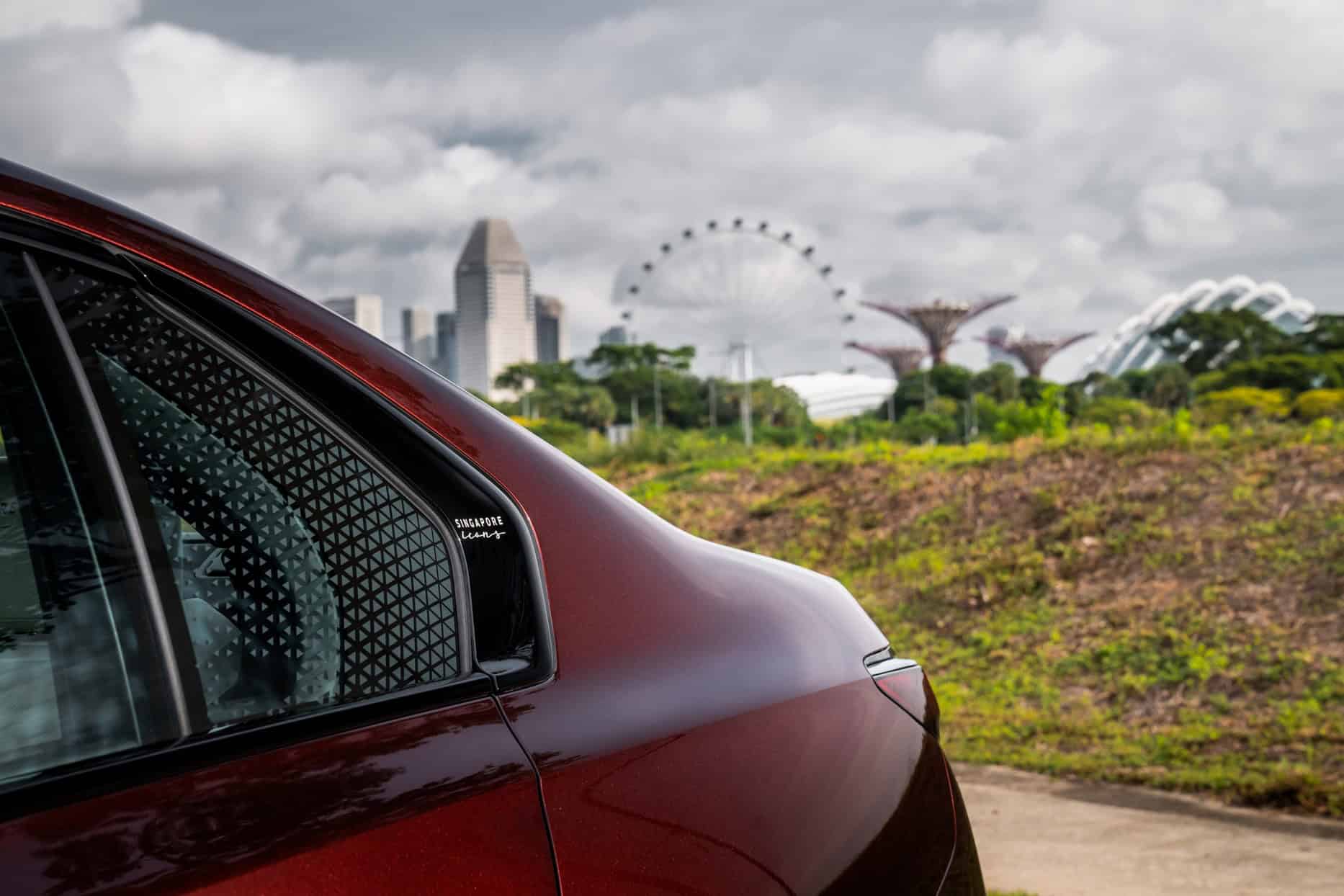 Look closer and you’ll notice a Singapore Icons logo laser-etched into the Hofmeister kink. Much like the body color, the 21-inch wheels are also sourced from the Individual catalog. The two-tone alloys (codenamed 1055) feature an eye-catching 20-spoke design and a diamond-cut finish.