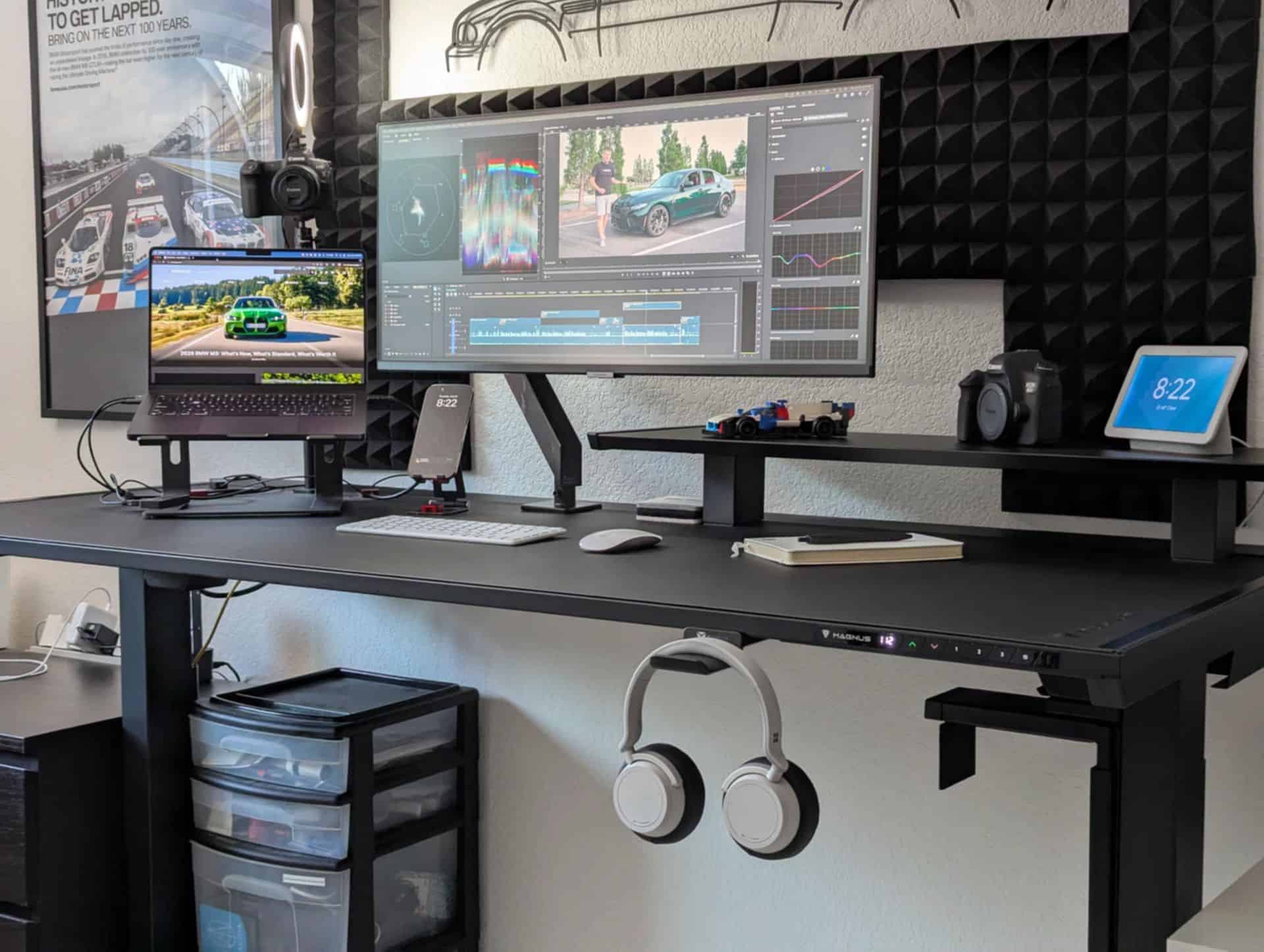 One of our constant challenges as video creators is optimizing our editing space. Editing isn’t just about power—it’s about posture, comfort, screen space, and adjustability. We needed a setup that could support the long hours spent crafting car reviews, interviews, and recaps from events like Pebble Beach or CES. That’s where the Secretlab MAGNUS Pro standing desk and MAGNUS Monitor Arm (Heavy Arm Edition) came in.