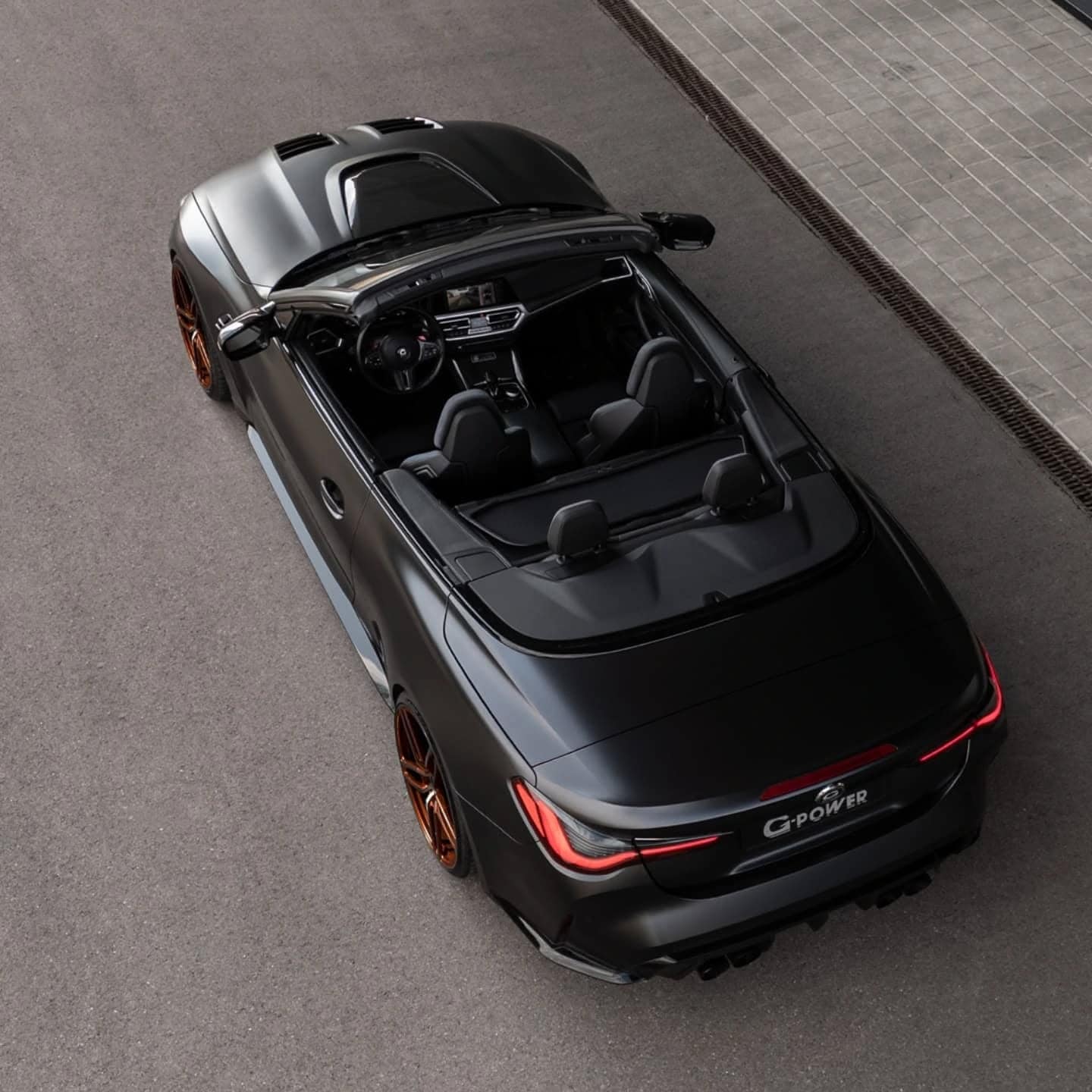 There’s something raw about a fast car with no roof. G-Power’s latest build takes the BMW M4 Convertible and turns it into something far more serious: the G4M Bi-Turbo Convertible, a machine with supercar numbers and the ability to enjoy them under open skies. The visual upgrades are sharp but not overdone. A GP-VENTURI carbon hood, GP-SHURIKEN carbon grille and bumper corners, and a set of GP-HURRICANE RR forged wheels set it apart without shouting. Other add-ons—like splitters, wings, or a retrimmed interior—are available, but the real transformation is under the hood.