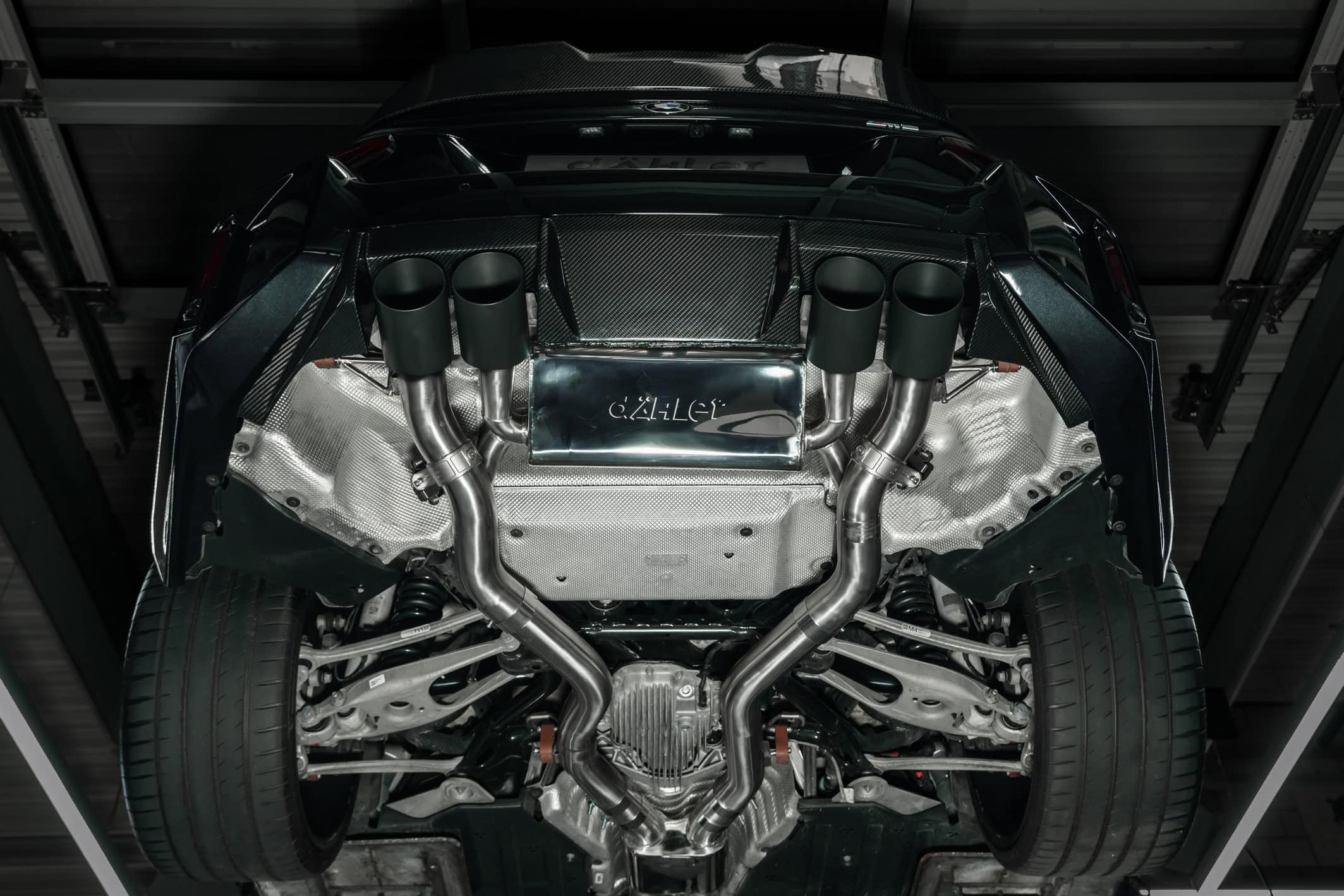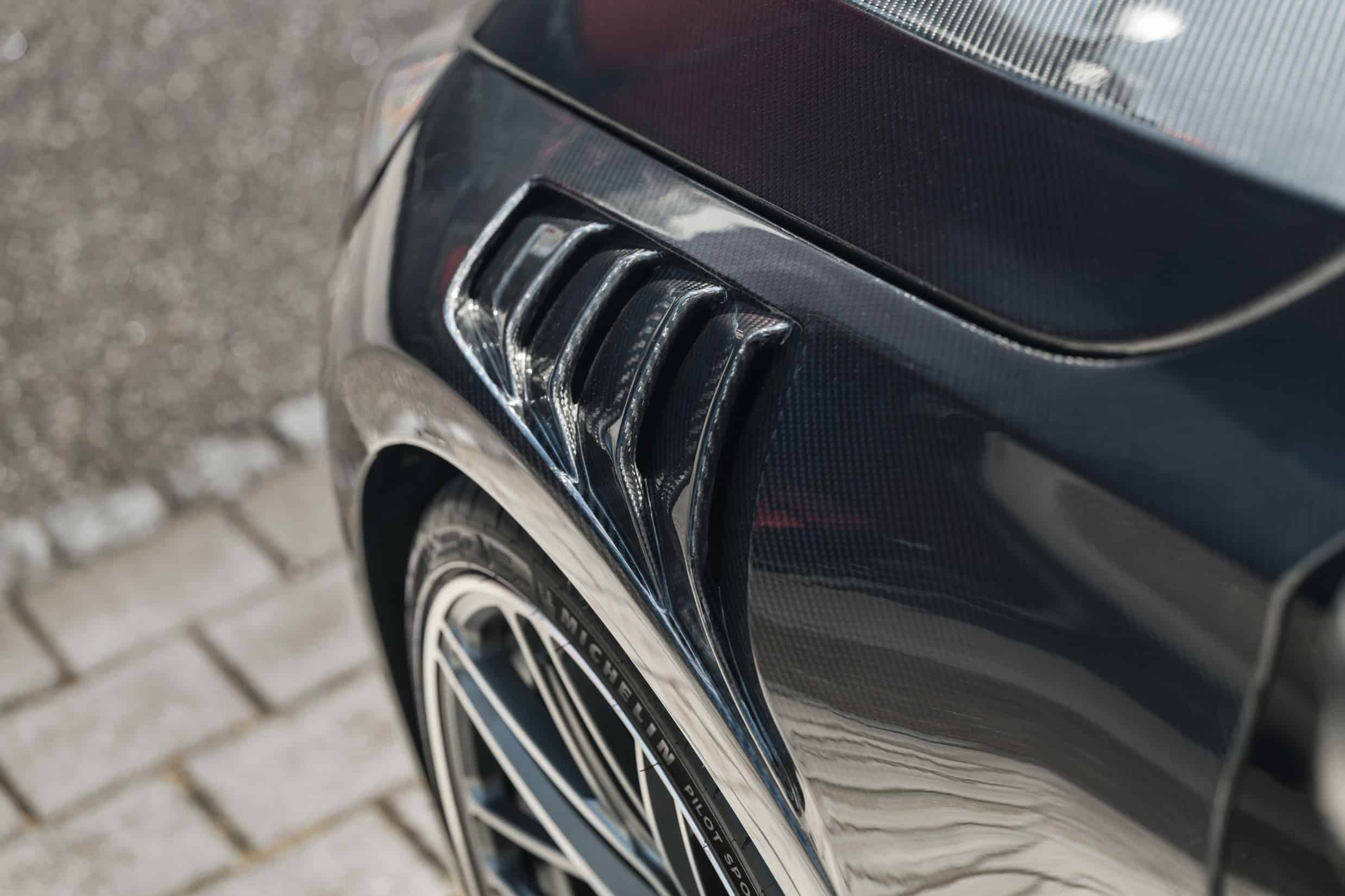 But dAHLer didn’t stop there. Carbon fiber extends to the vented front fenders. It continues throughout a wider body package, which includes a front spoiler add-on, a large rear wing, a carbon kidney grille, and a matching rear diffuser.