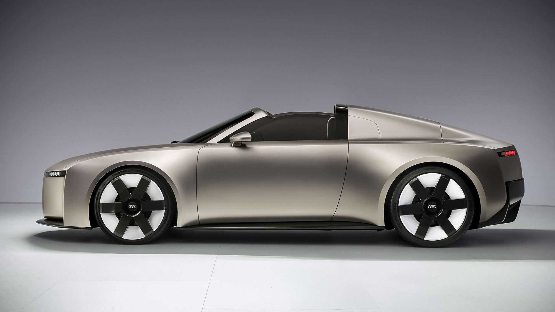 Audi is coy on technical specifications, confirming only that the concept is purely electric. There are no plans for a combustion engine, whether up front or behind the seats. The Concept C does, however, have mid-engine proportions reminiscent of the R8 rather than the front-engined TT. Size-wise, it seems to slot between the two, raising questions about a possible connection to Porsche’s upcoming electric Boxster and Cayman.