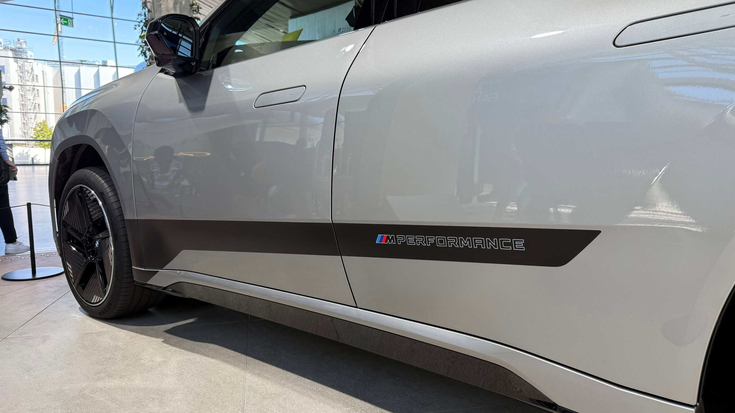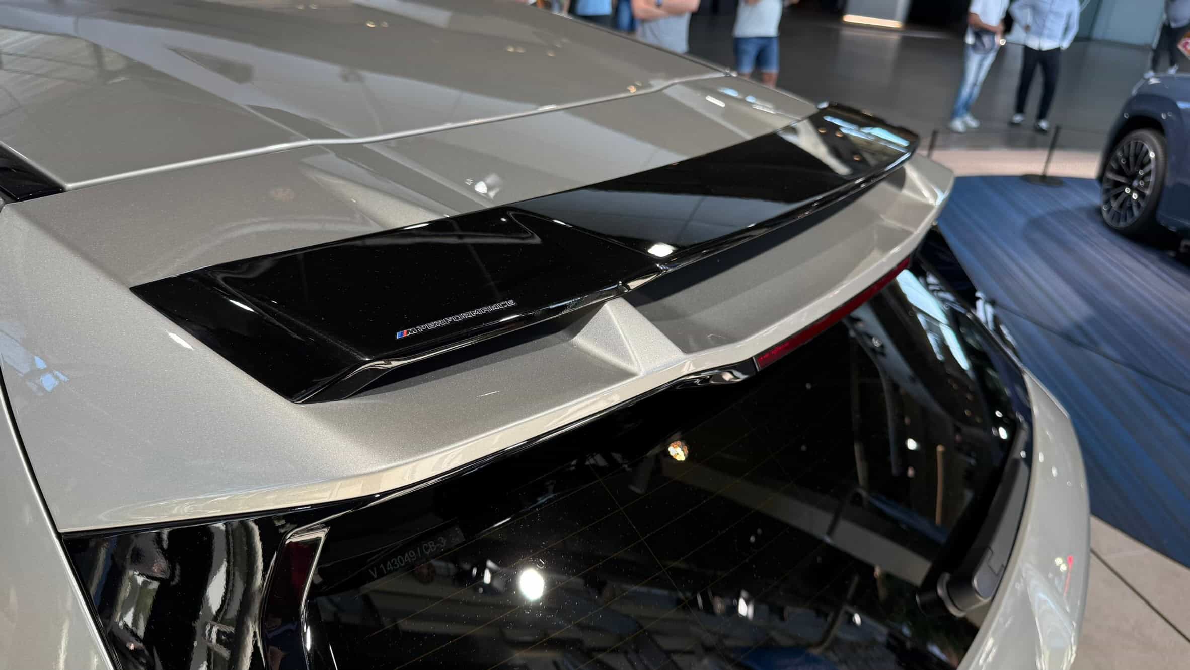 At the back, the diffuser is slightly more pronounced. However, it’s hard to spot the changes against all the glossy black. BMW may be promising a “new era” with the Neue Klasse, ditching chrome for LEDs, but it’s clearly not ready to give up shiny plastic. Case in point: the add-on roof spoiler, finished in gloss black and wearing M Performance branding to ensure bystanders know this isn’t a standard iX3. Completing the look is a matte black decal running along the profile, topped with an M Performance logo to drive the point home.