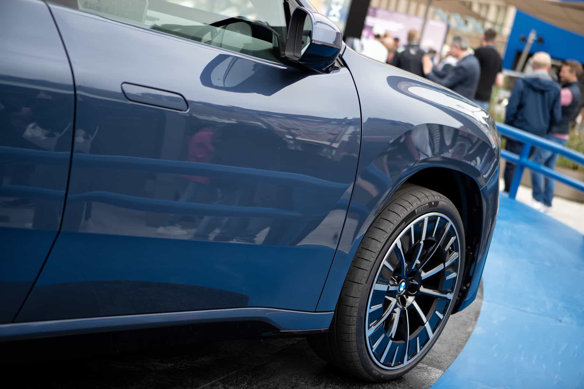 The setting underscored BMW’s ambition for the Neue Klasse. The reduced, more timeless design language introduced by the Neue Klasse platform was on full display, with new retractable door handles, smoother surfacing, and an illuminated interpretation of the kidney grille. In Space Silver, the sharp creases and sculpted lines reflected the classical façades of the square, while Ocean Wave Blue gave the car a more emotional character, shifting tone depending on the angle of the sun or the artificial lighting used in the installation.