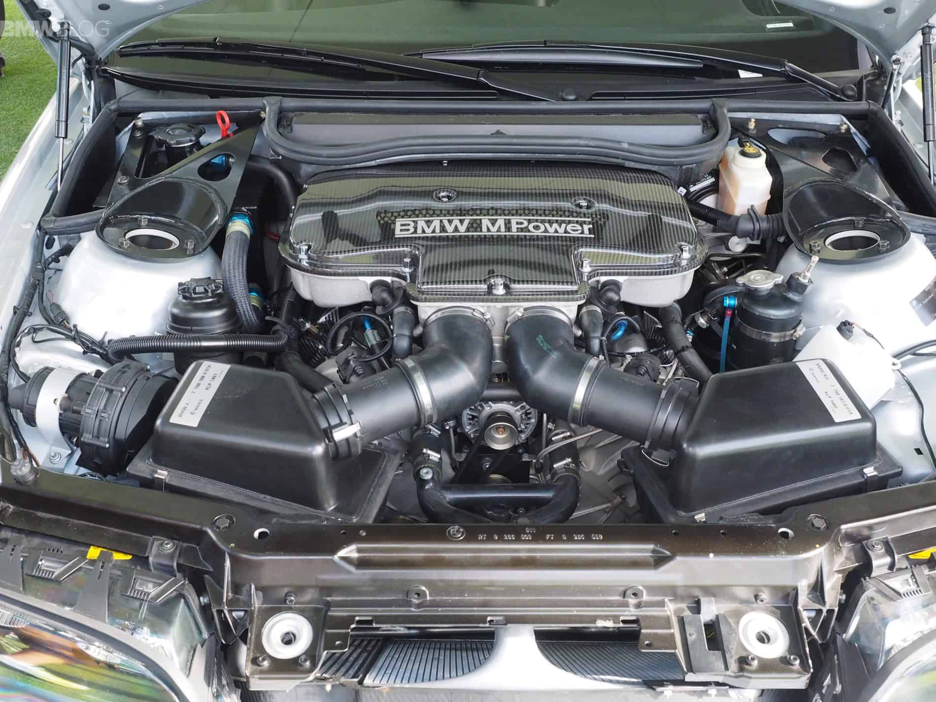 Developed in just 12 months, the M3 GTR stood out from the standard model with a carbon fiber rear wing, trunk lid spoiler, redesigned bumpers, hood vents, and an exposed carbon fiber roof. Its centerpiece was the actual race car engine, albeit in restricted form—the P60B40, a naturally aspirated 4.0-liter beating heart with a flat-plane crankshaft and dry sump lubrication.